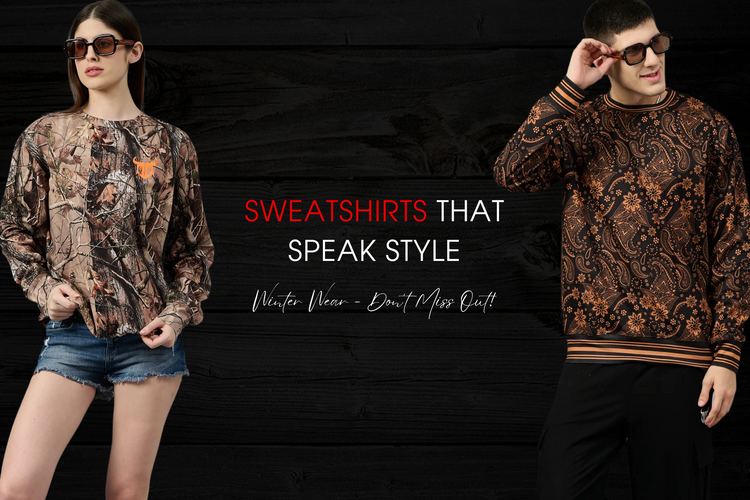 Paisley Design (in Brown) Printed Black Sweatshirt for Women