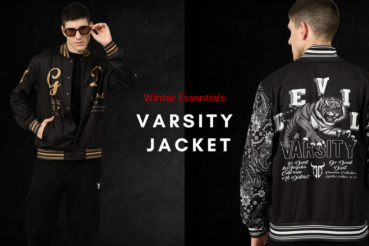 Tiger (in White) Printed Black Varsity Jacket for Men