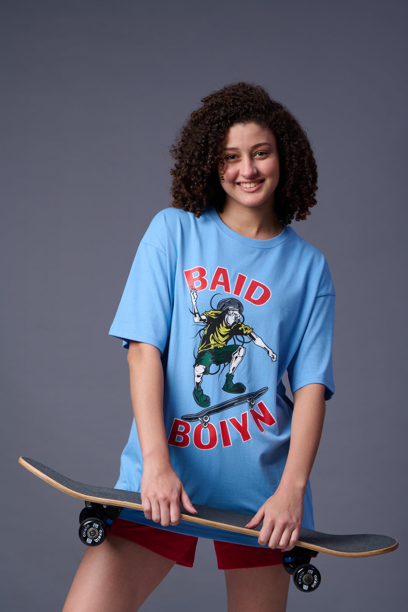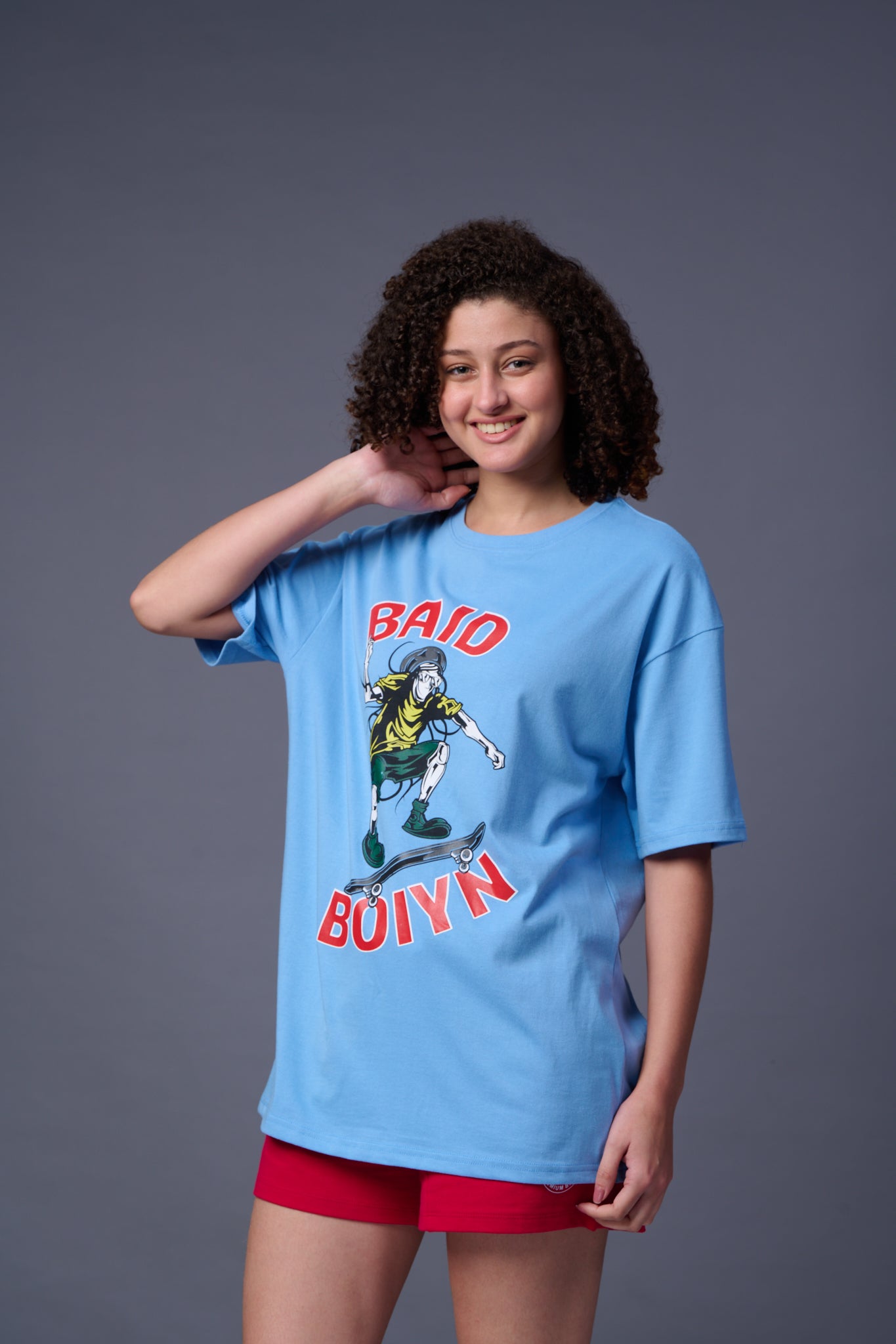 Baid Boiyn Printed Blue Oversized T-Shirt for Women