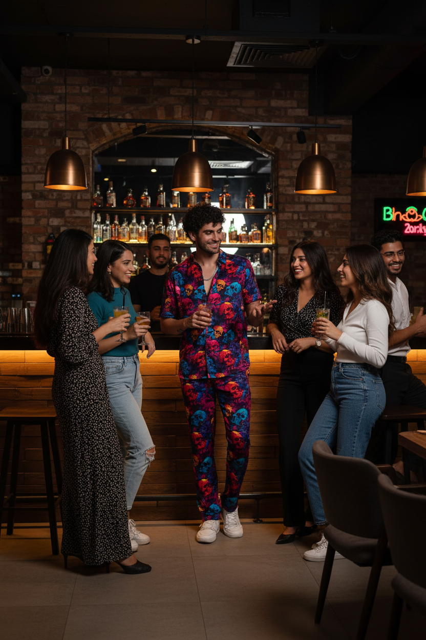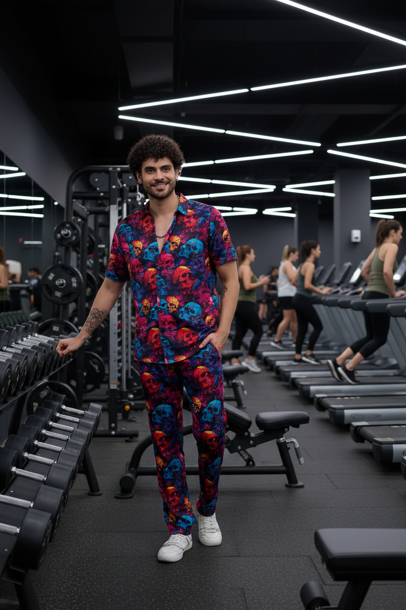 Colourful Skull Printed Shirt With Pant Co-Ord Set For Men