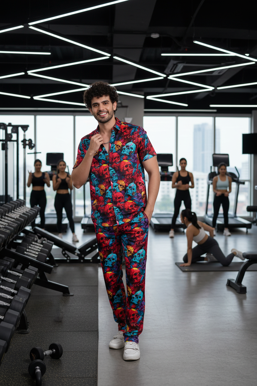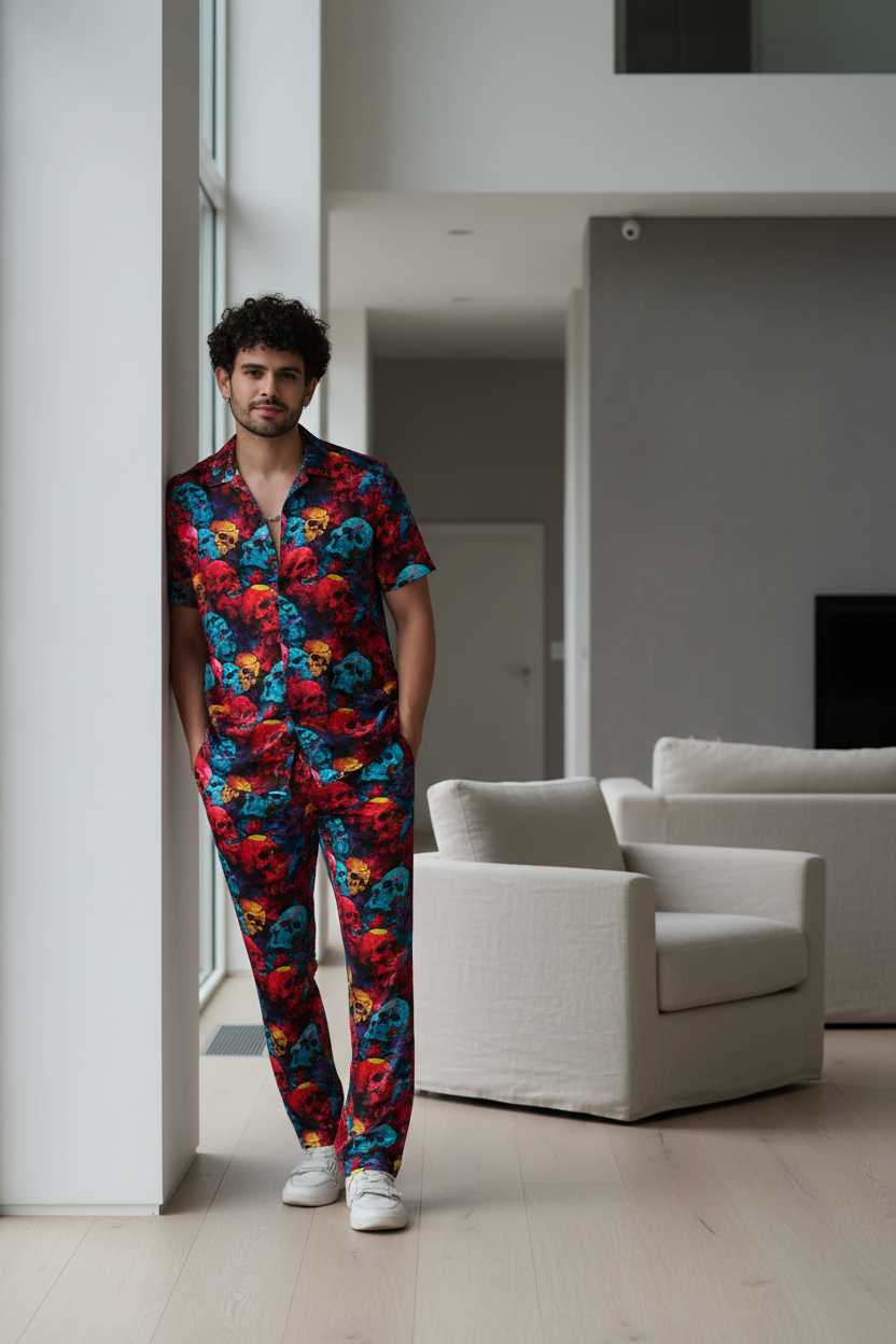 Colourful Skull Printed Shirts With Pant Co-Ord Set For Men