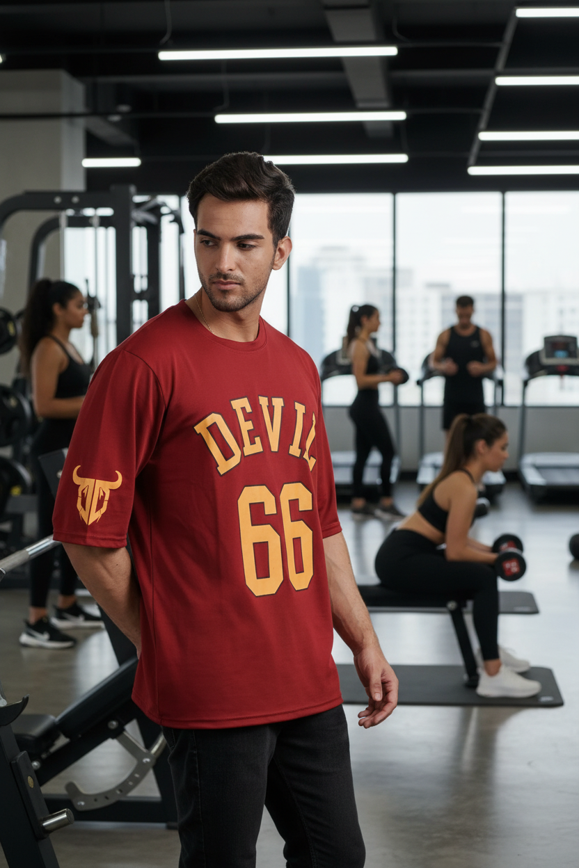 Devil Signature Jersy 66 Printed Burgundy & Yellow for Men