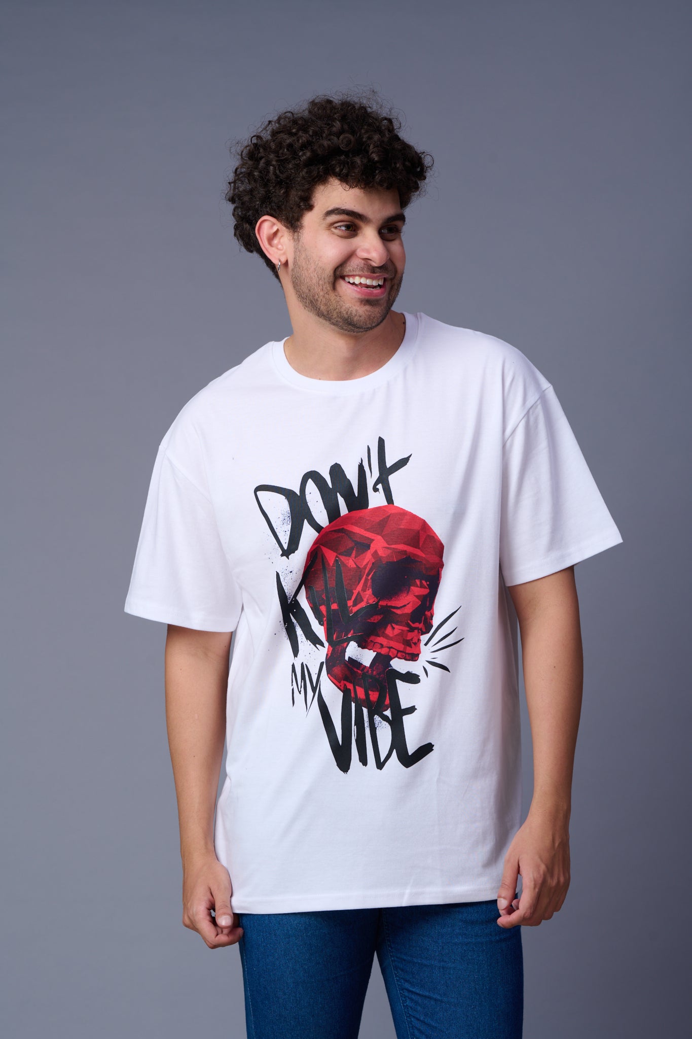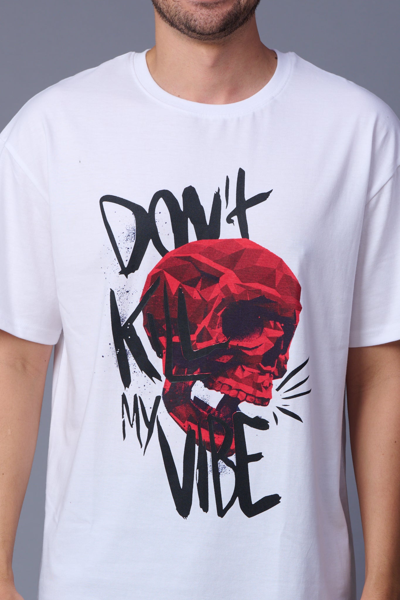 Don't kill my Vibe (with Skull) Printed White Oversized T-Shirt for Men