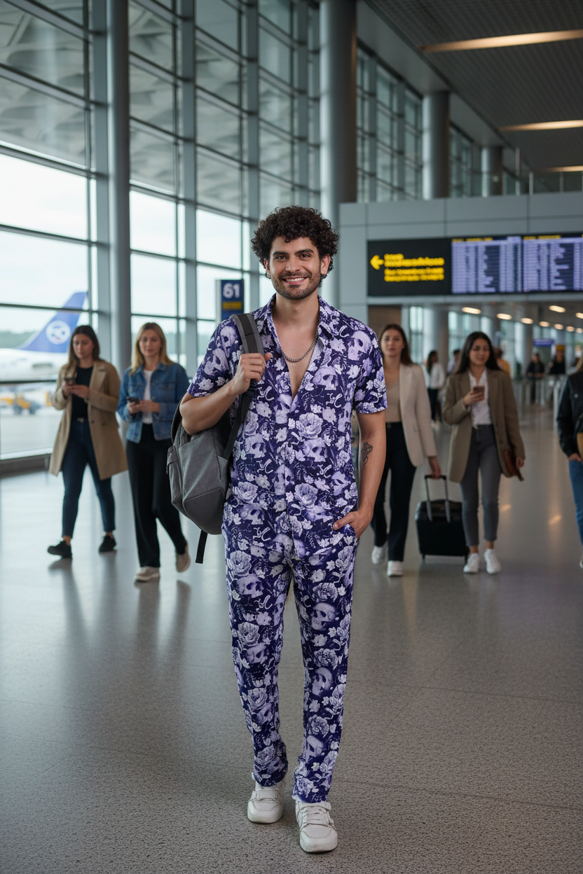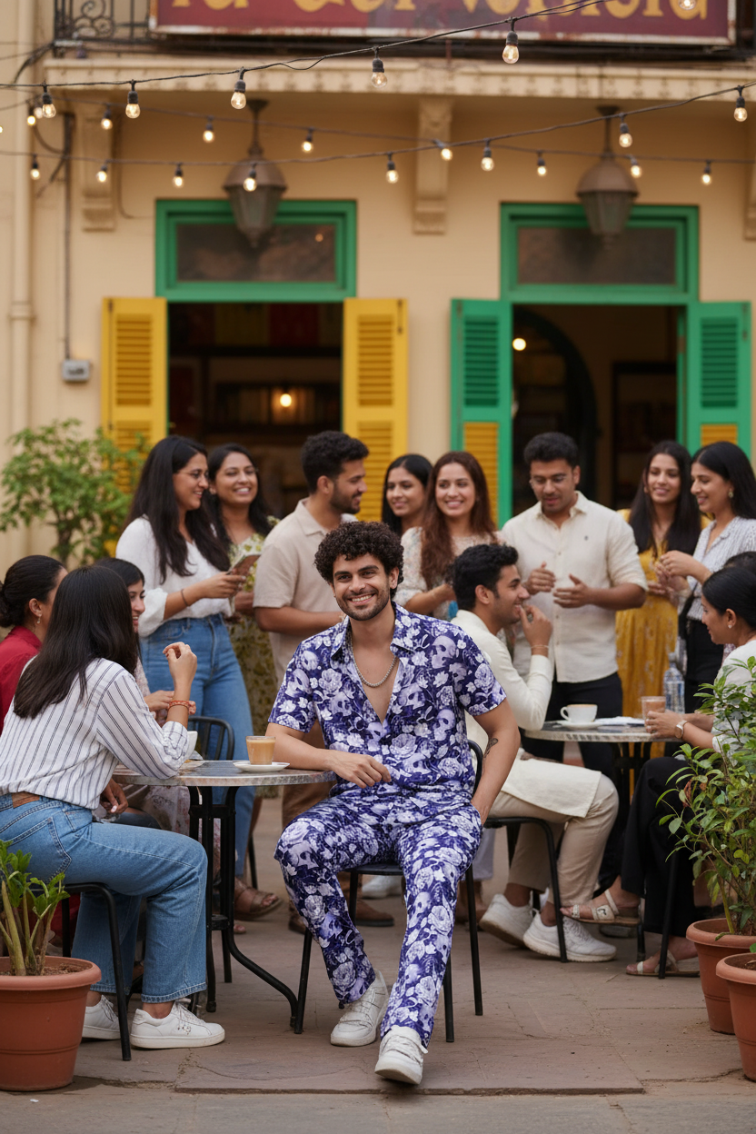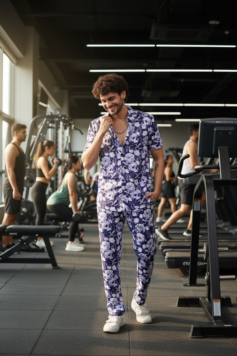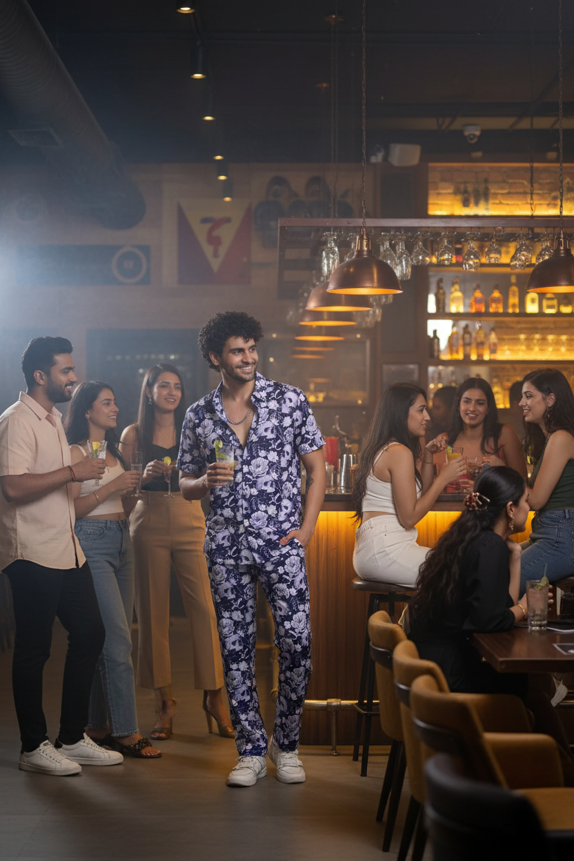 Flower Printed White and Royal Blue Shirt With Pant Co-Ord Set For Men