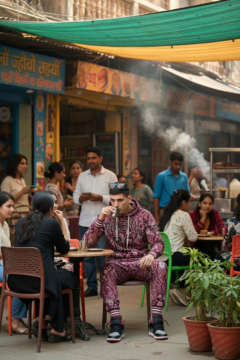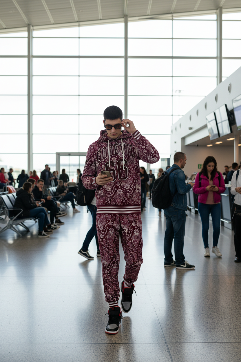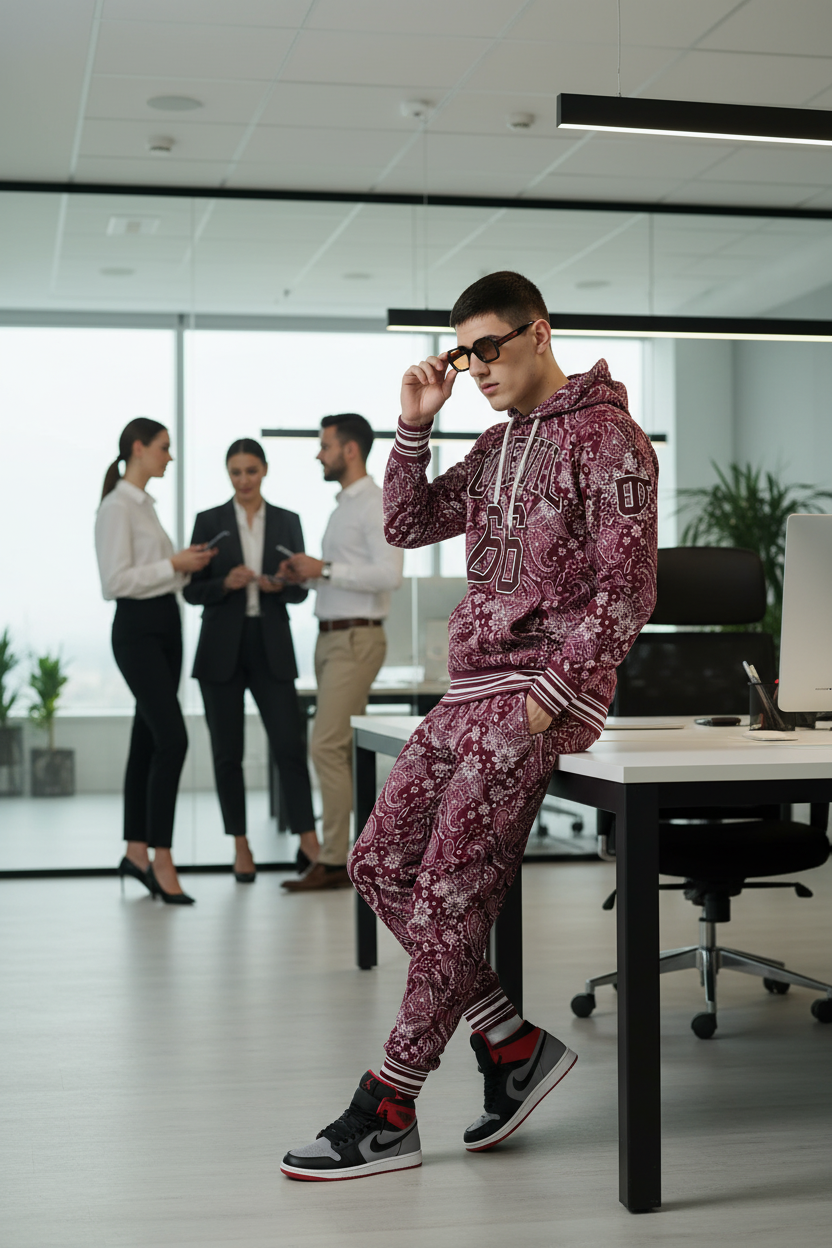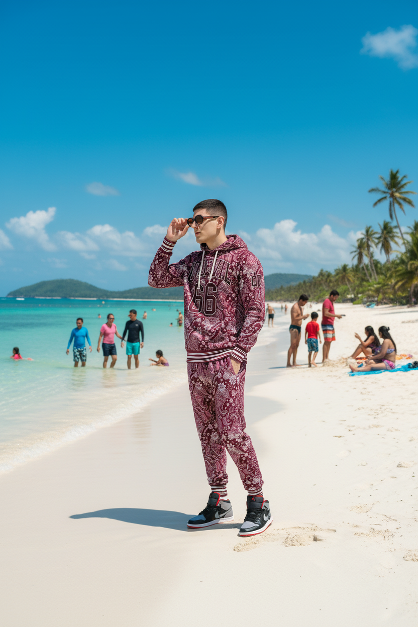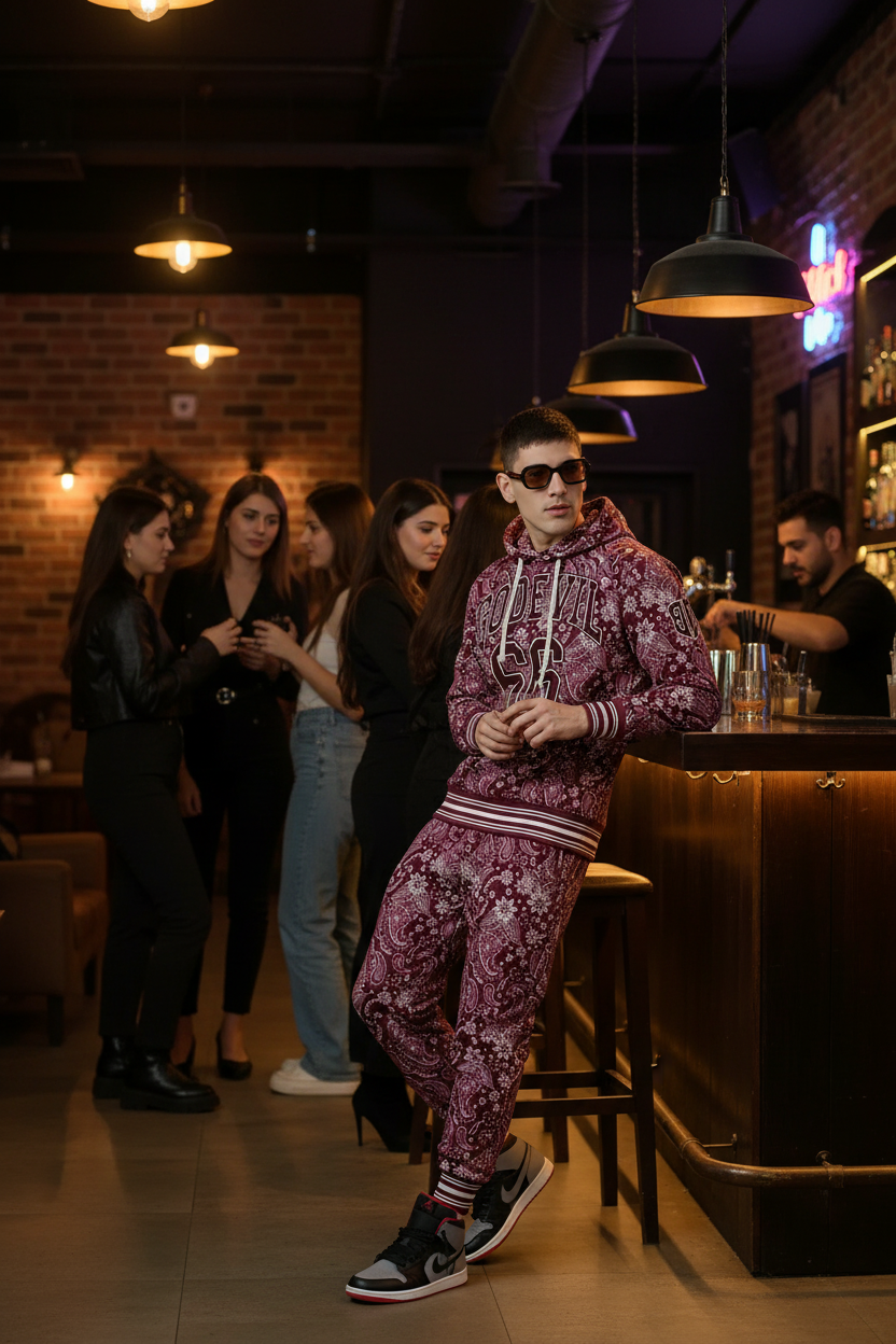 Go Devil 66 & Paisley Design Printed Red Hooded Cord Set for Men
