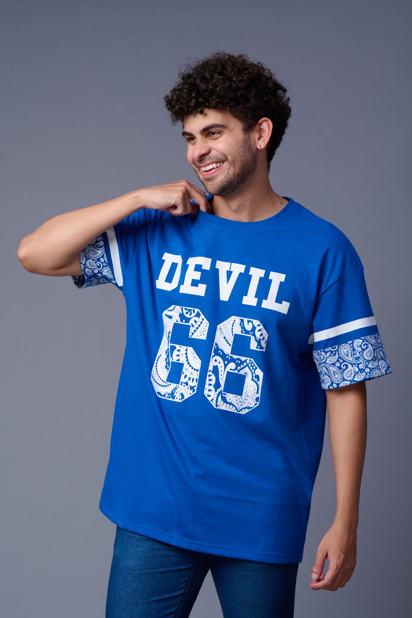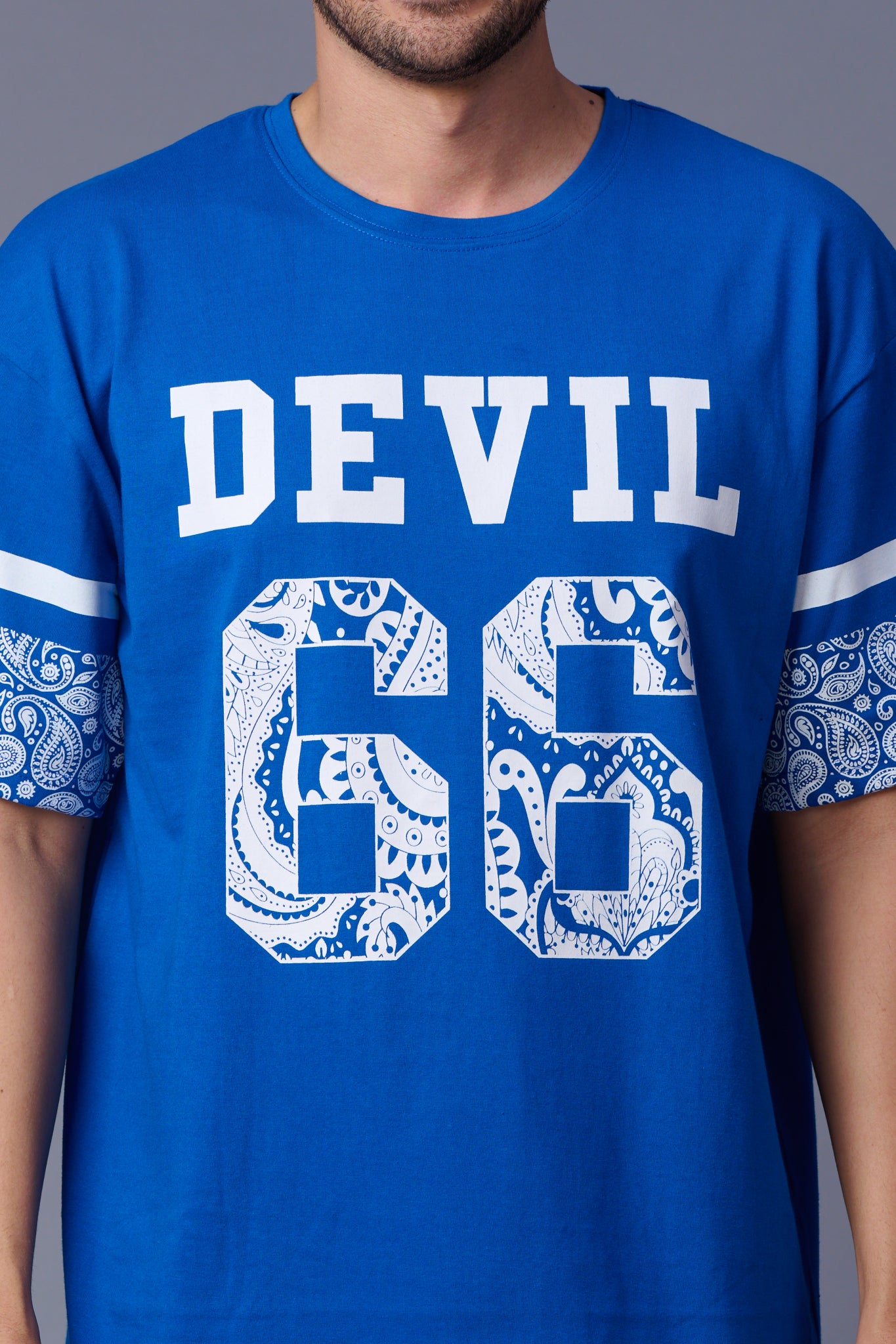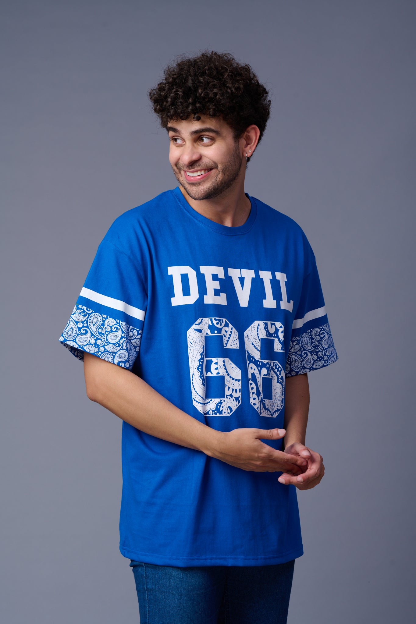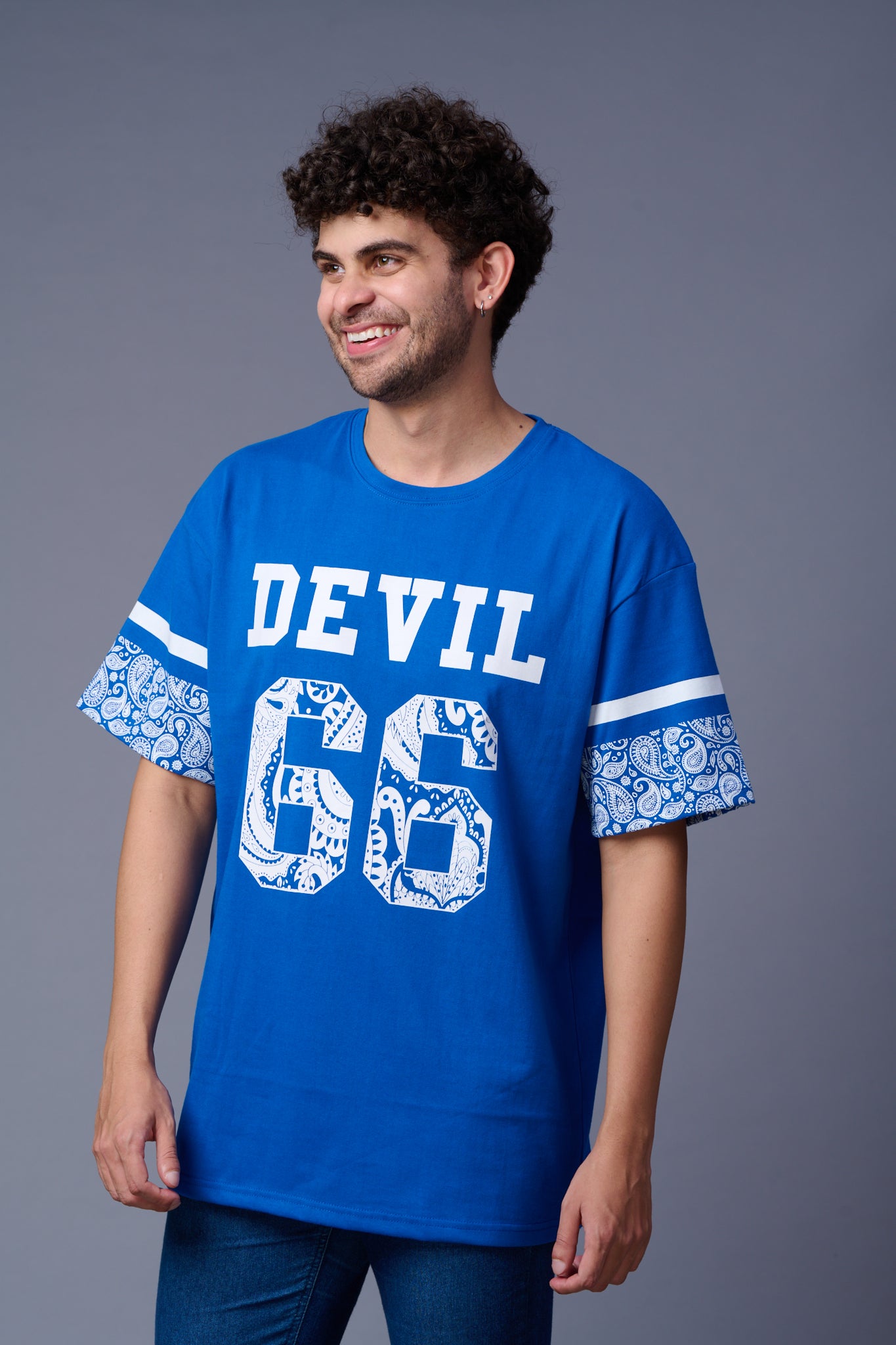 Go Devil 66 (In White Paisley) Printed Blue Oversized T-Shirt for Men