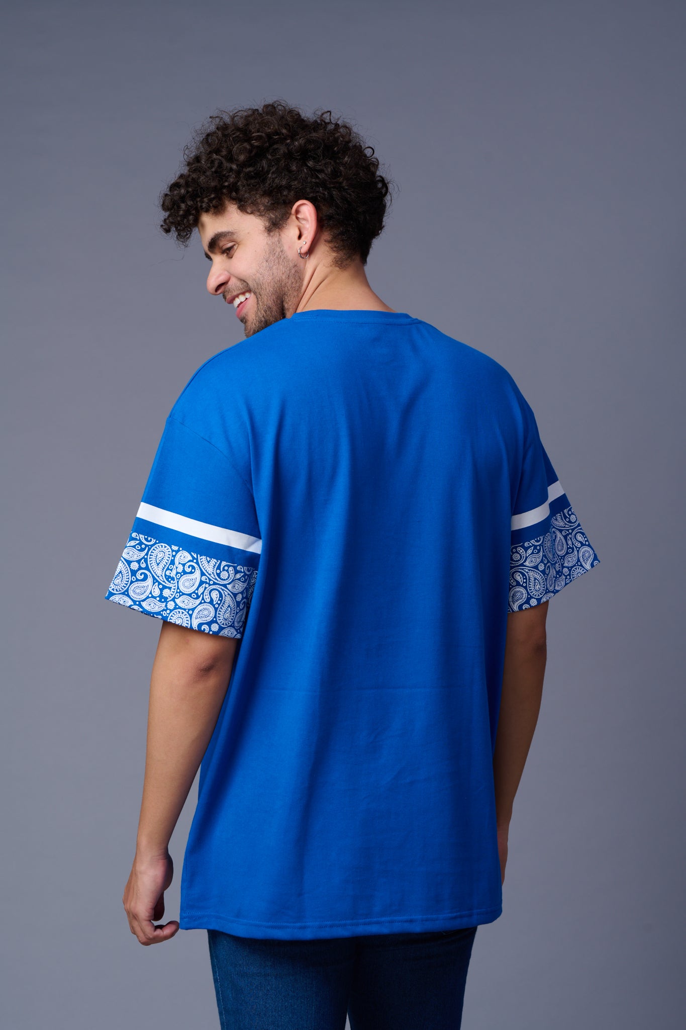Go Devil 66 (In White  Paisley) Printed Blue Oversized T-Shirt for Men