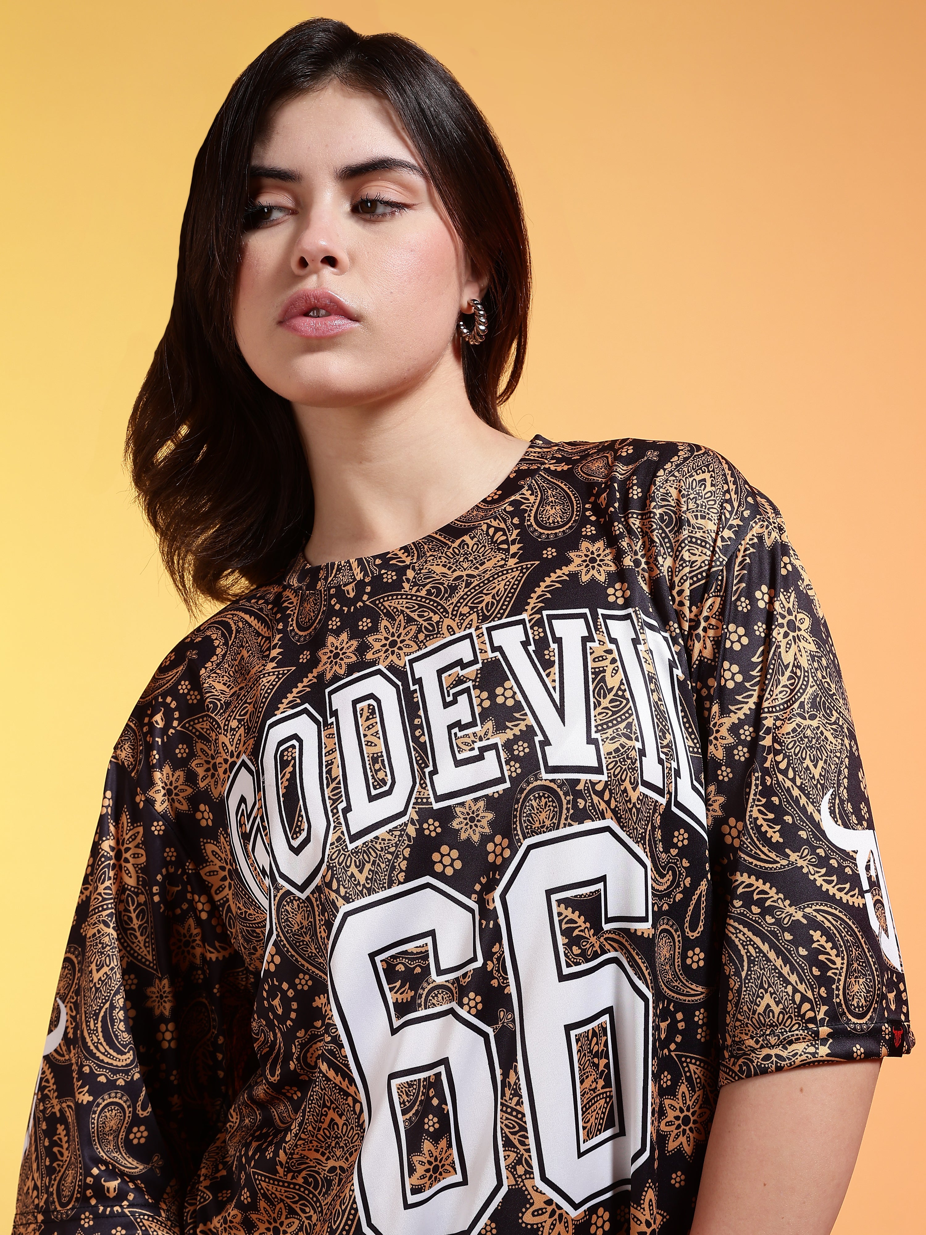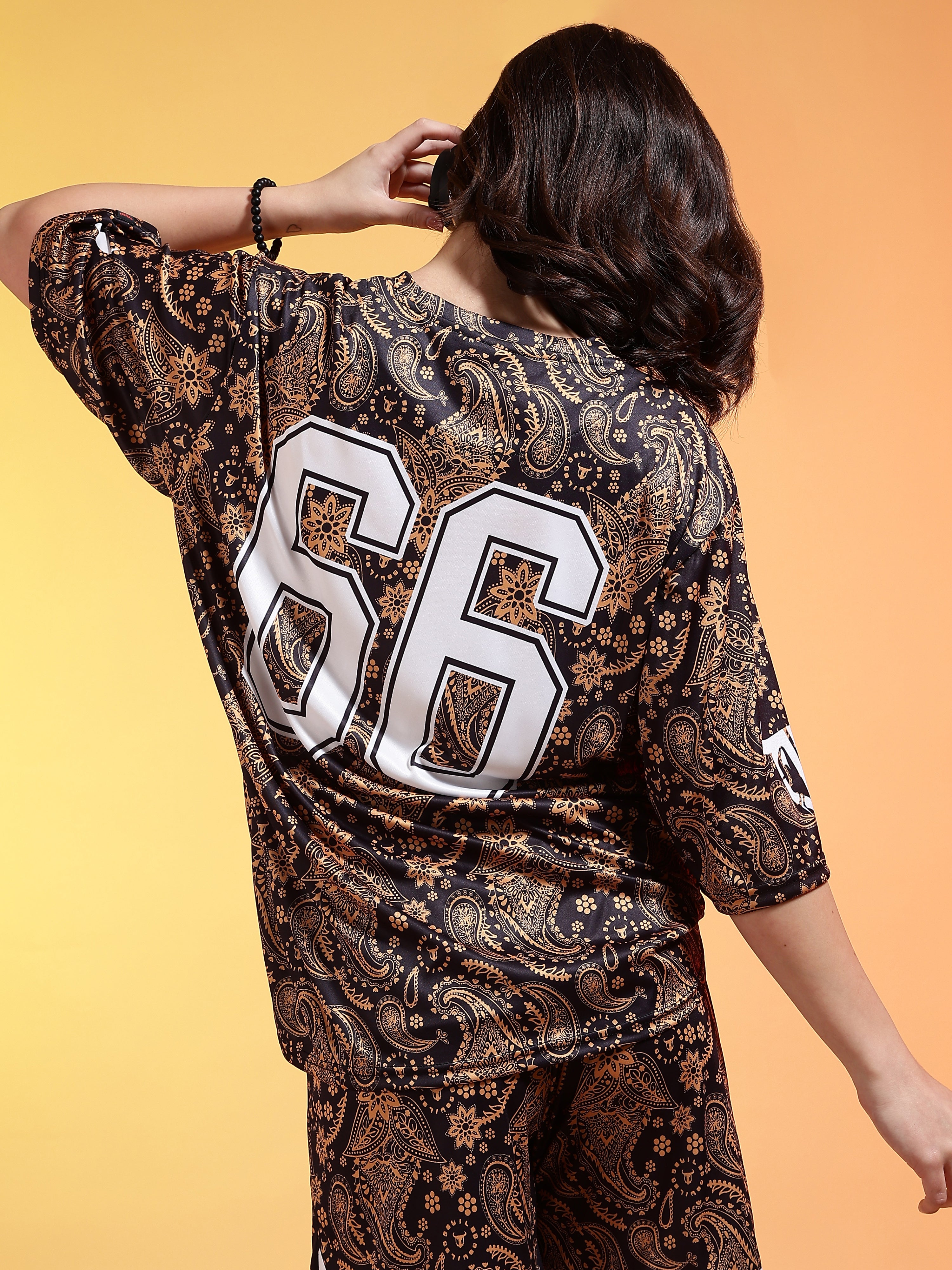 Go Devil 66 Printed Beige & Black Paisley Co-ord Set For Women's
