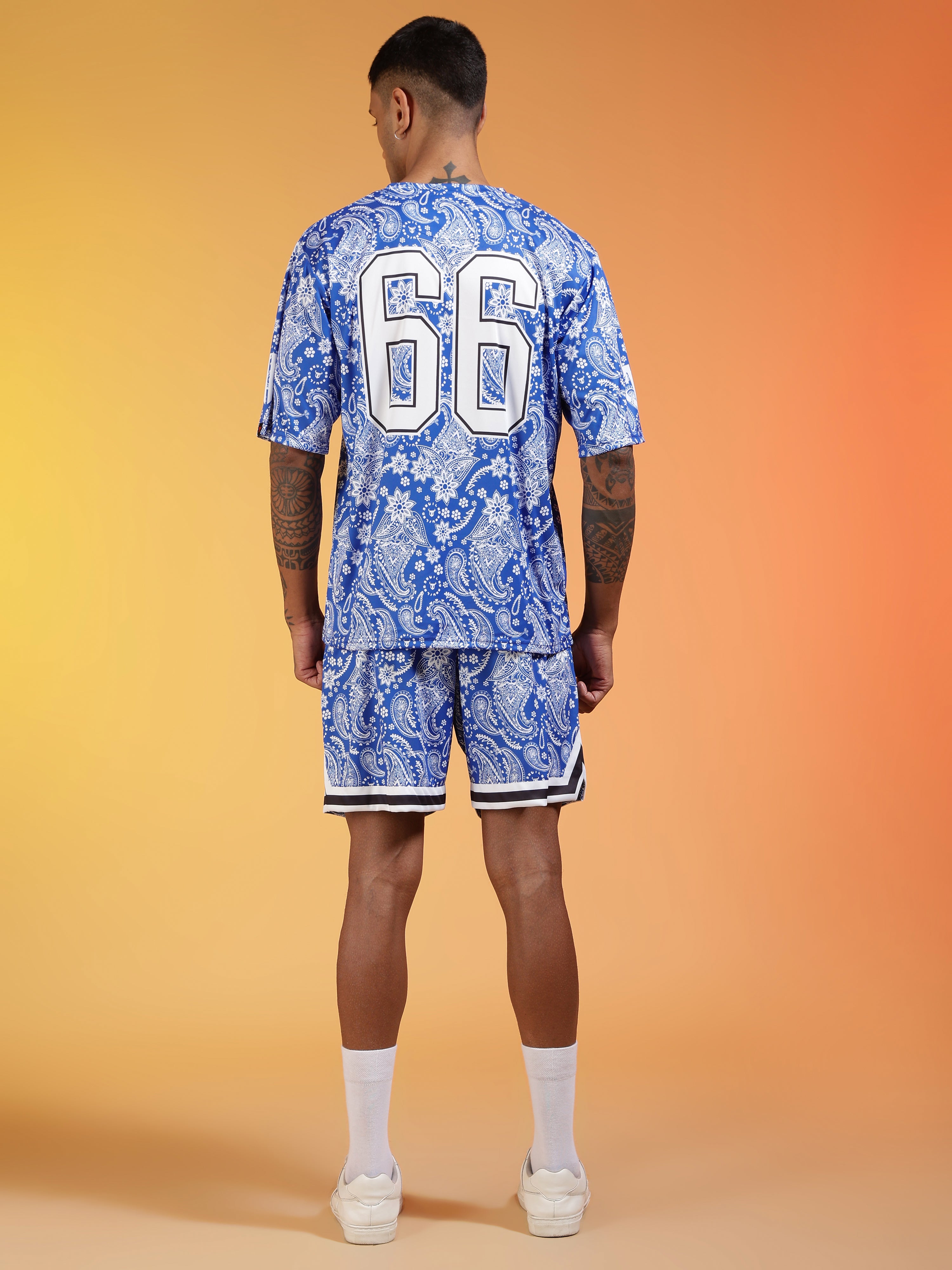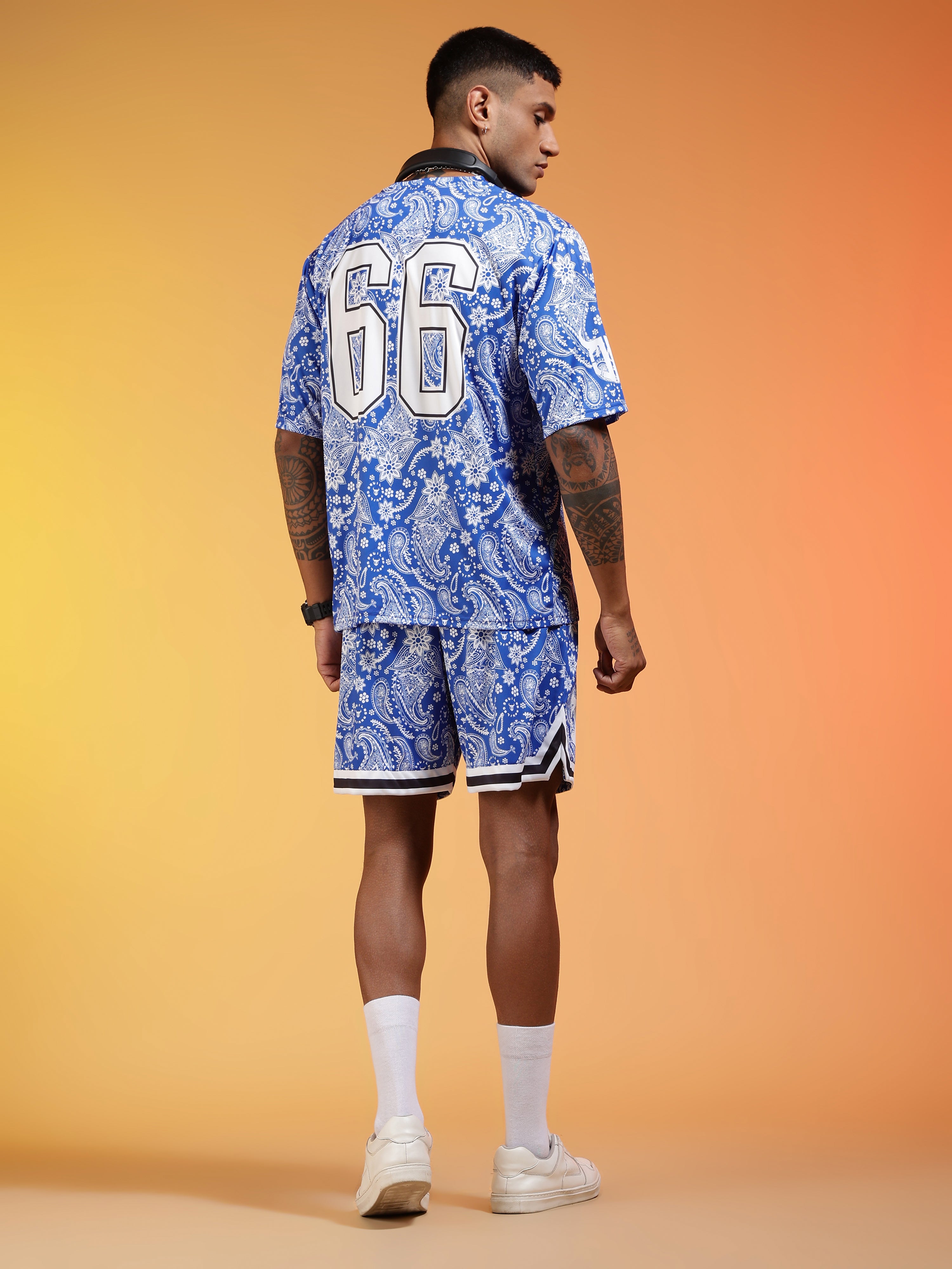 Go Devil 66 Printed Paisley White & Blue Co-ord Set for Men