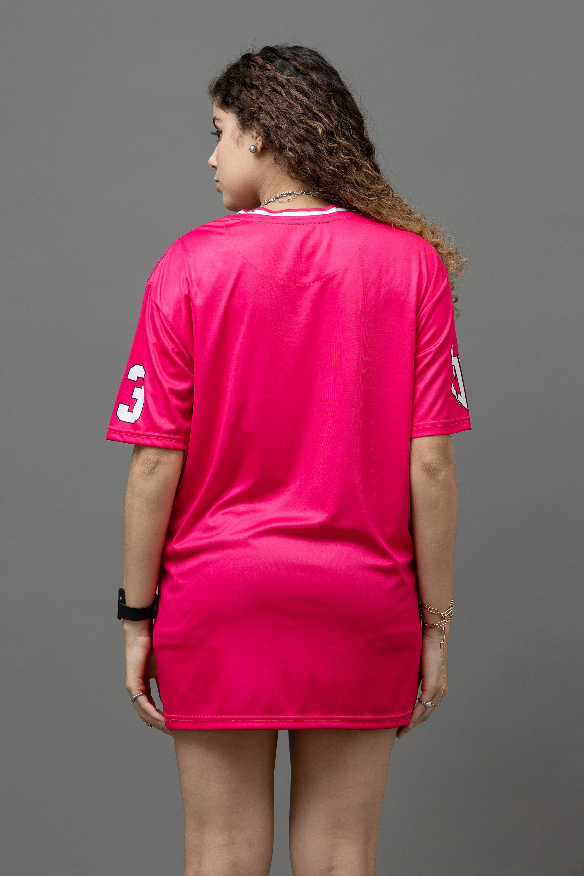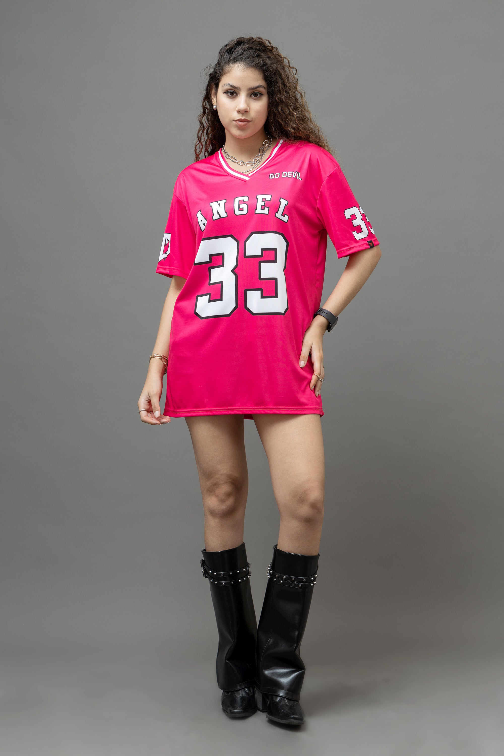 Go Devil ANGEL 33 (In White) Printed Pink Oversized Jersey T-shirt For Women's