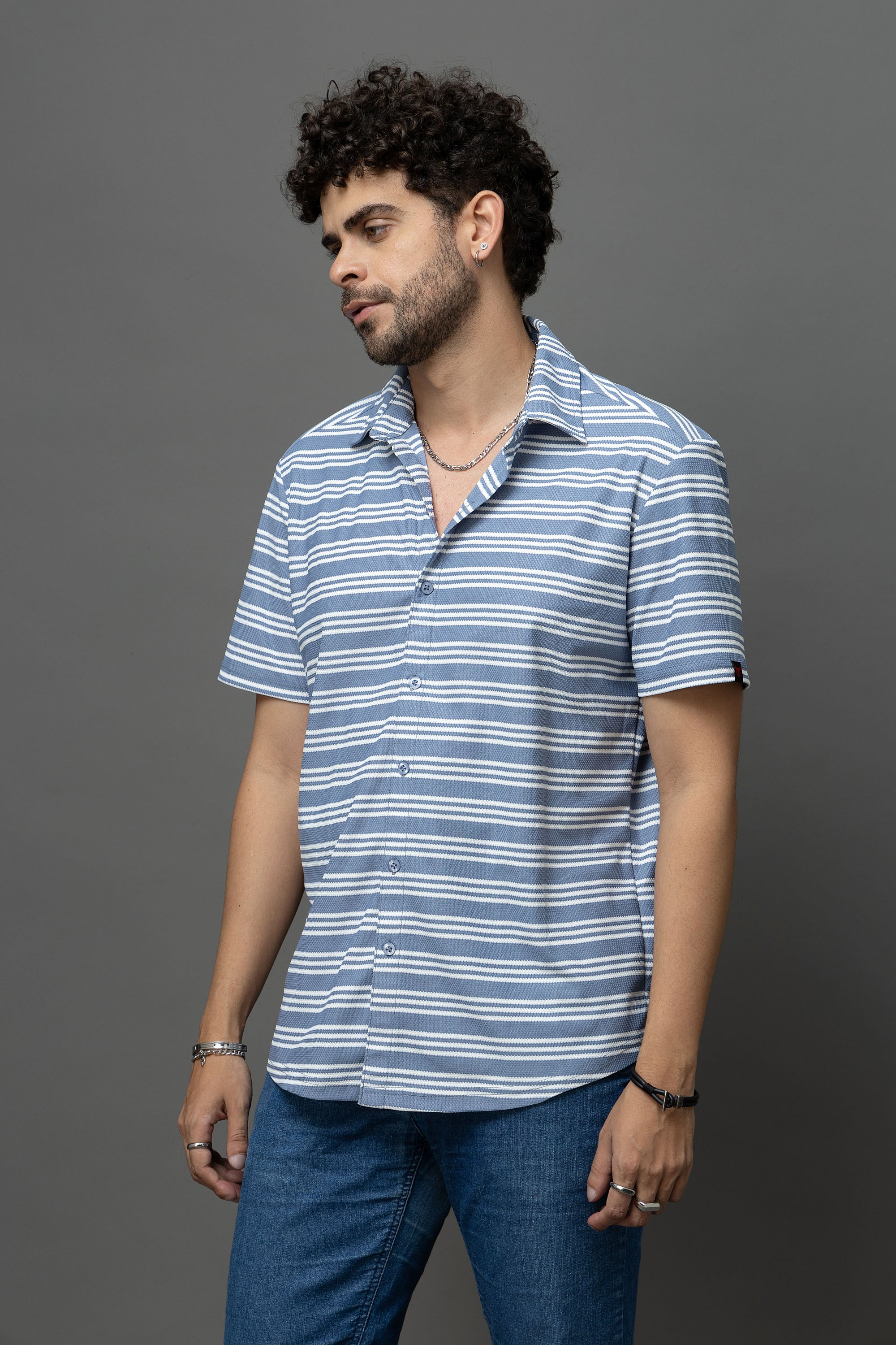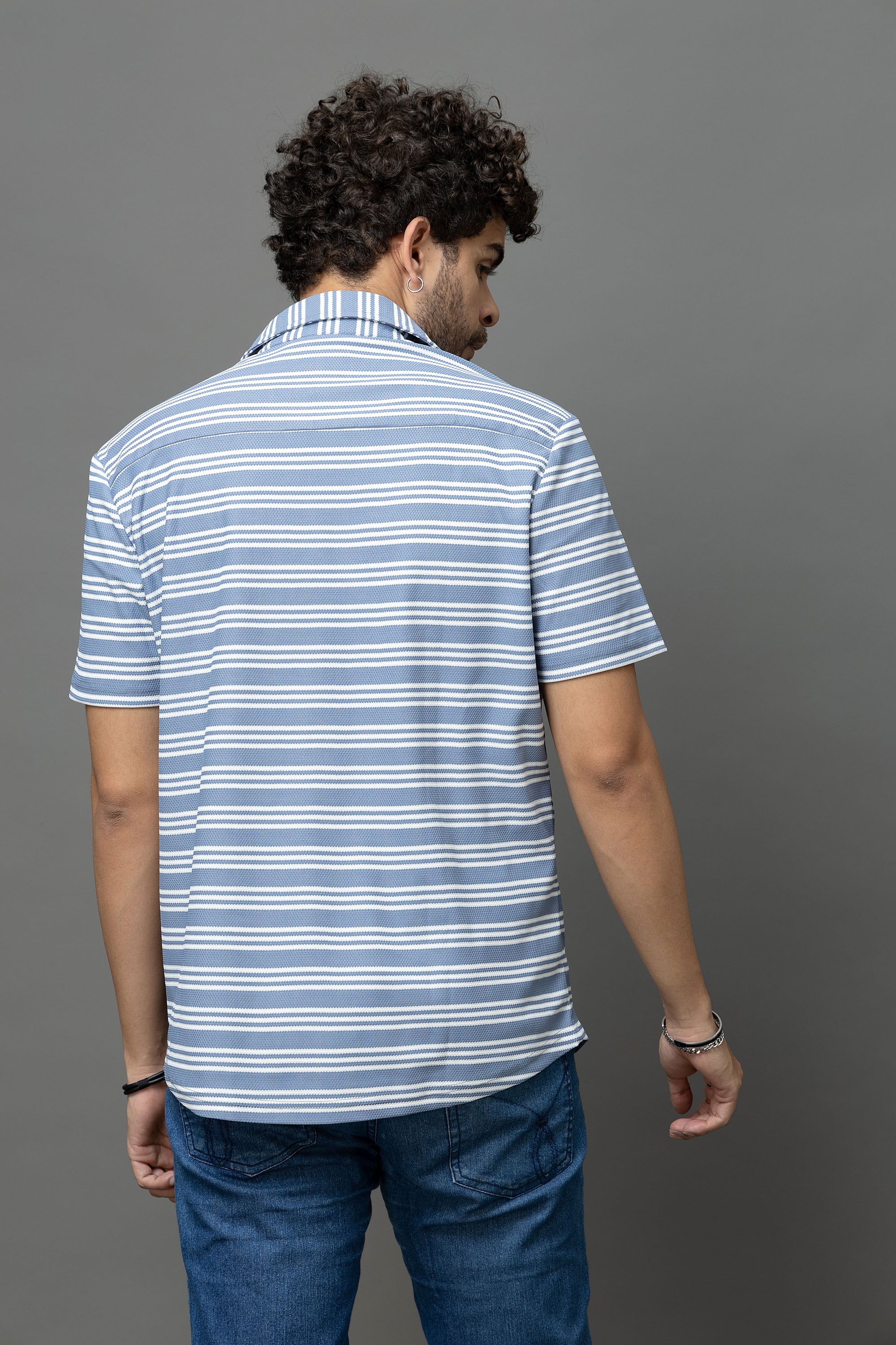 Go Devil Blue & White Striped Shirt for Men