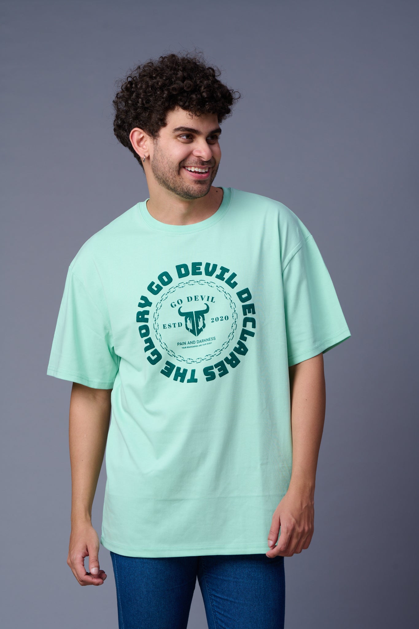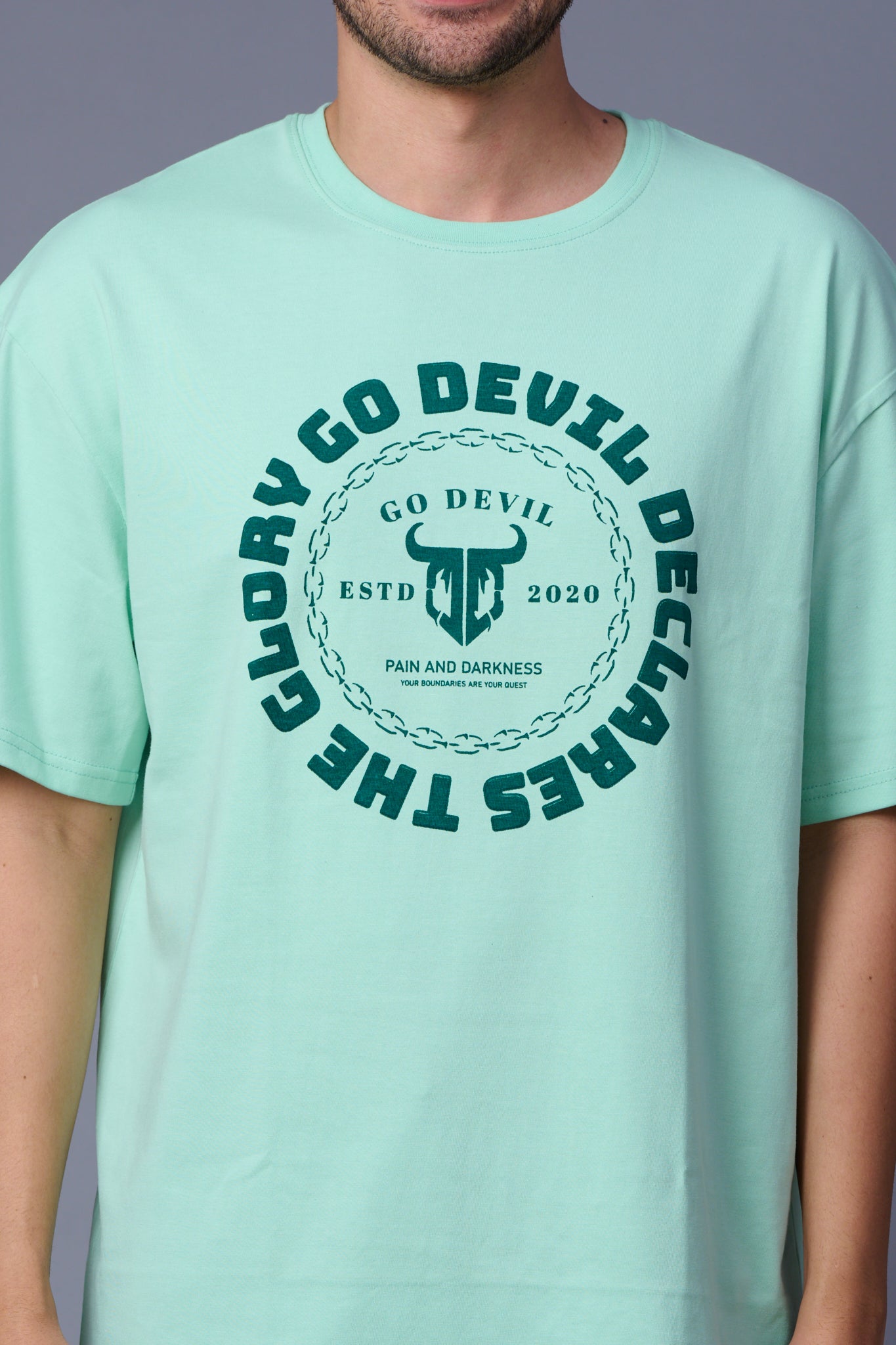 Go Devil Stamp Emblem Logo Printed Oversized T-Shirt for Men