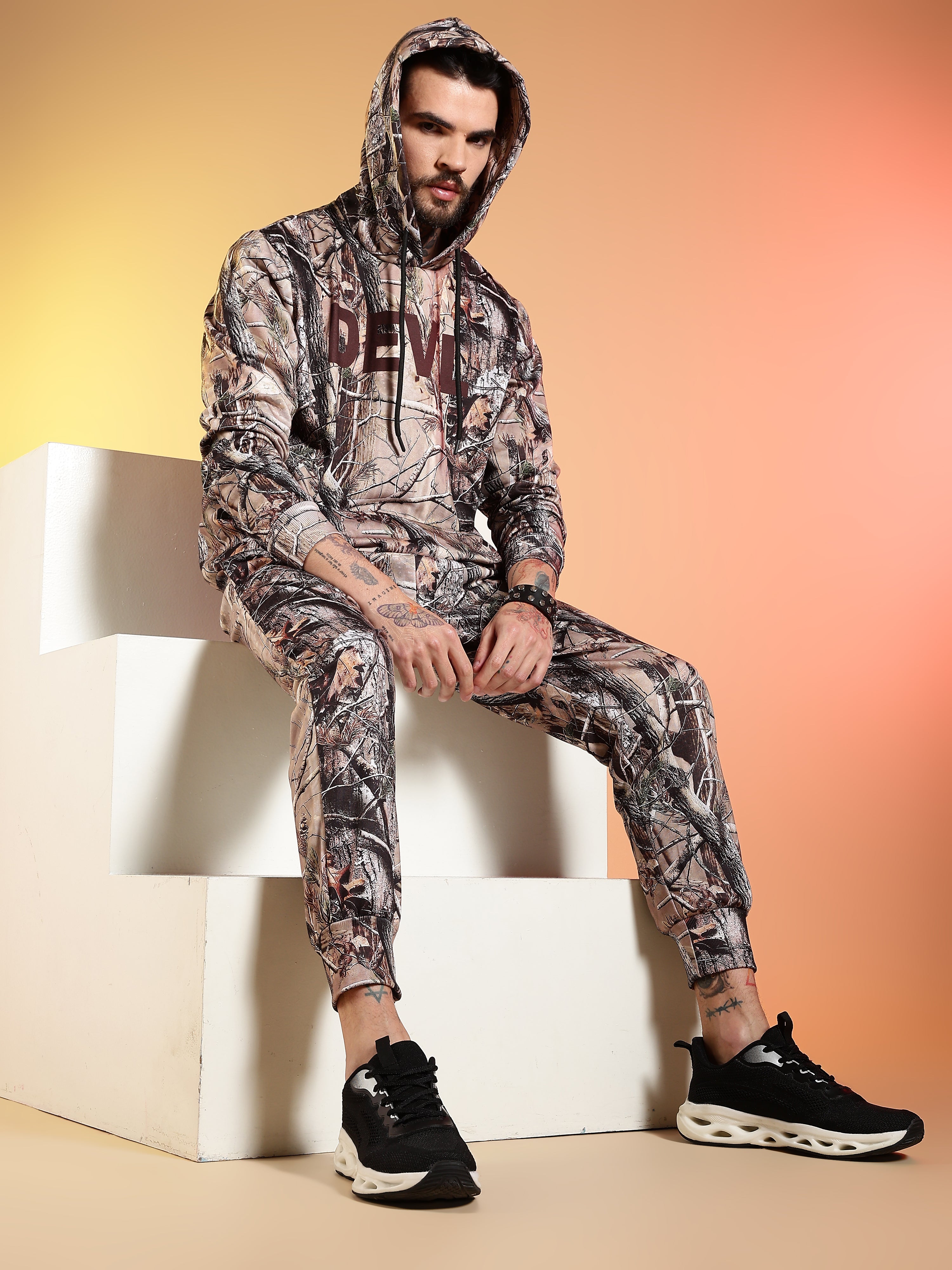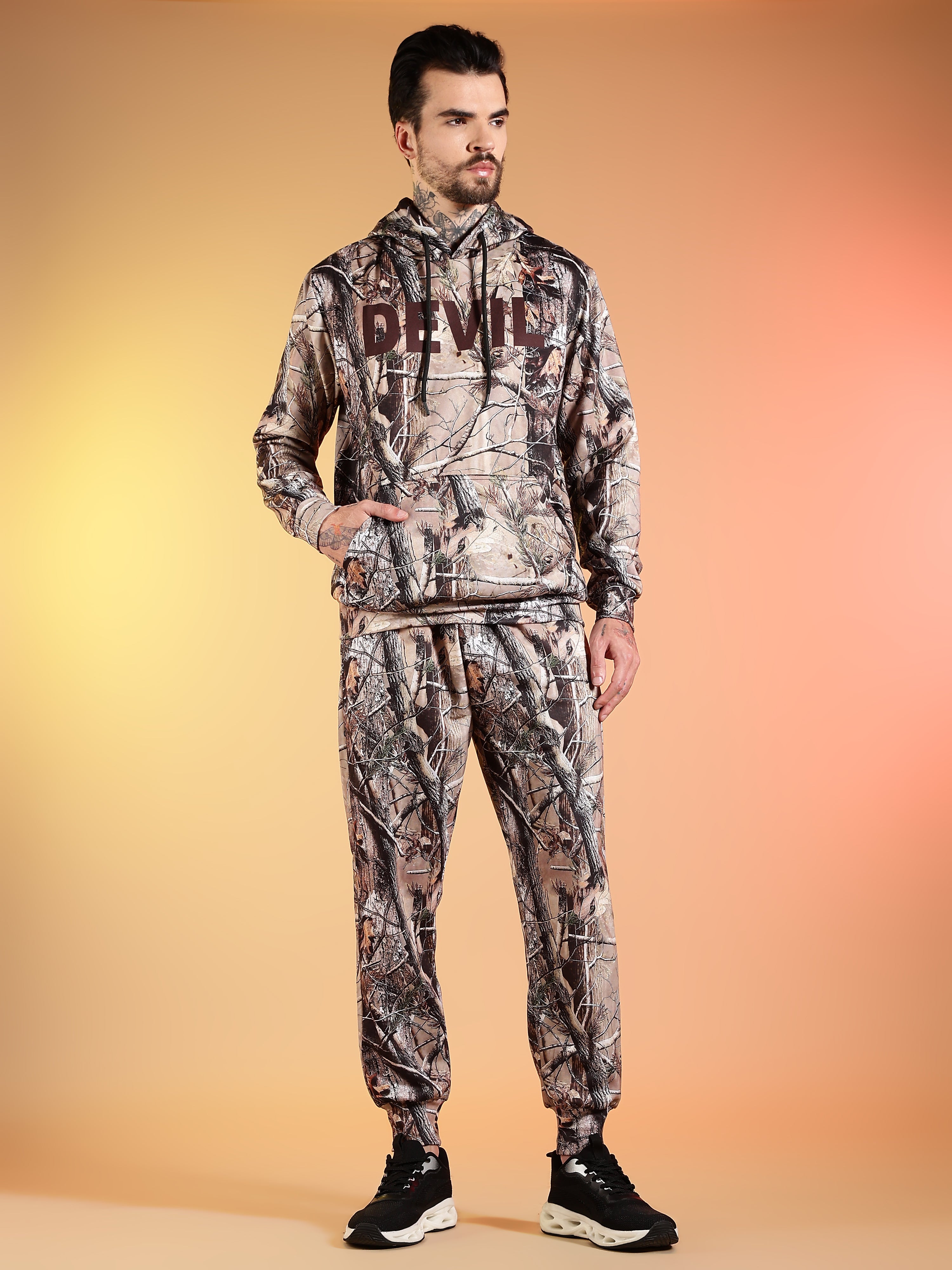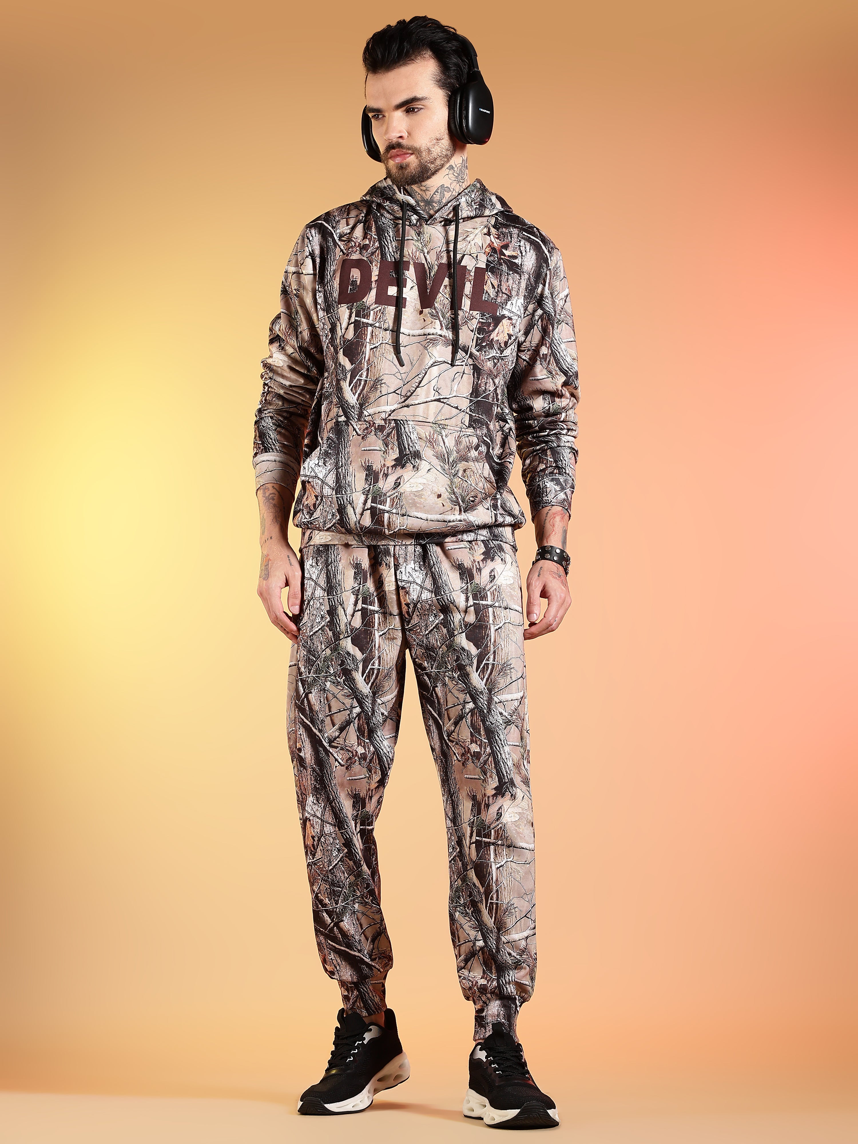 Go Devil Forest Print Hooded Co-Ord Set for Men