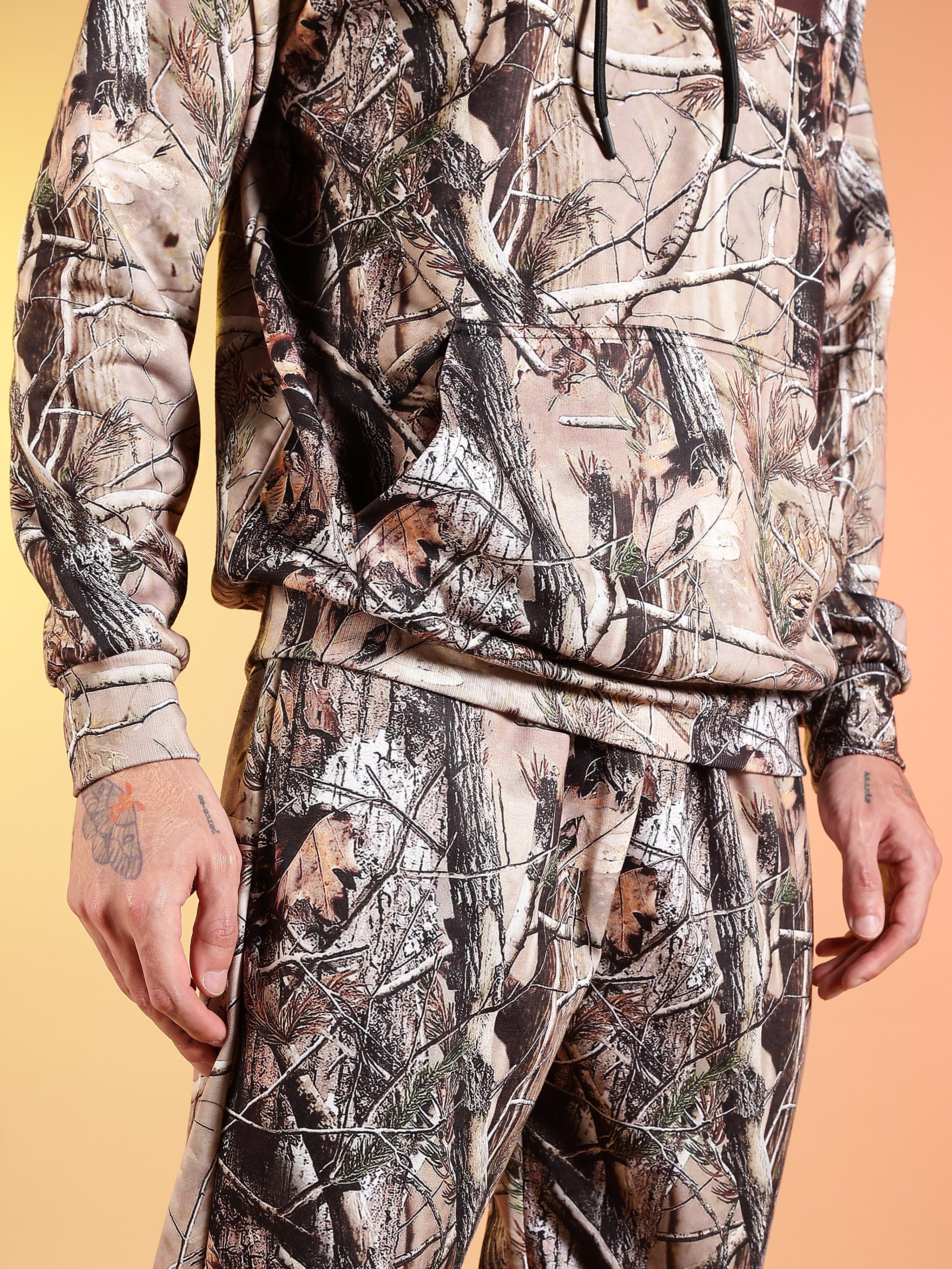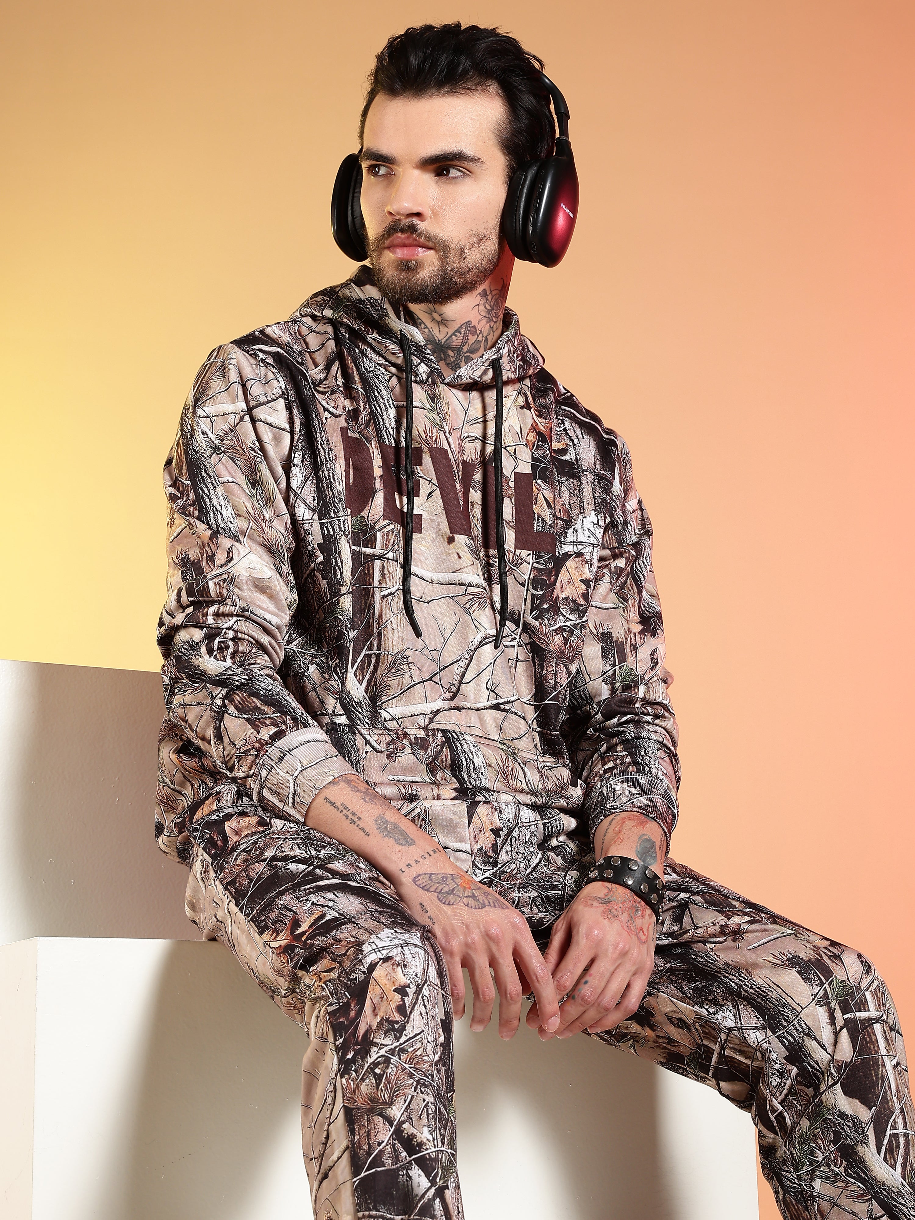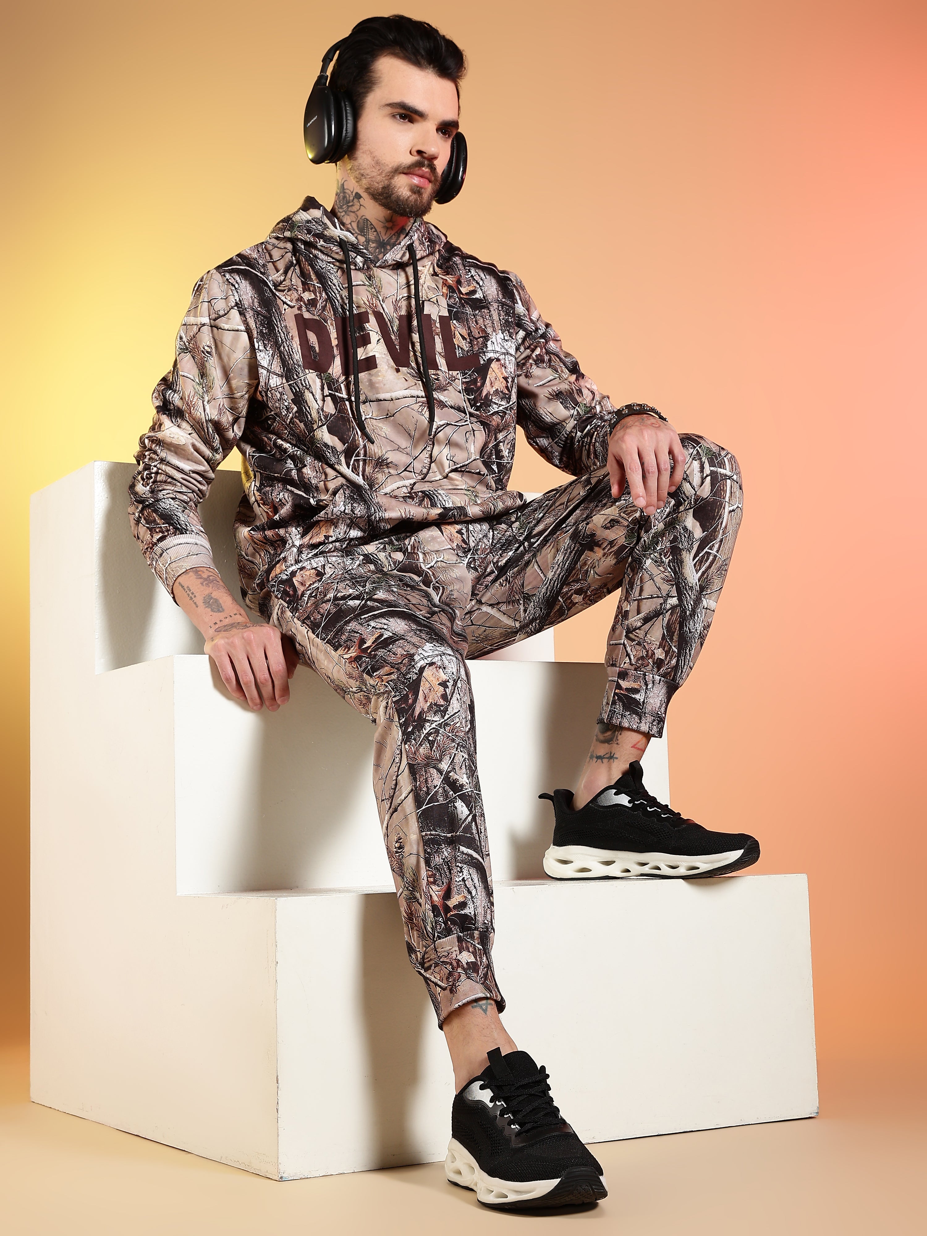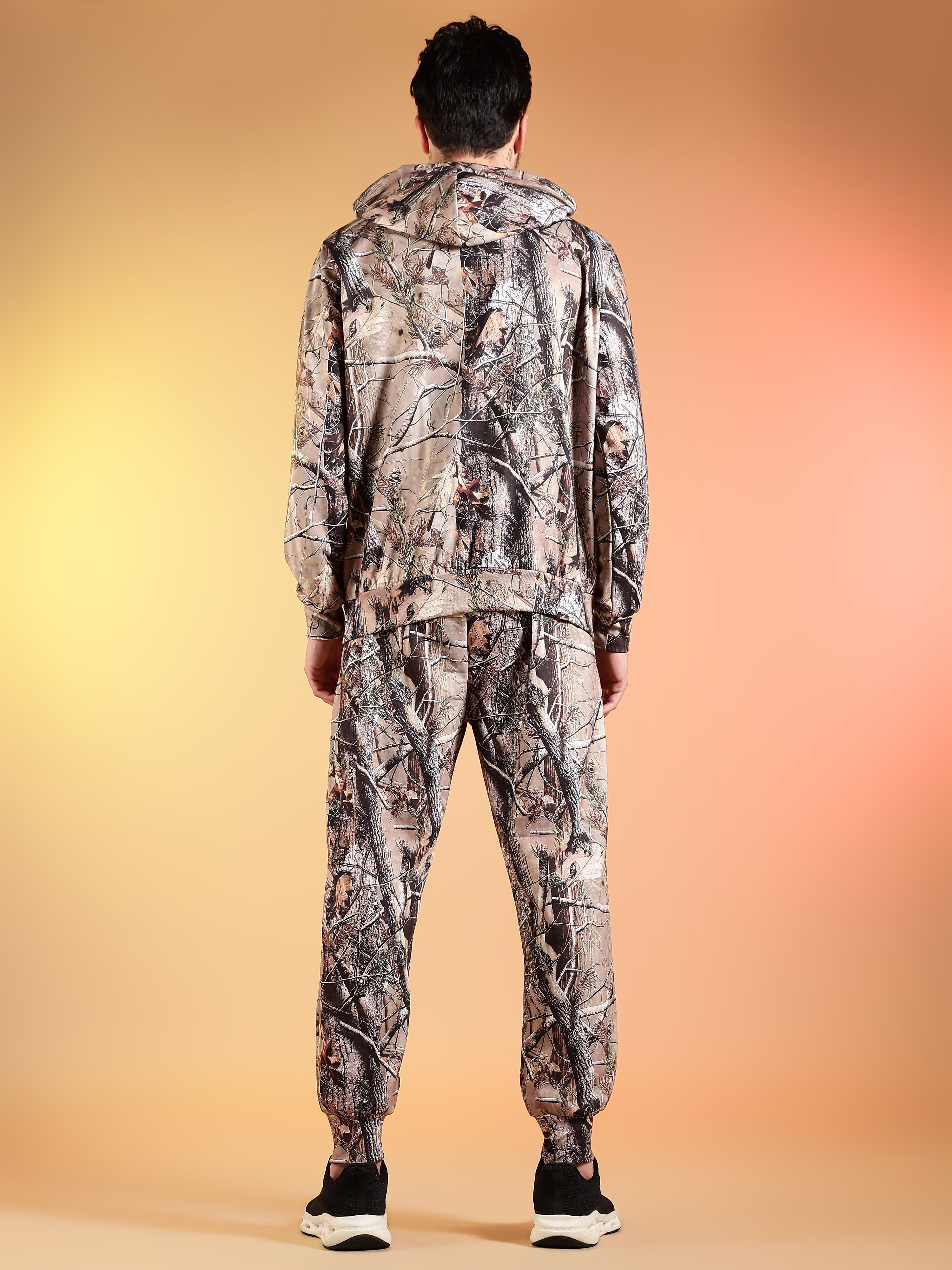 Go Devil Forest Print Hooded Co-Ord Set for Men