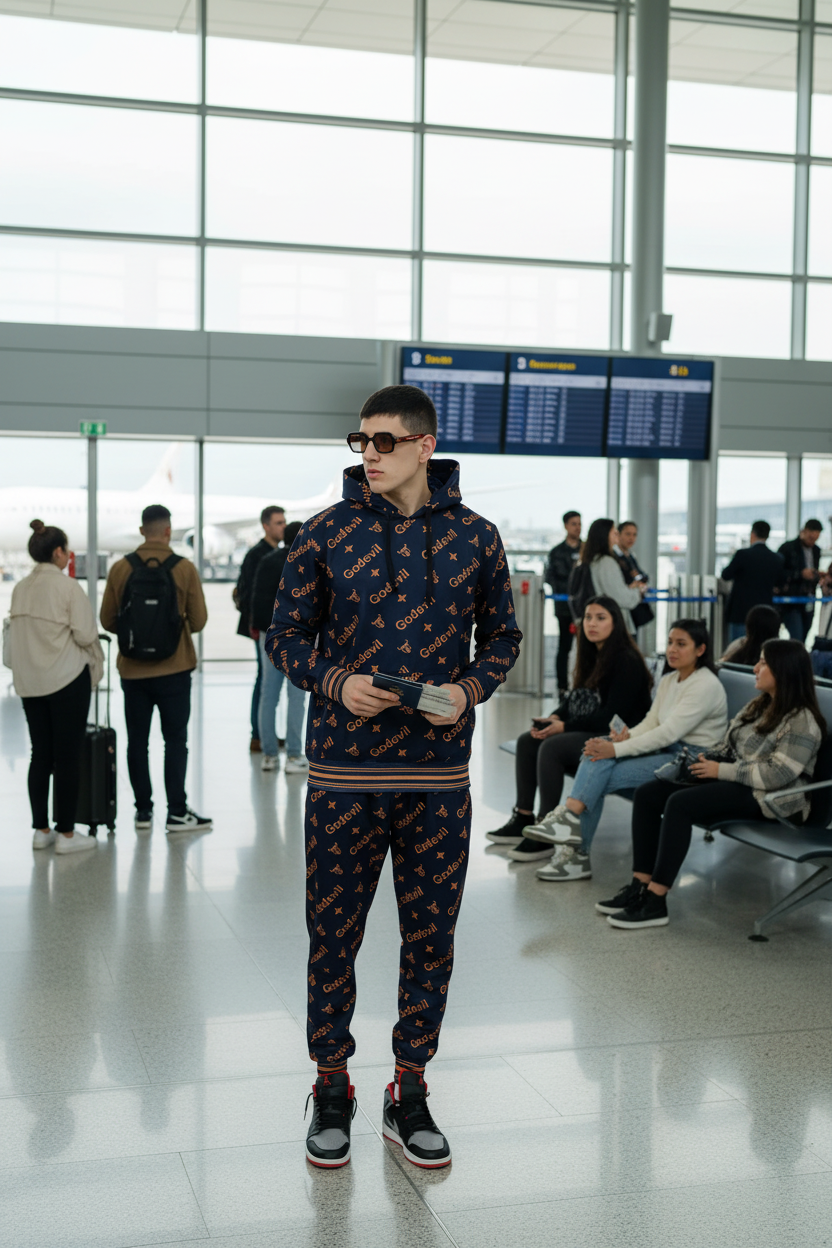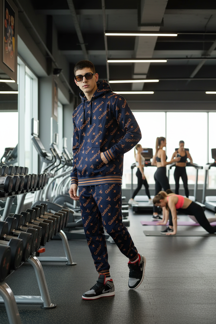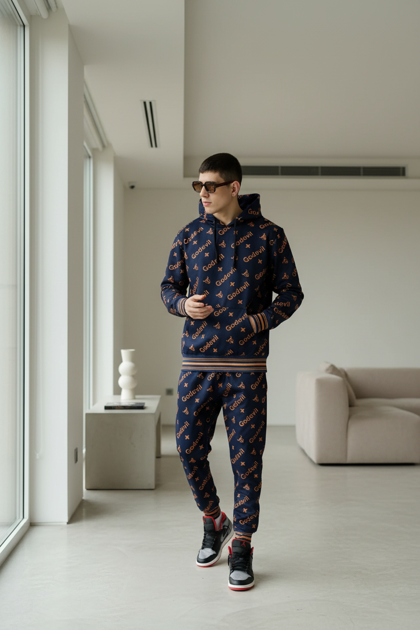 Go Devil All Over Print Orange Dark Blue Cord Set for Men