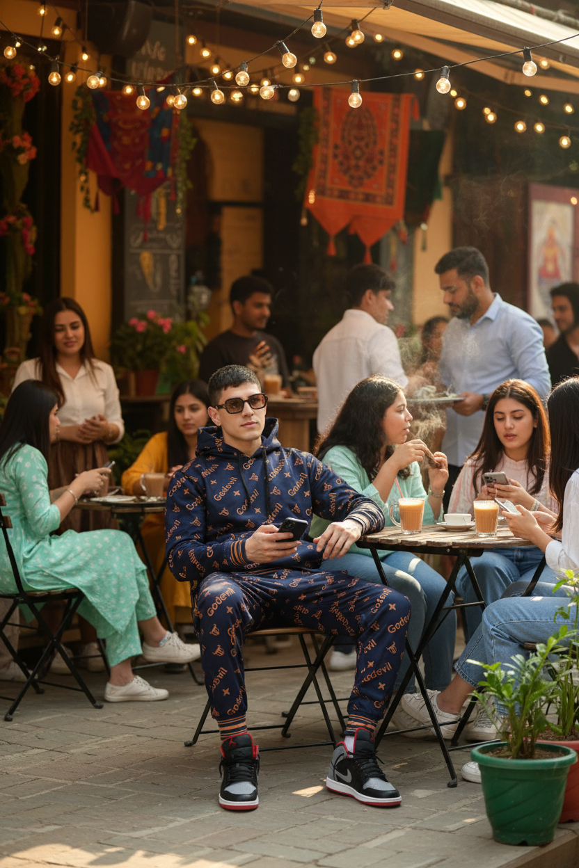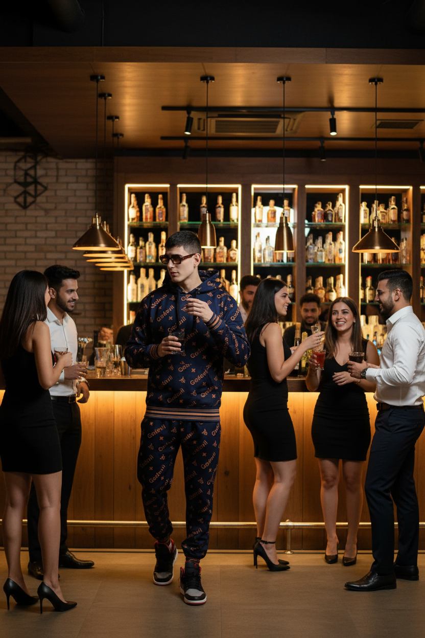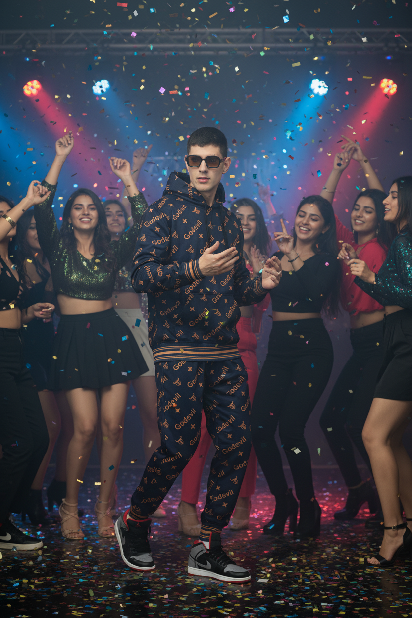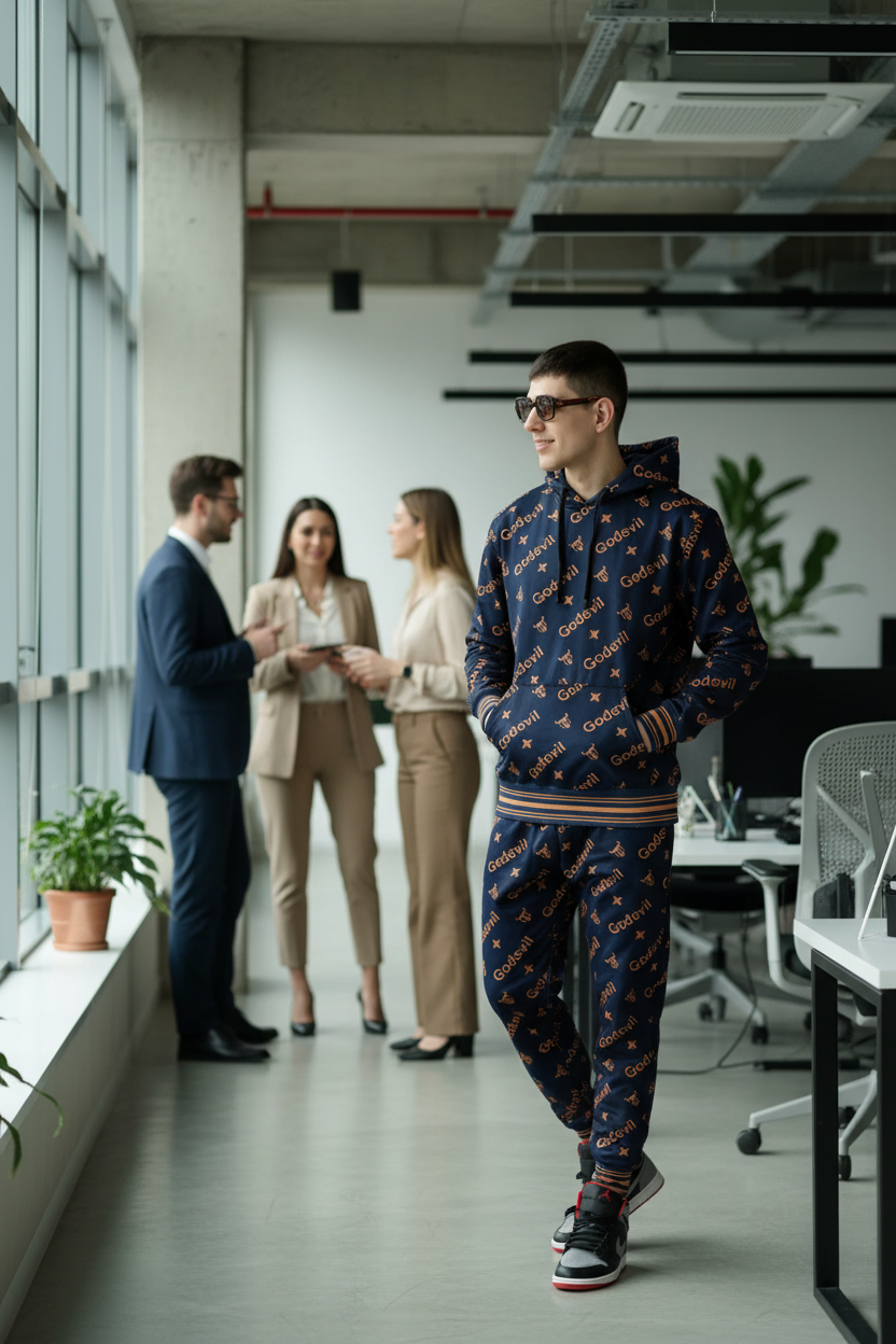 Go Devil All Over Print Orange Dark Blue Cord Set for Men