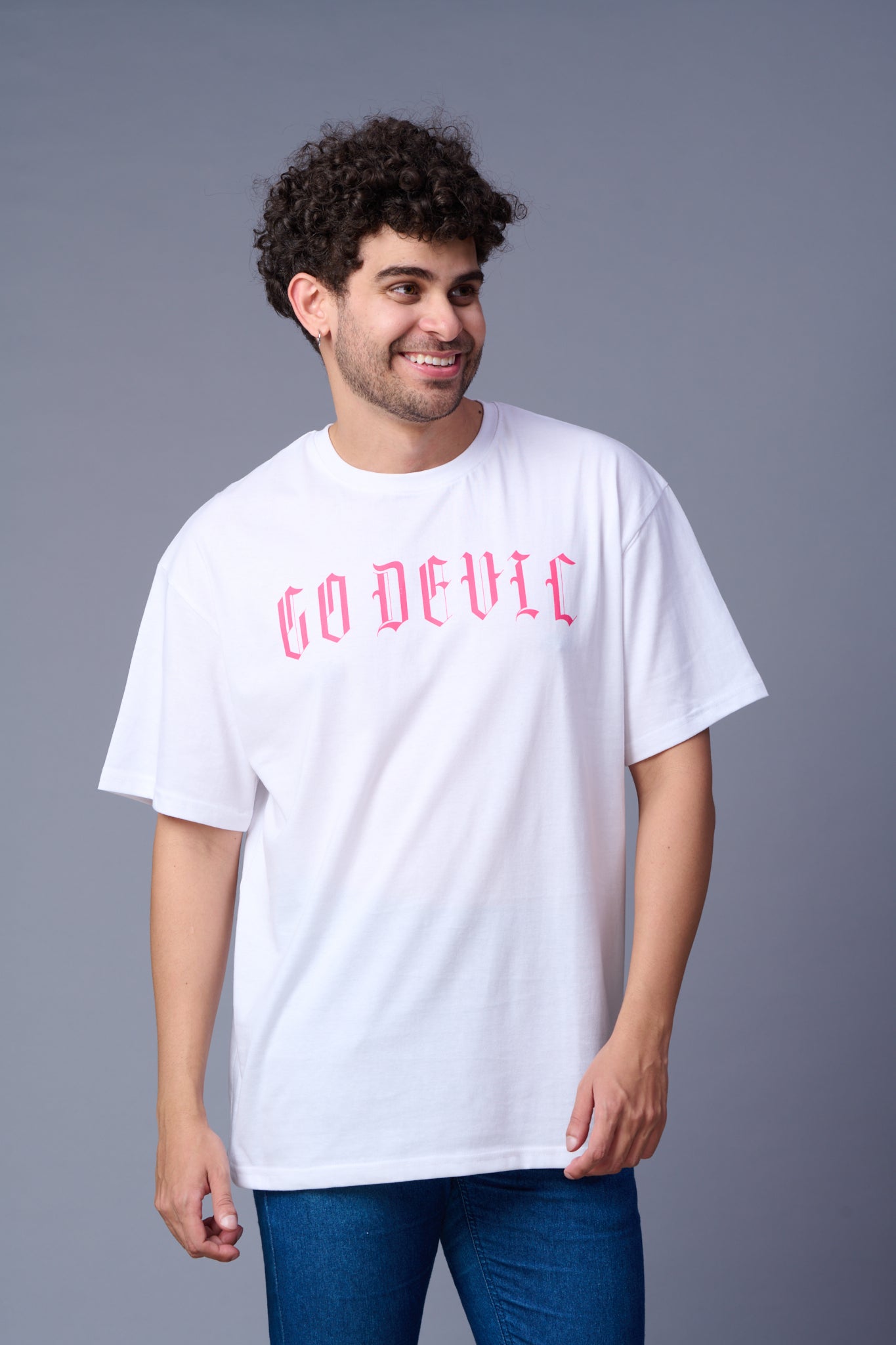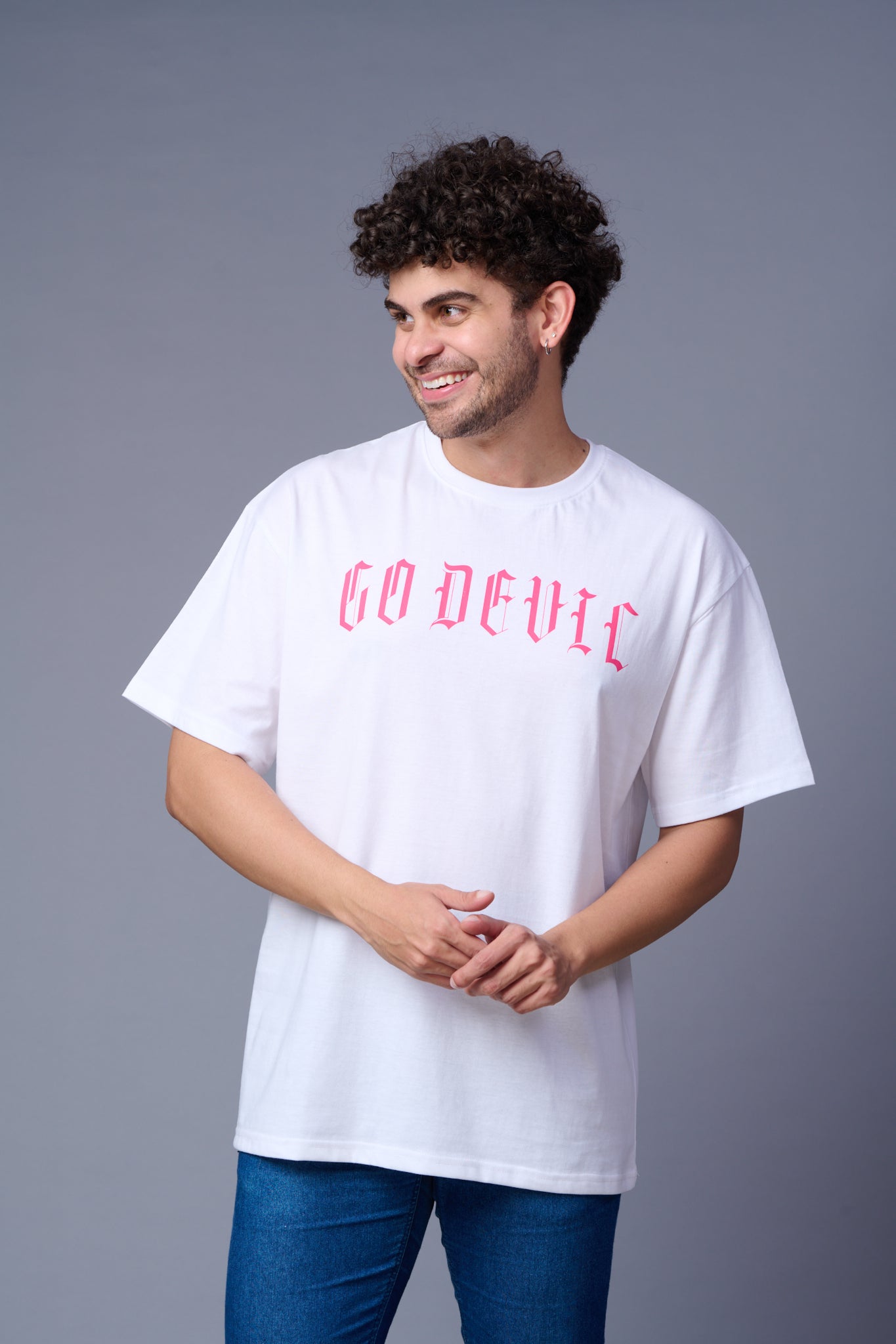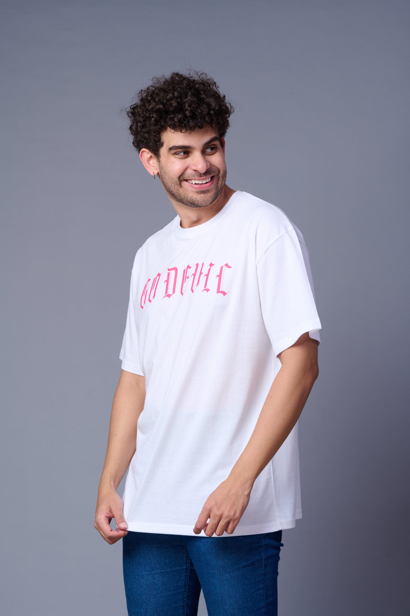 Devil Tiger In Pink printed White Oversized T-Shirt for Men