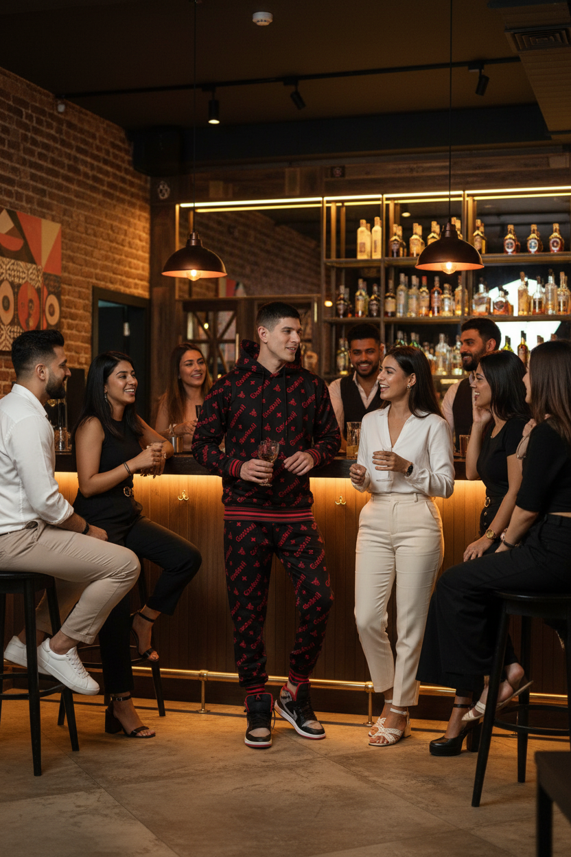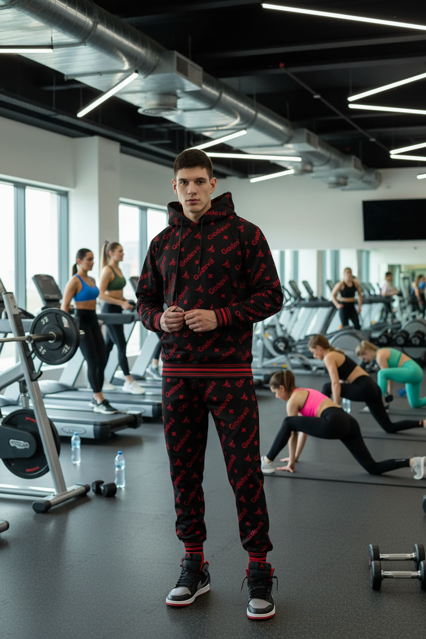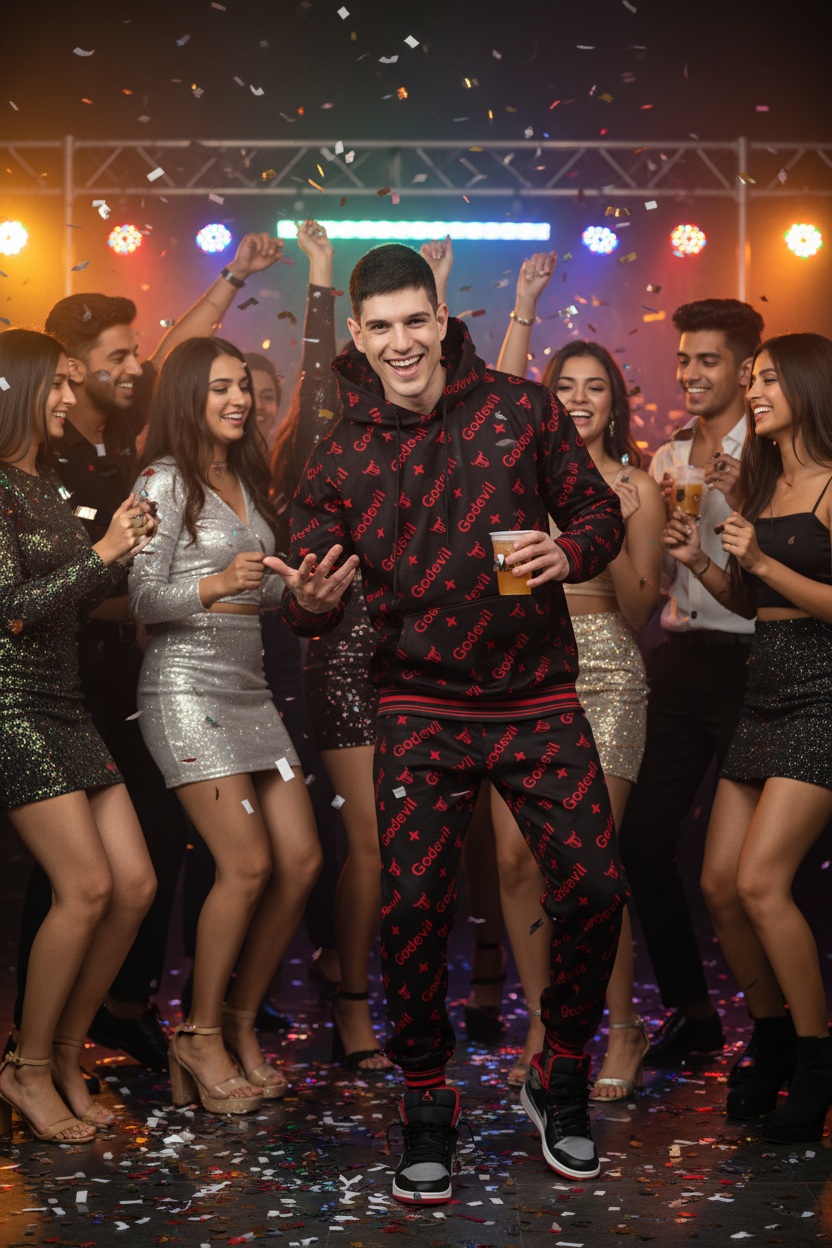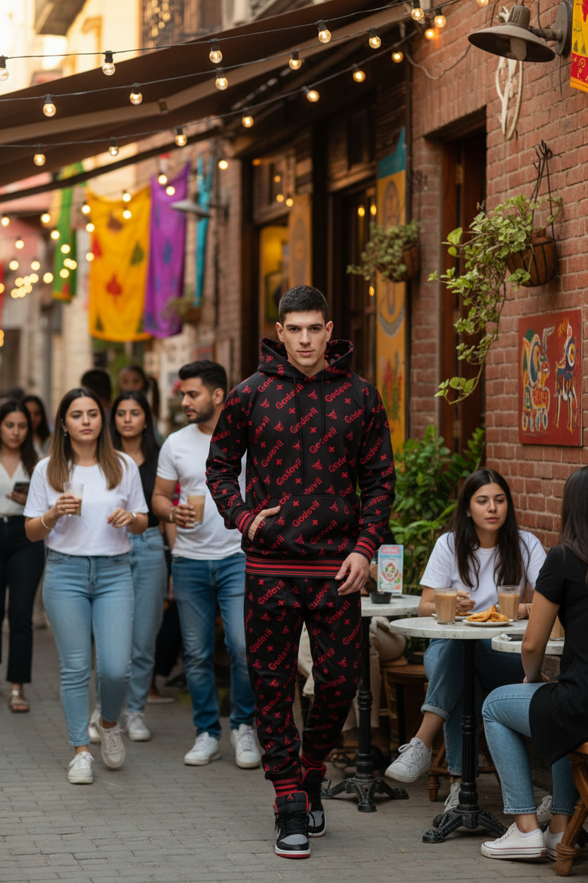 Chinese Devil in Red Foil Print Black Oversized T-Shirt for Men