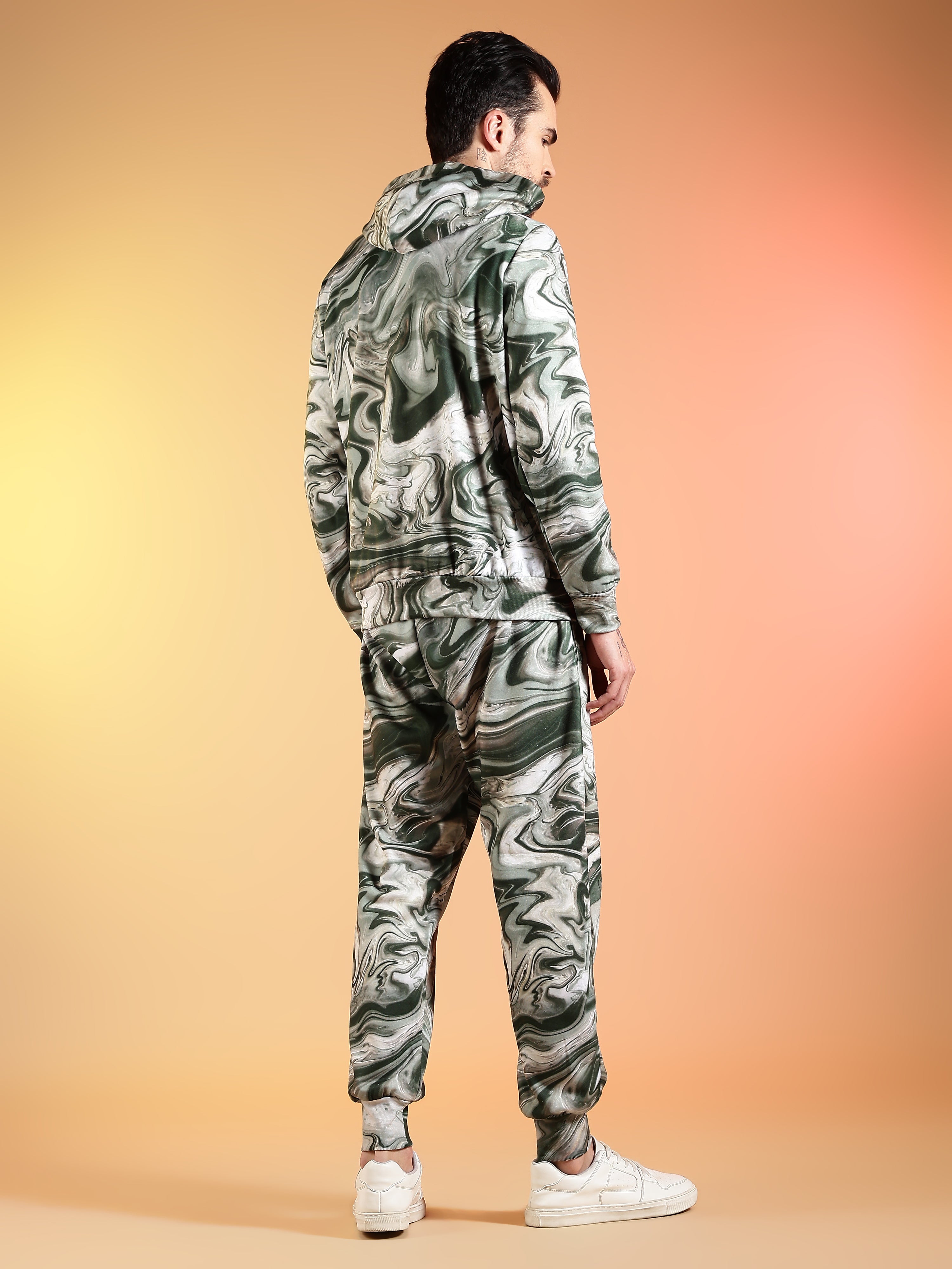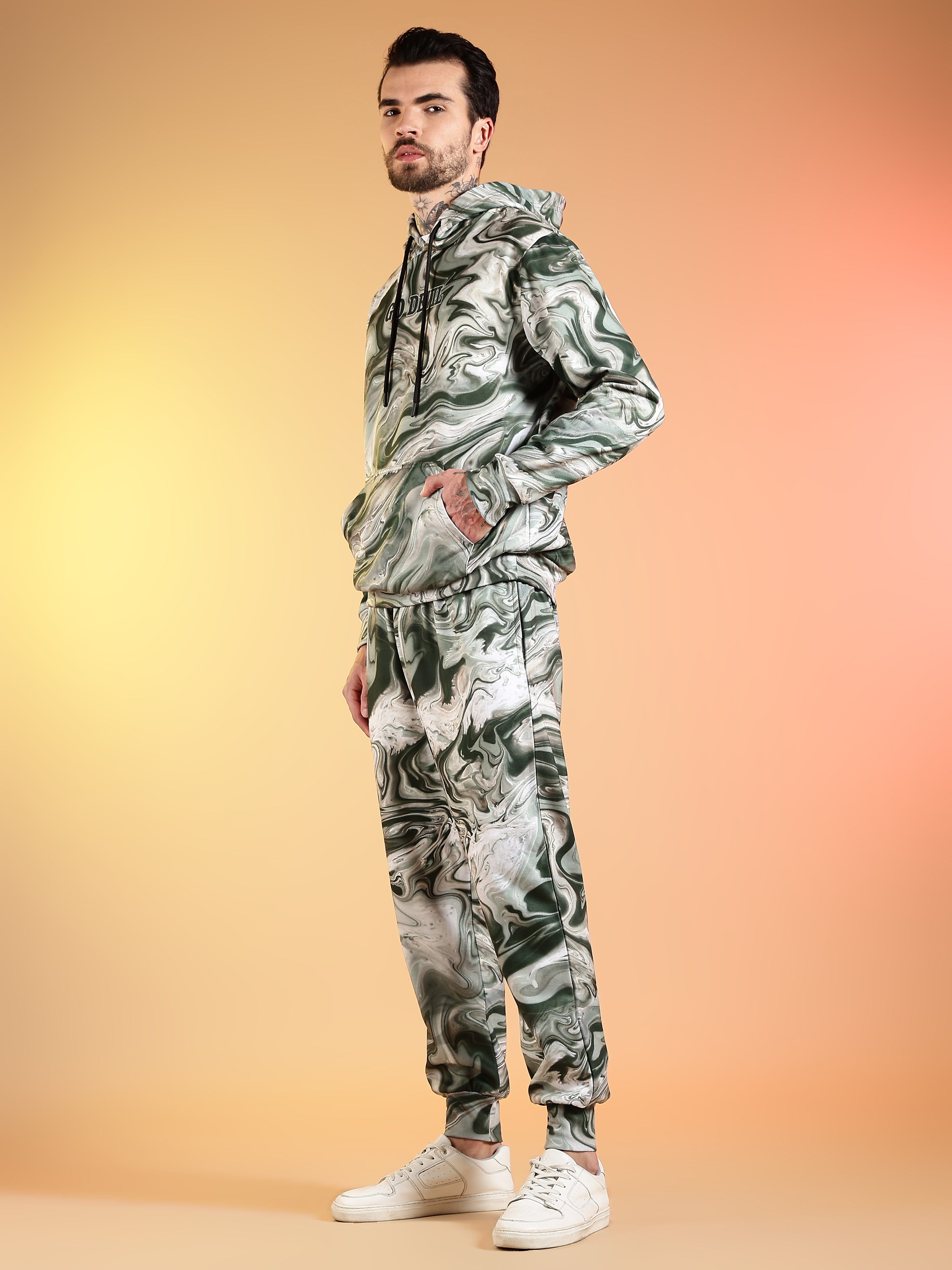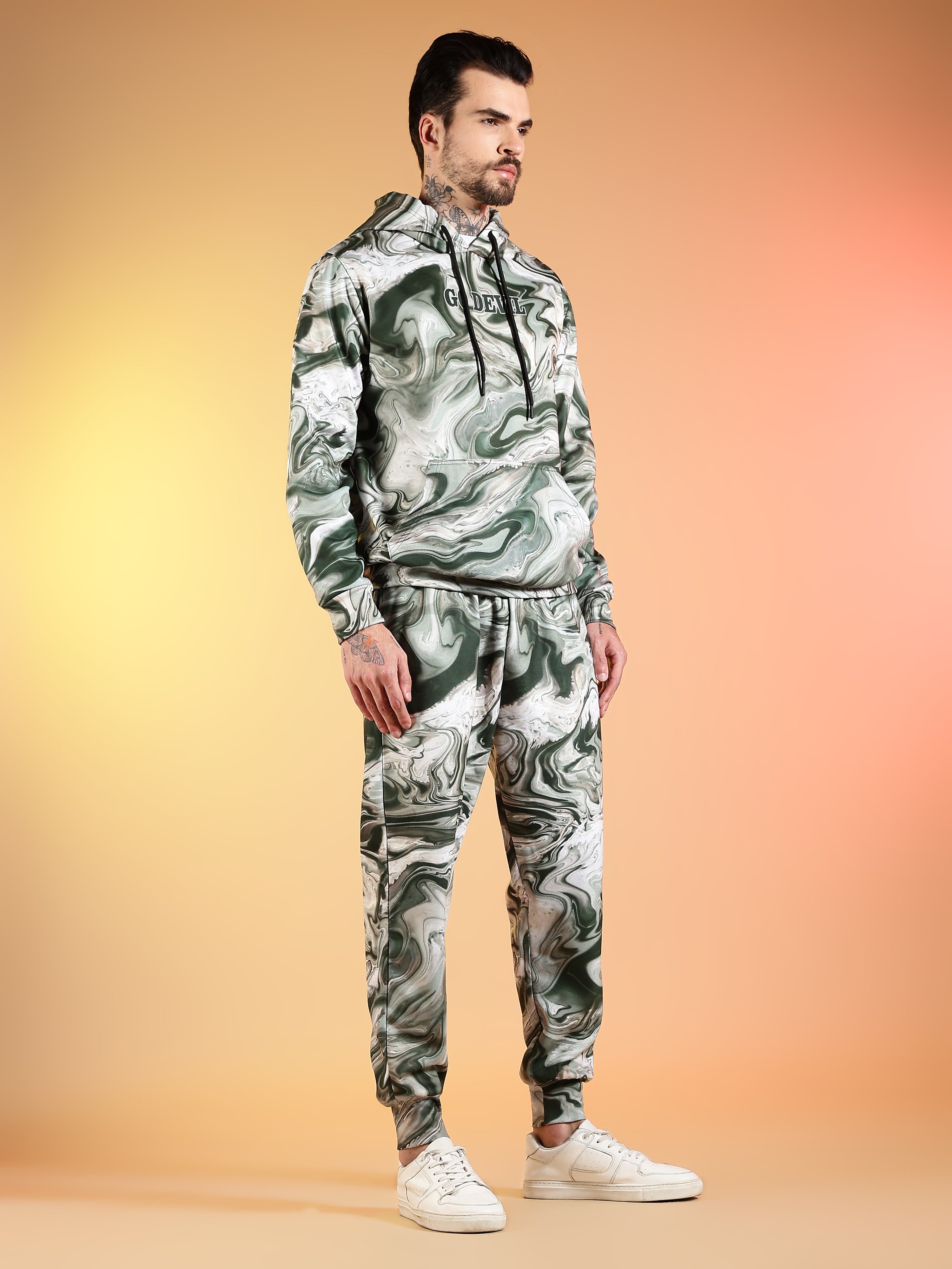 Go Devil Marble Print Hooded Co-Ord Set for Men
