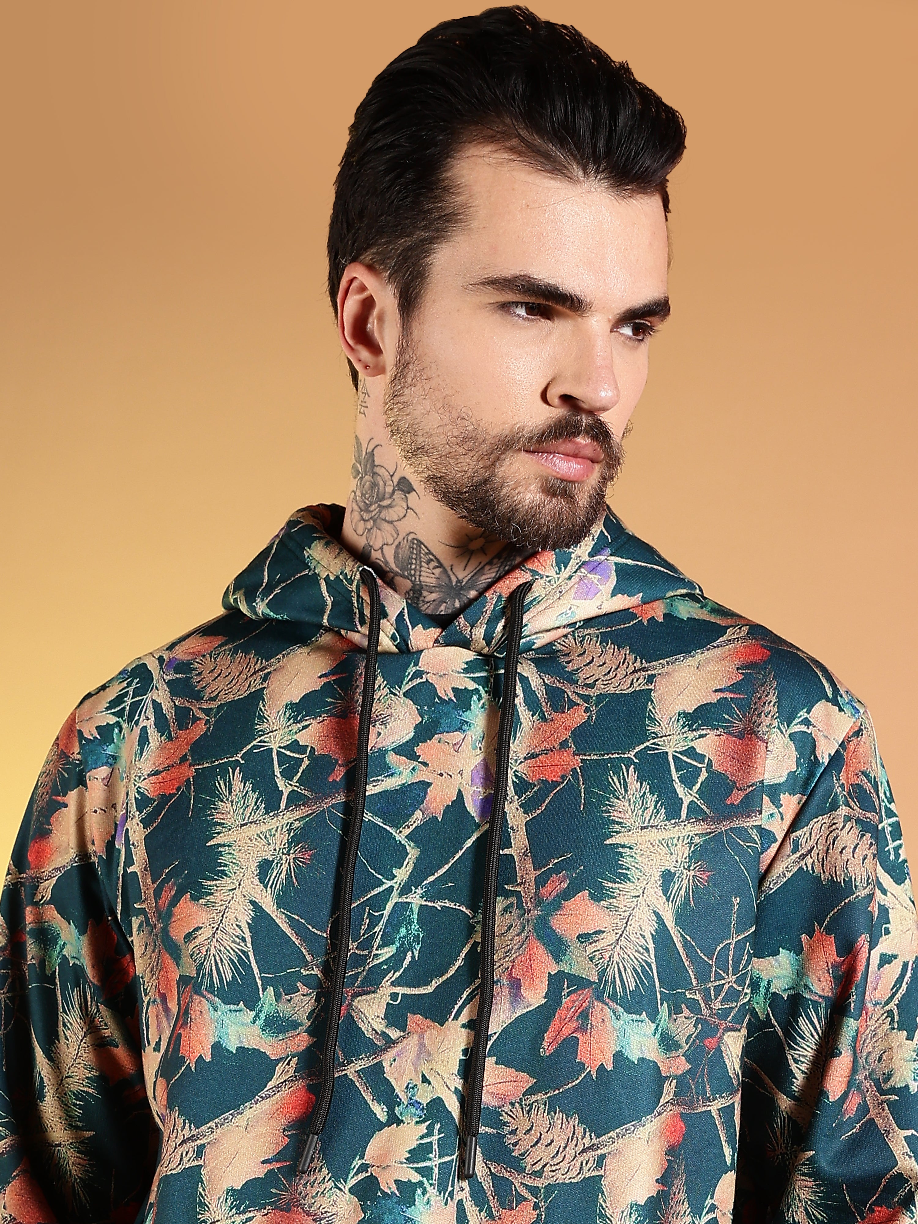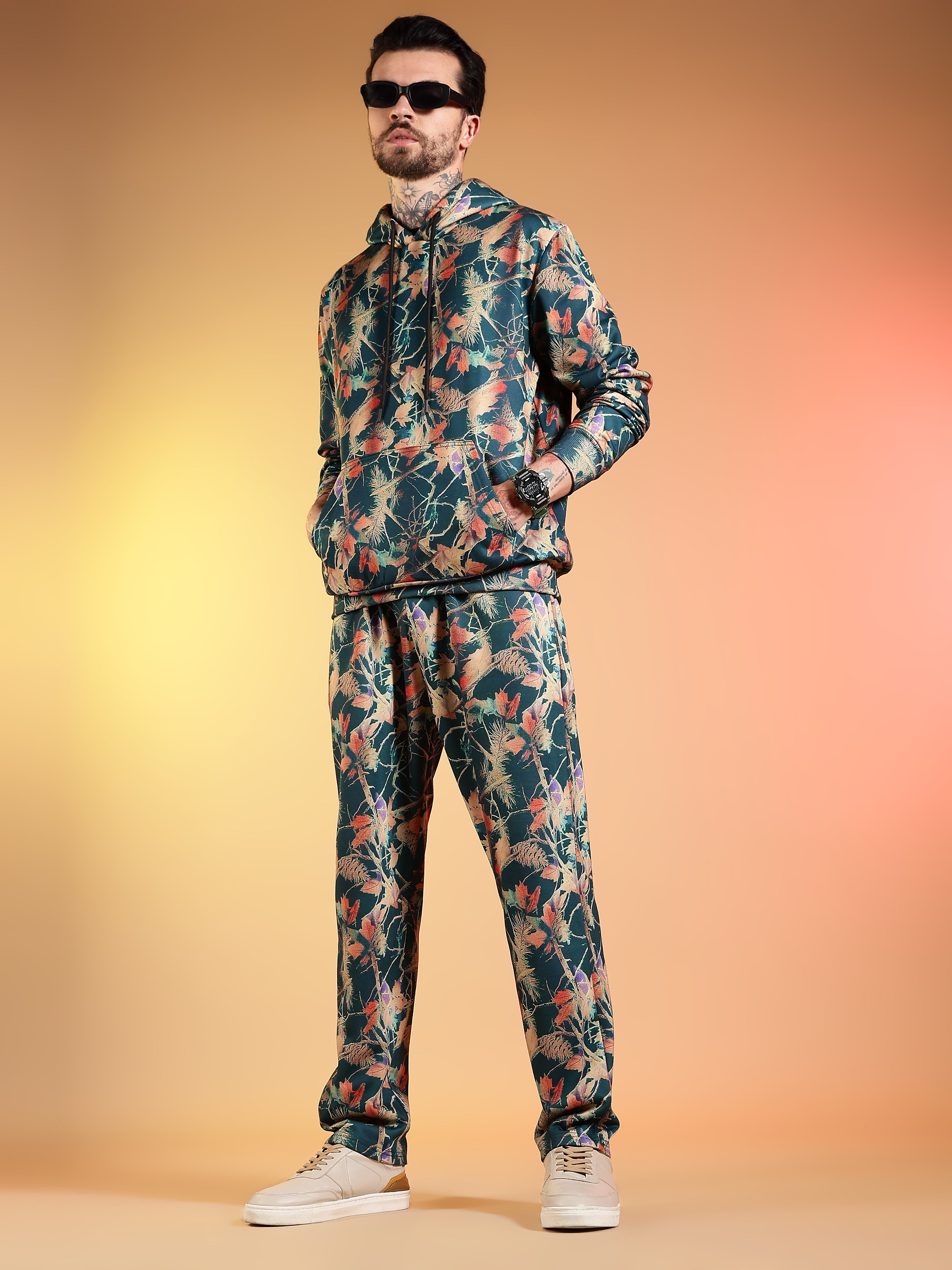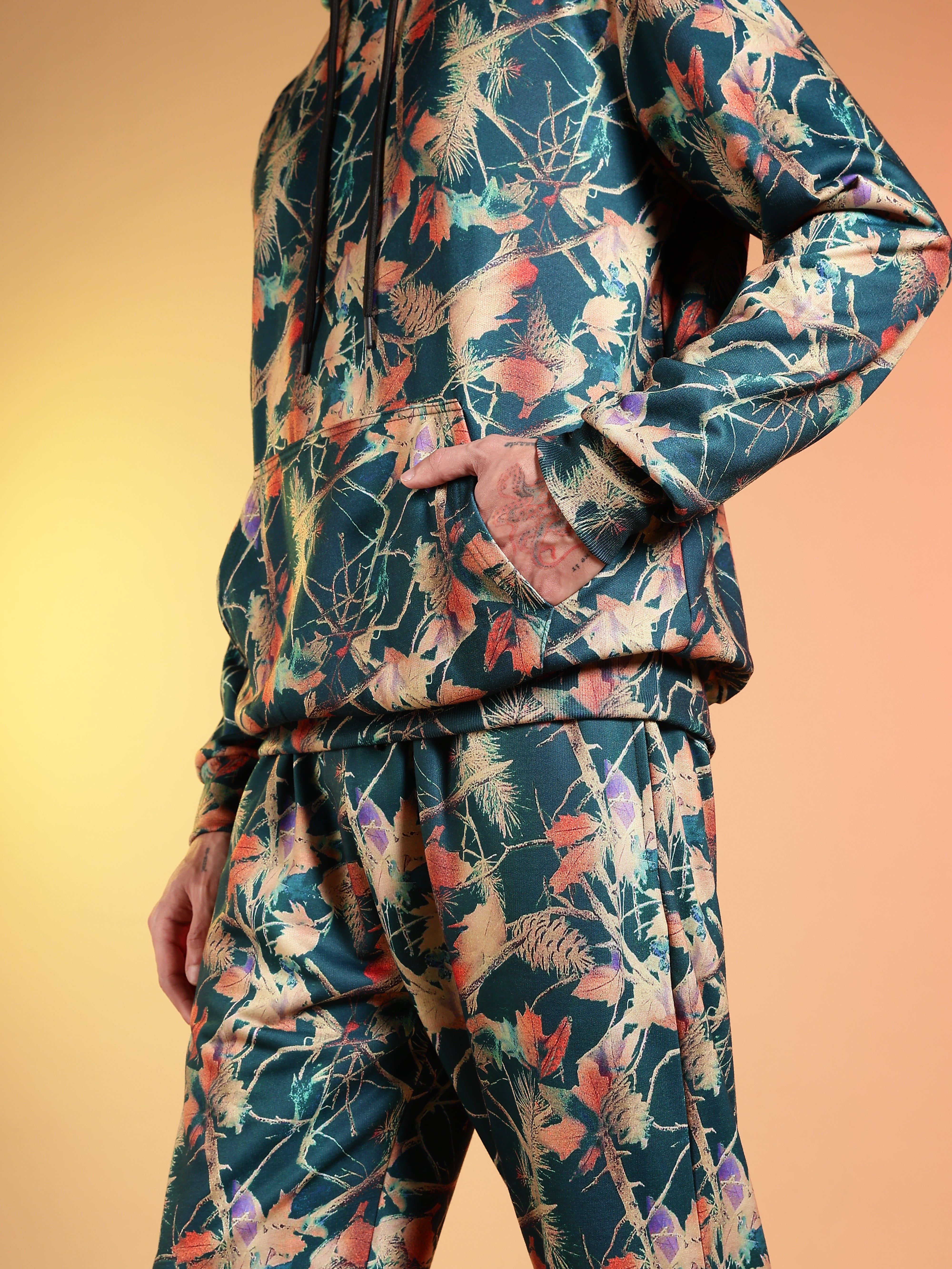 Go Devil Men’s Abstract Leaf Print Hooded Co-Ord Set