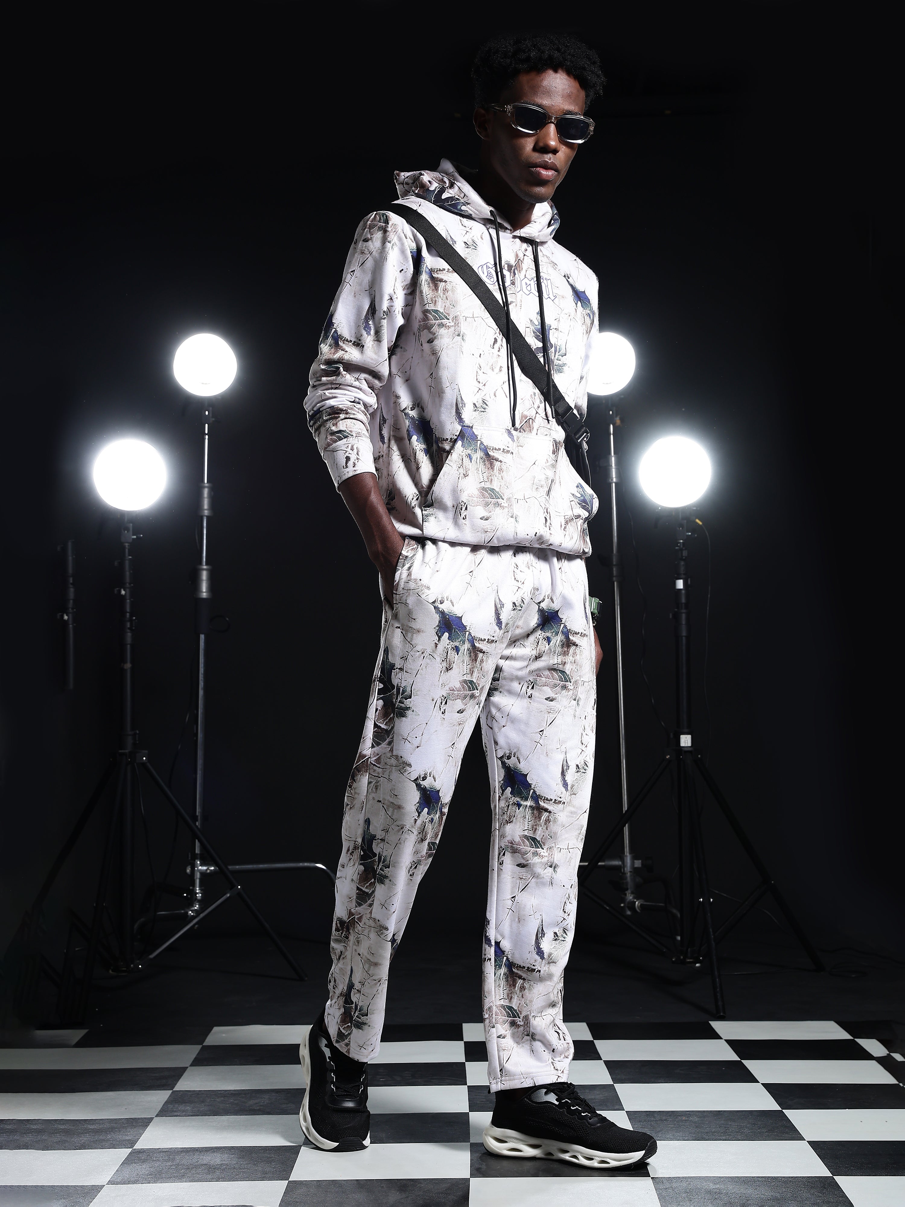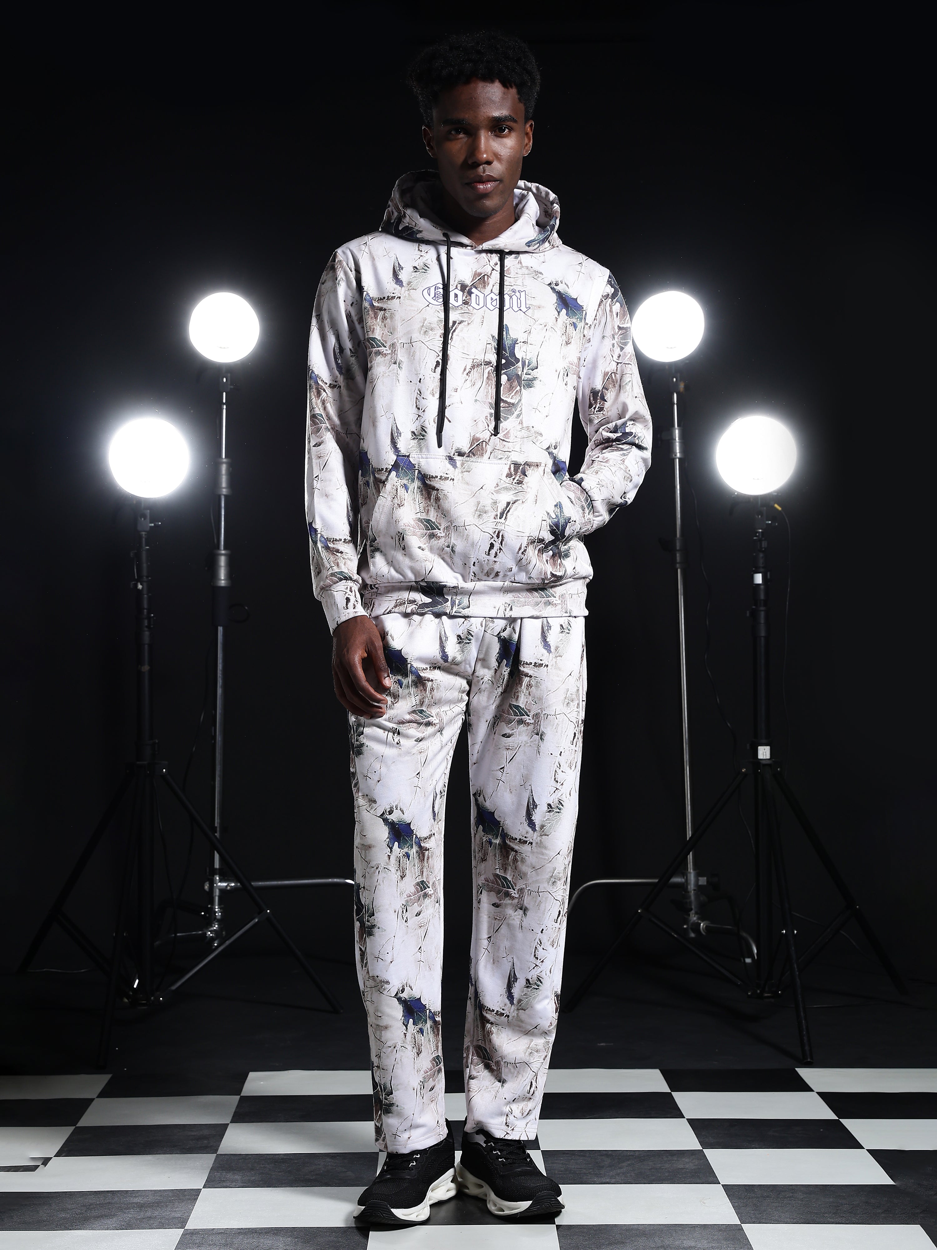 Go Devil Mens Abstract Printed Hooded Co-Ord Set