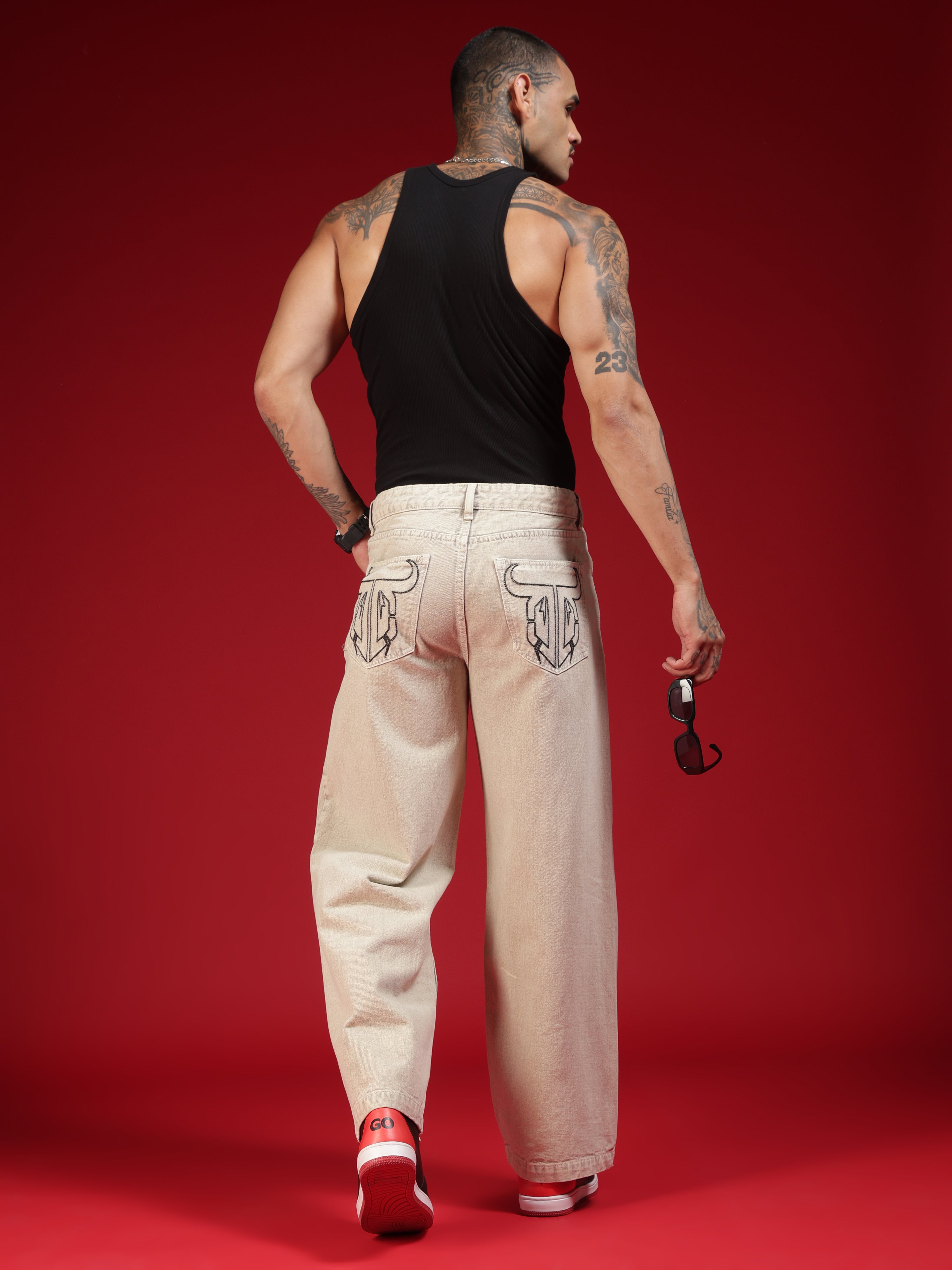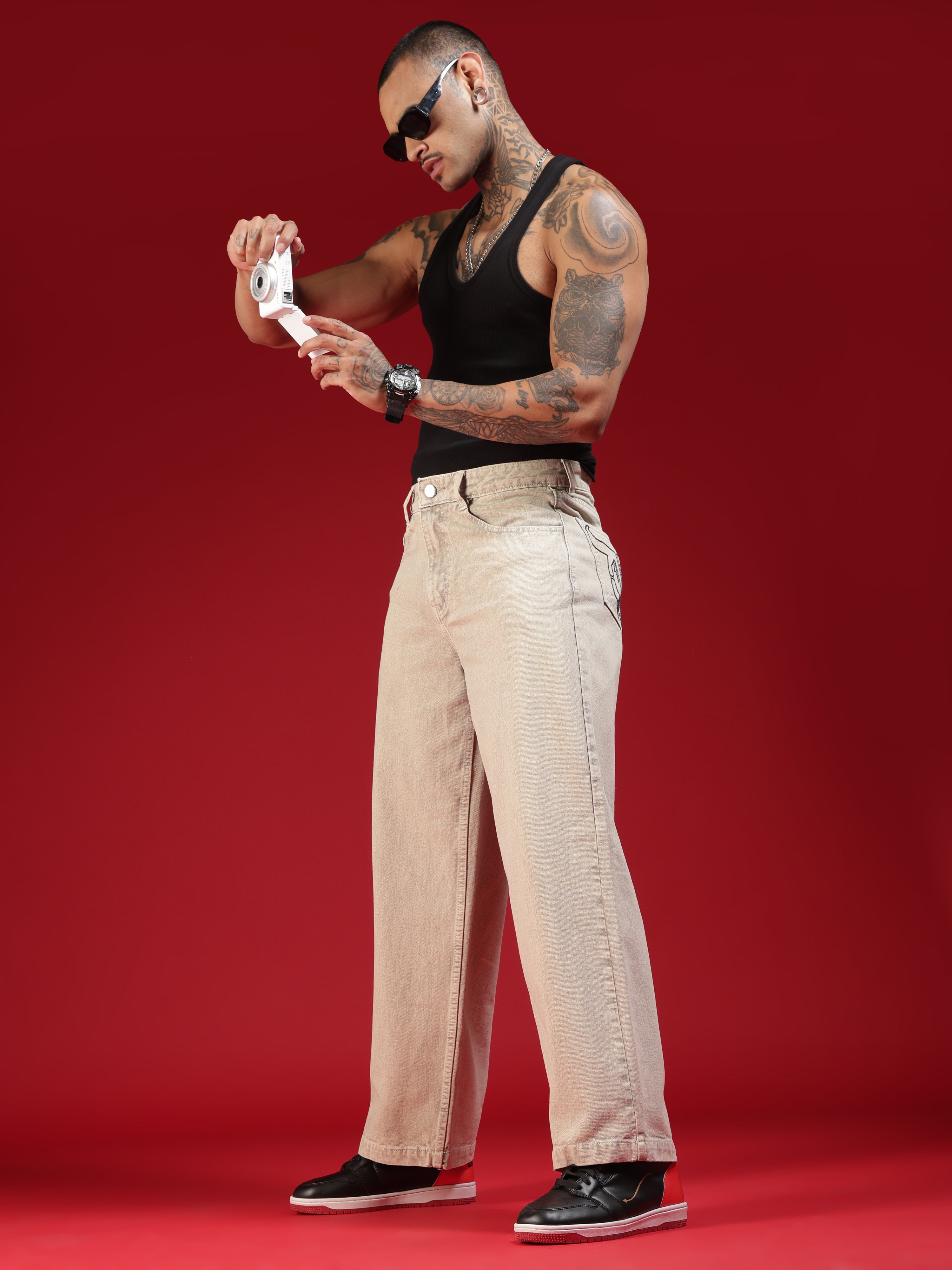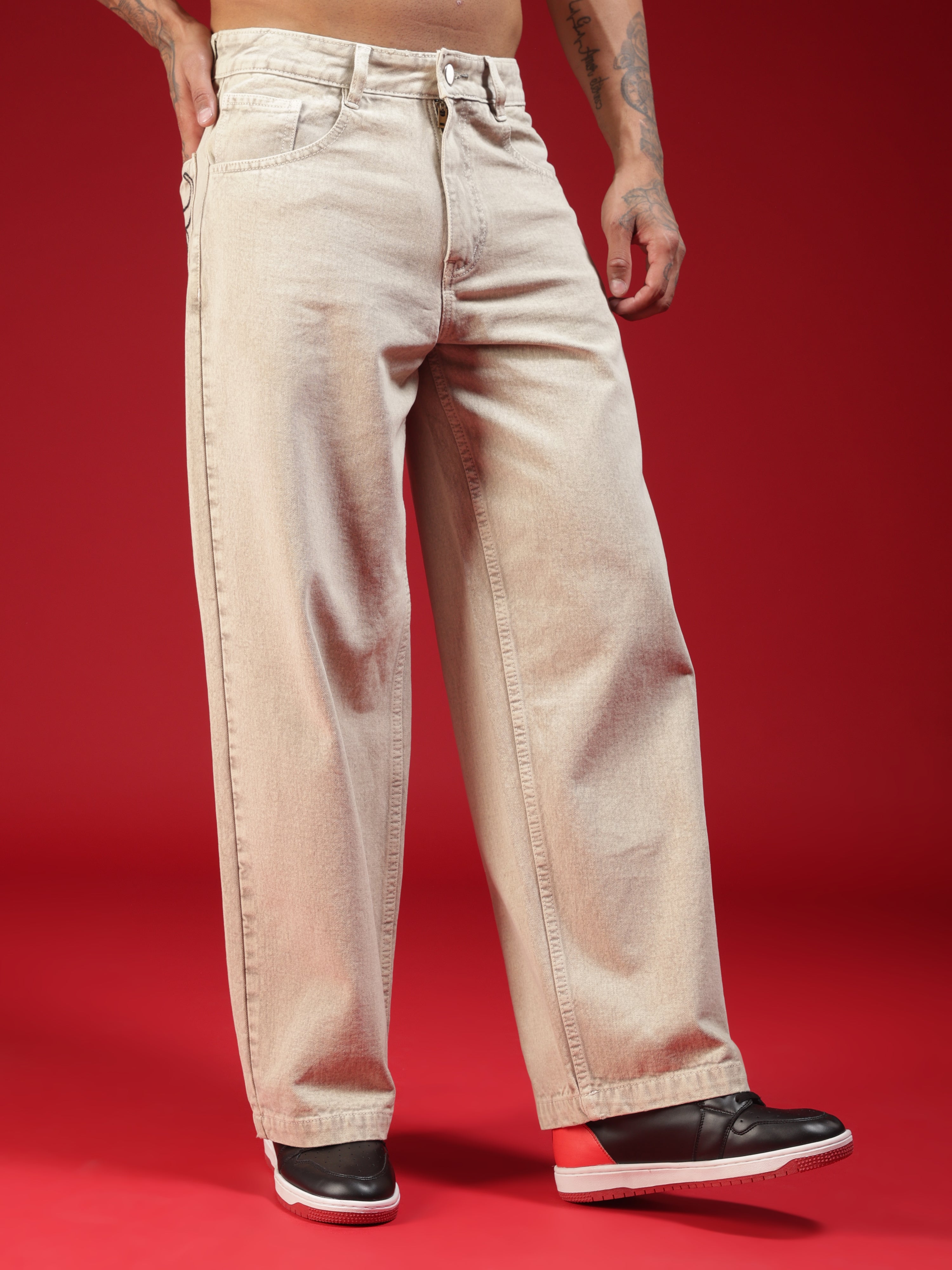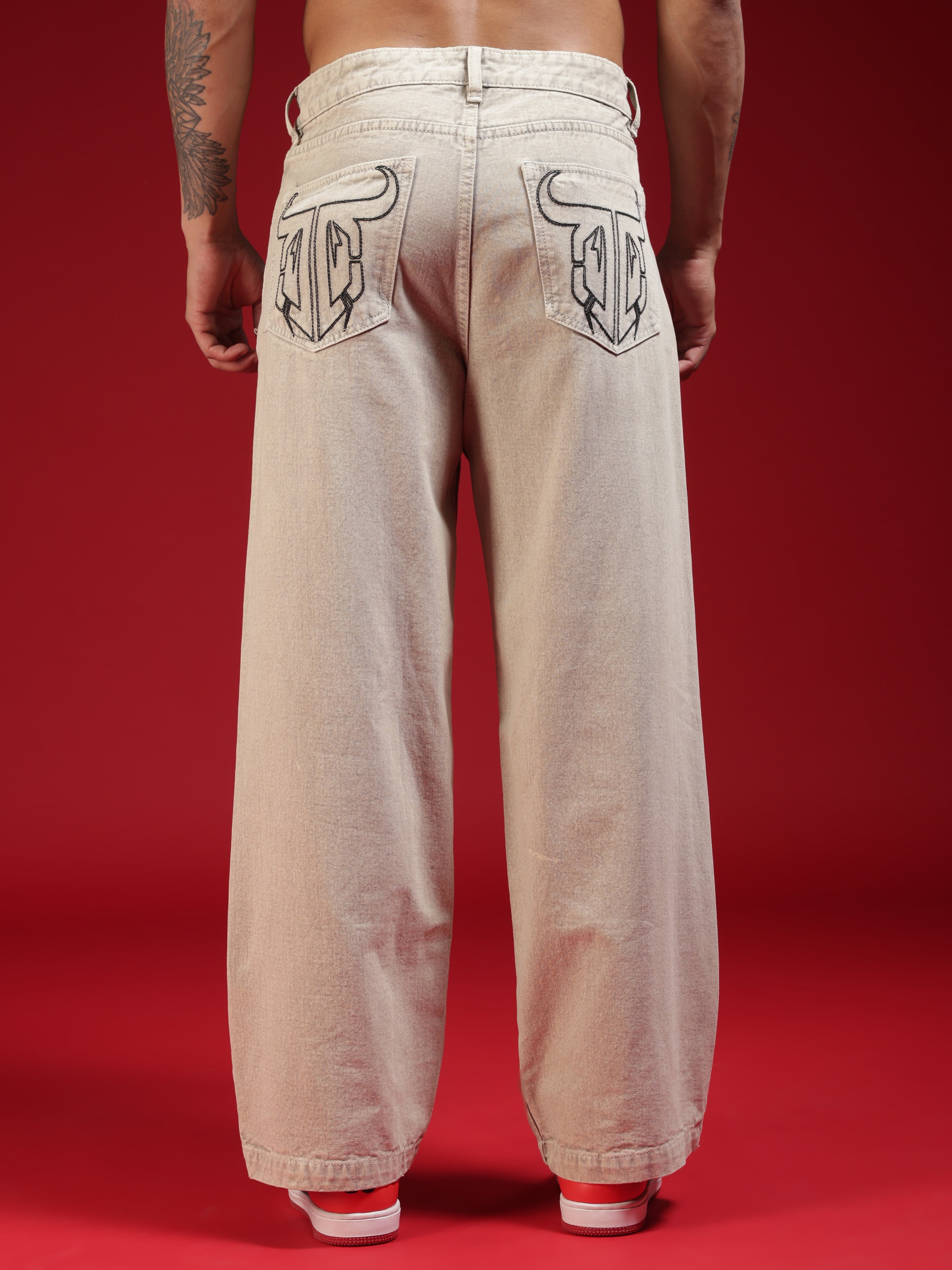 Go Devil Mens Baggy Fit Light Beige Jeans