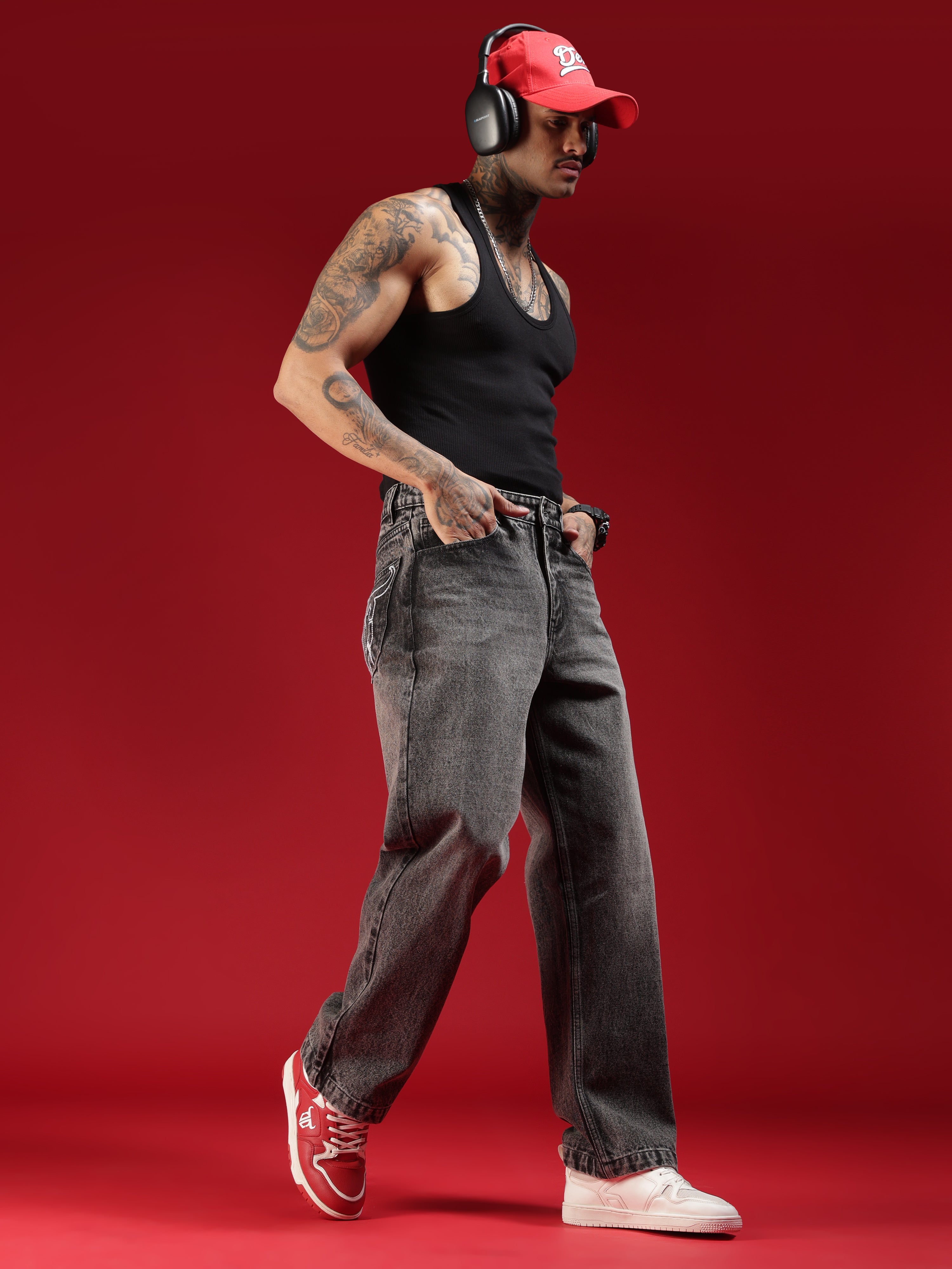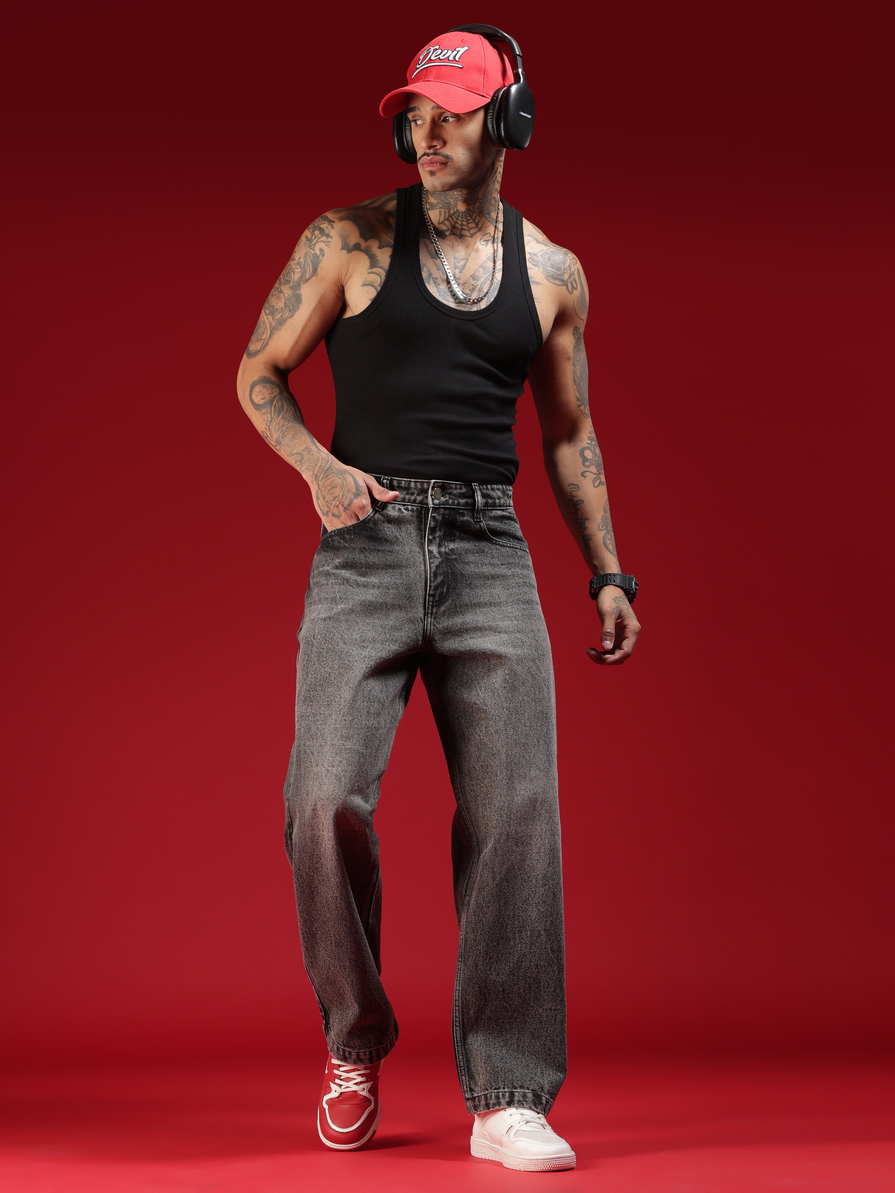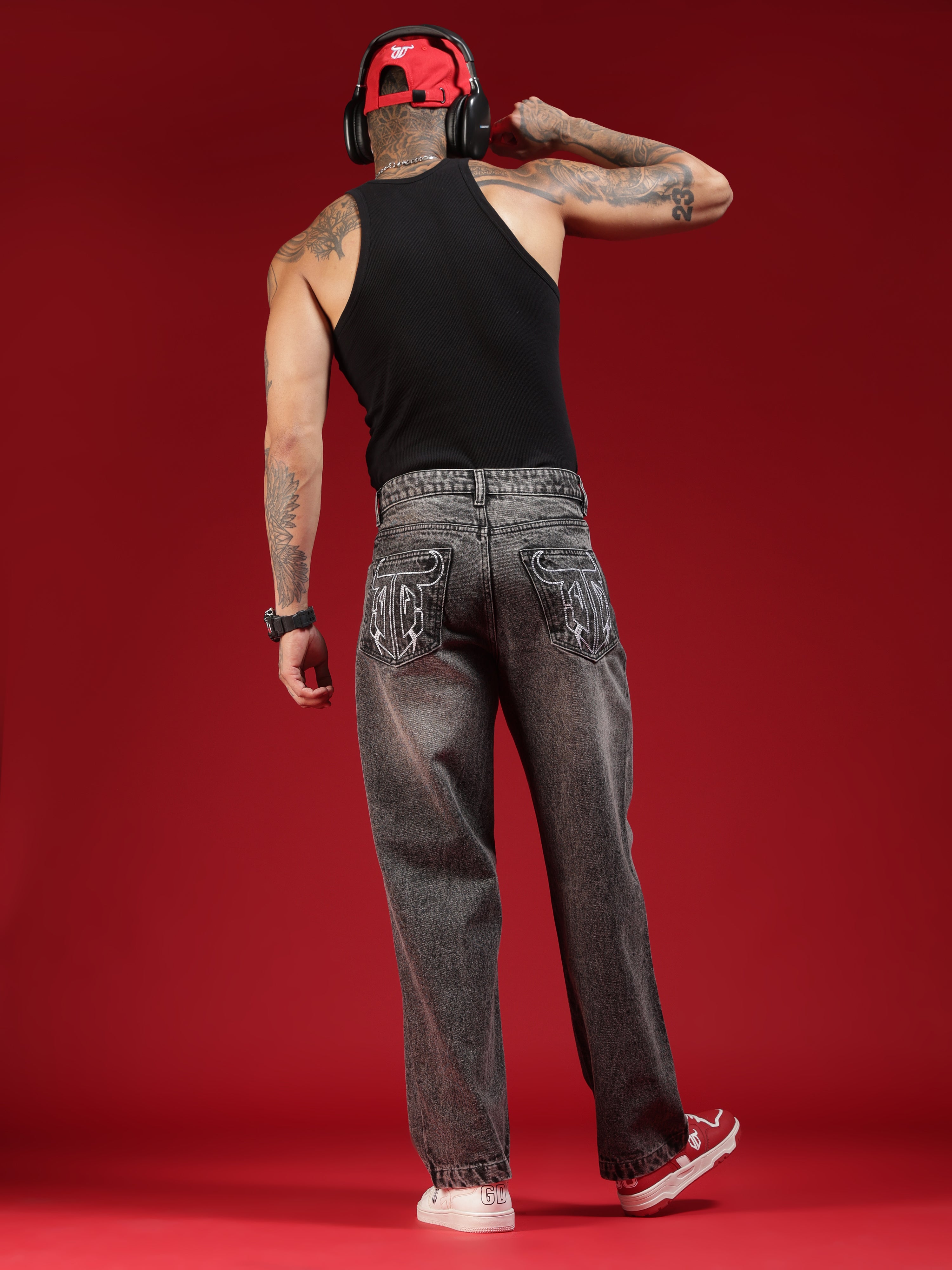 Go Devil Mens Baggy Fit Premium Washed Black Jeans