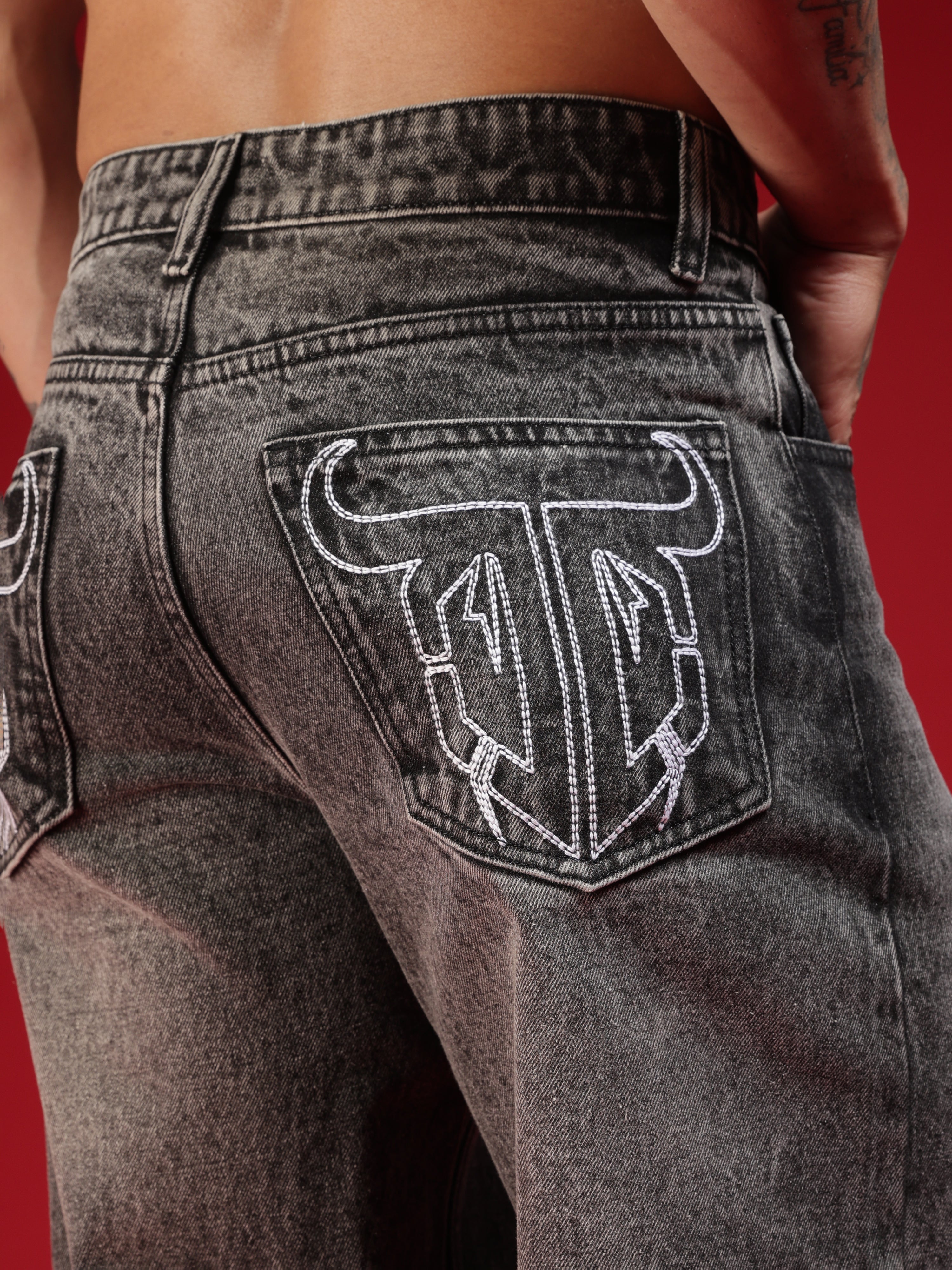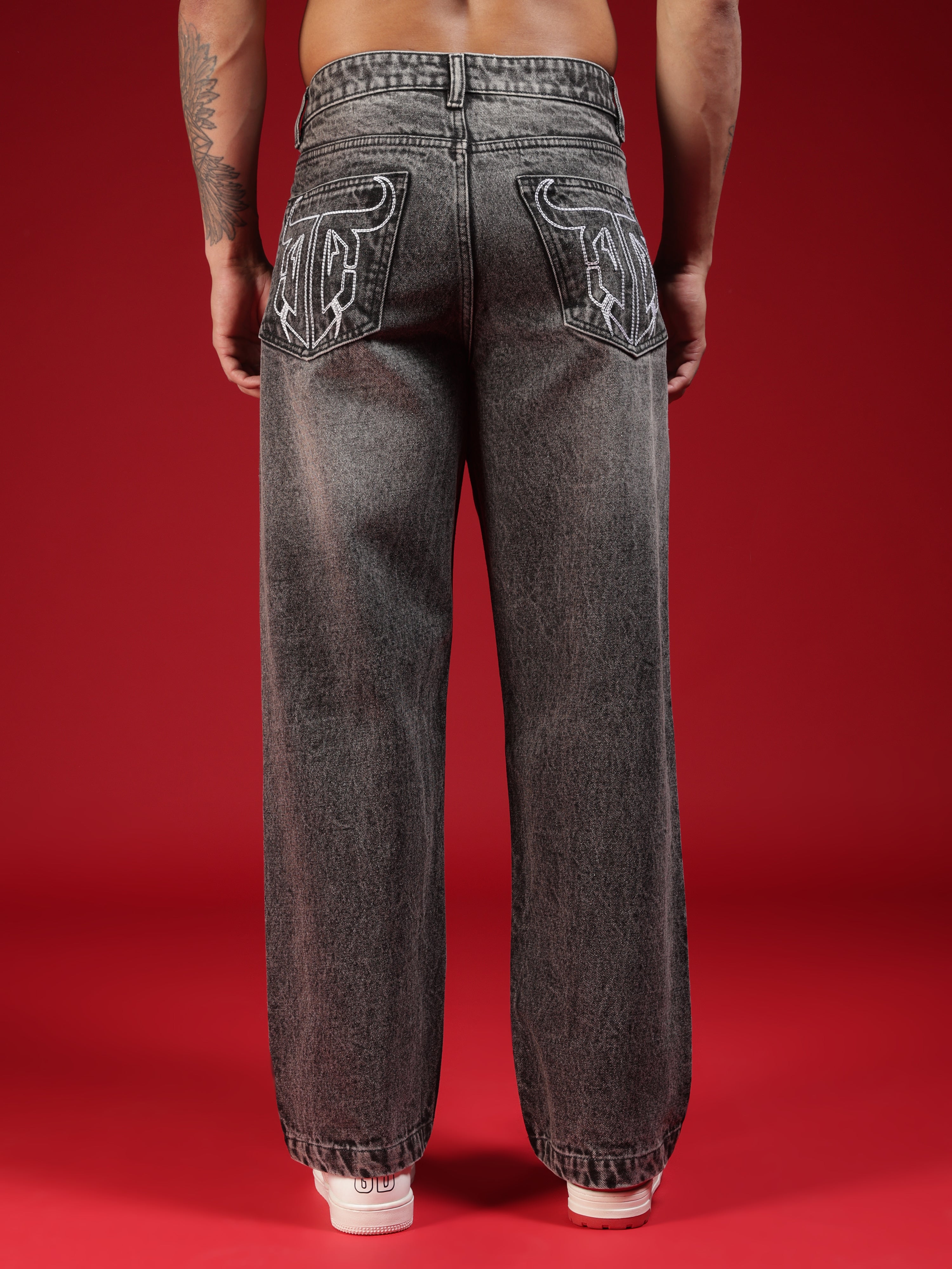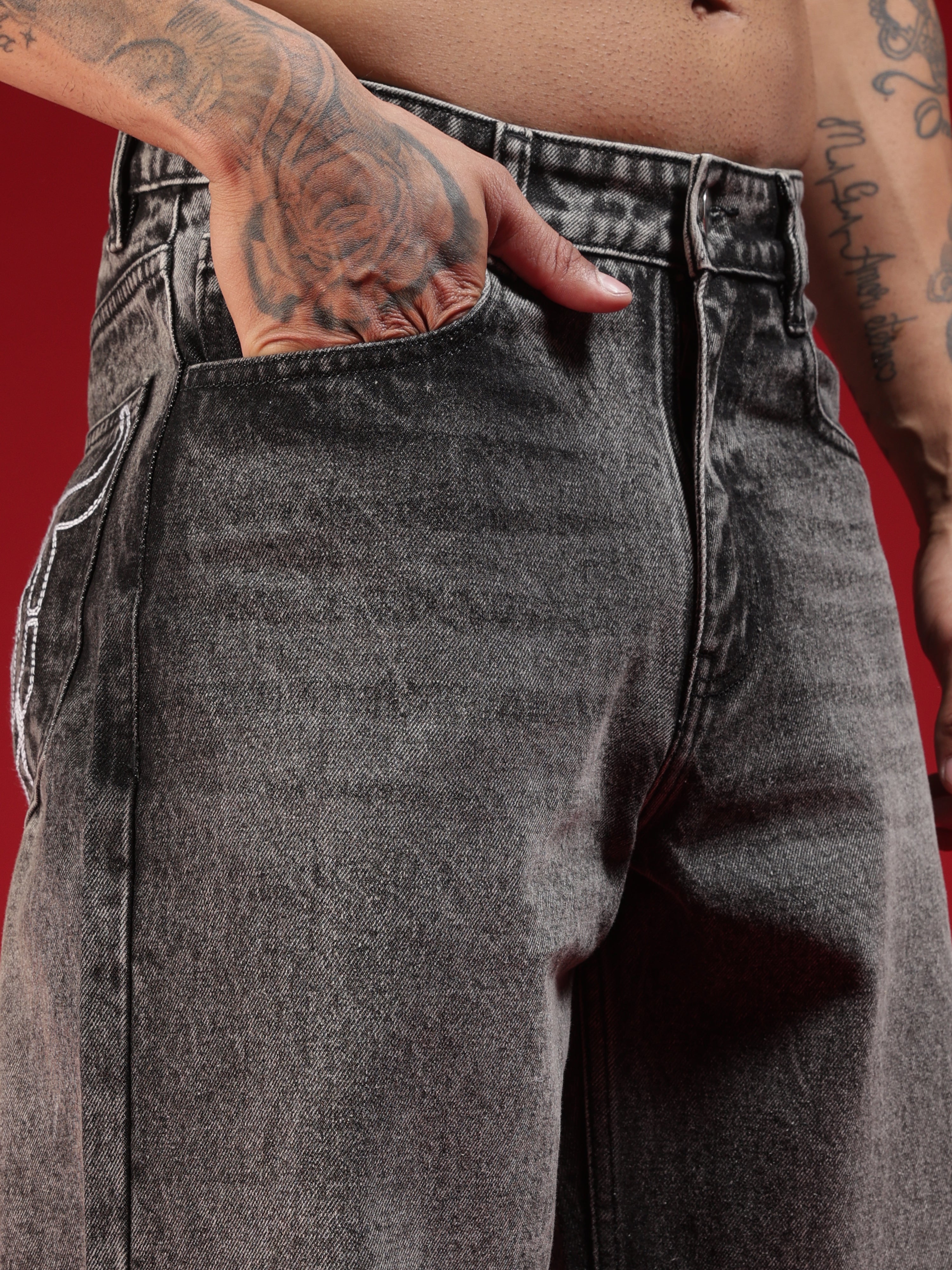 Go Devil Mens Baggy Fit Premium Washed Black Jeans