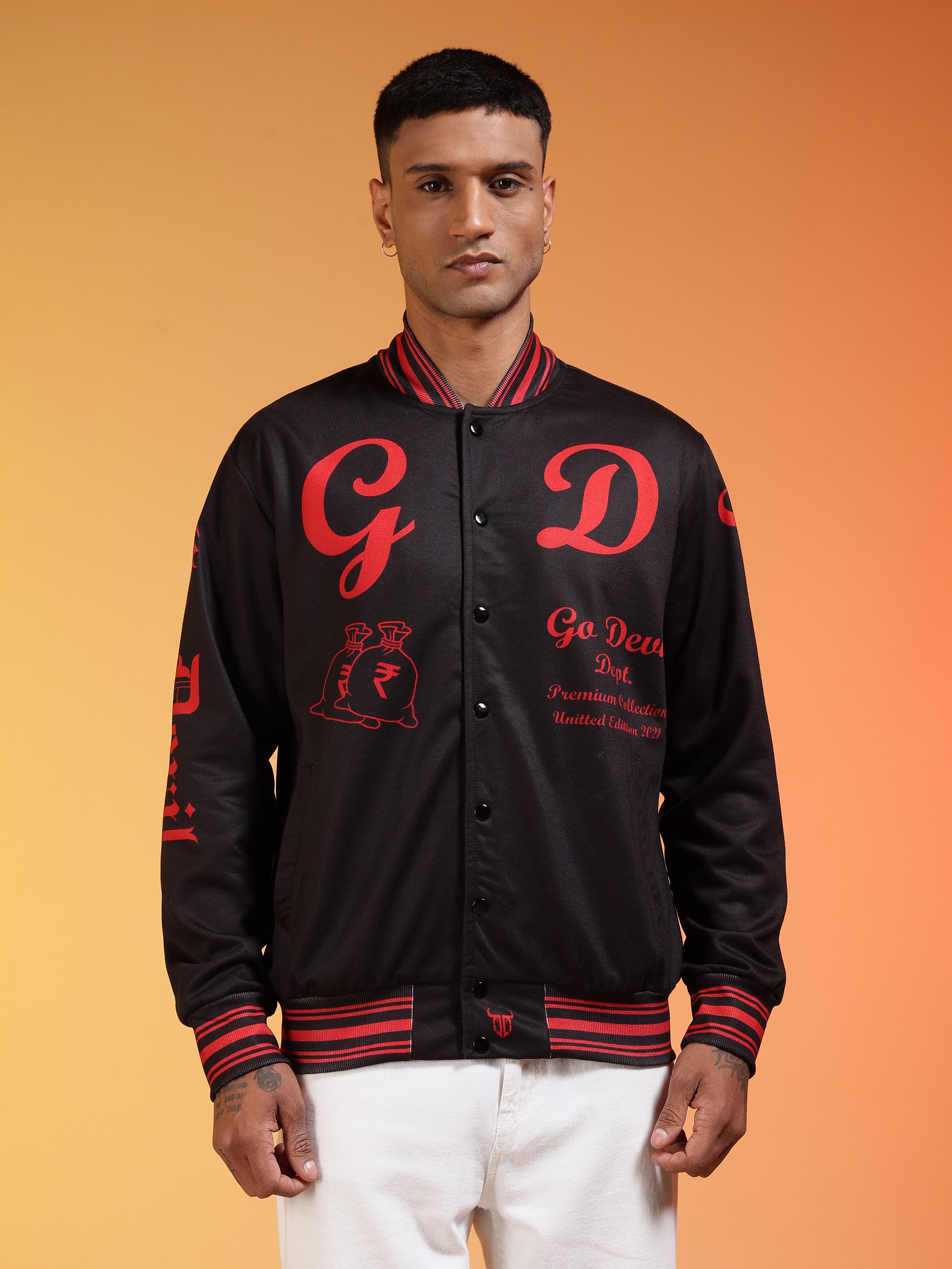 Go Devil Men’s Black & Red Graphic Varsity Jacket