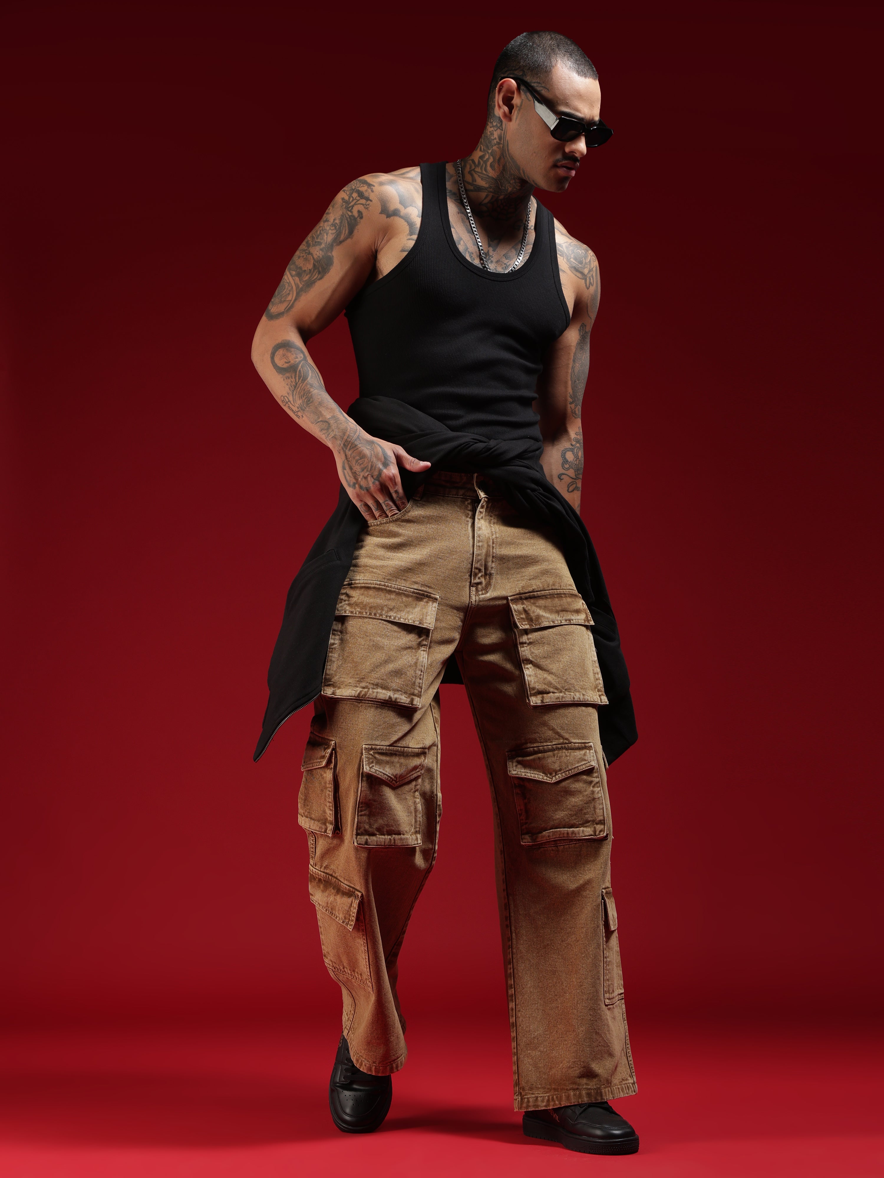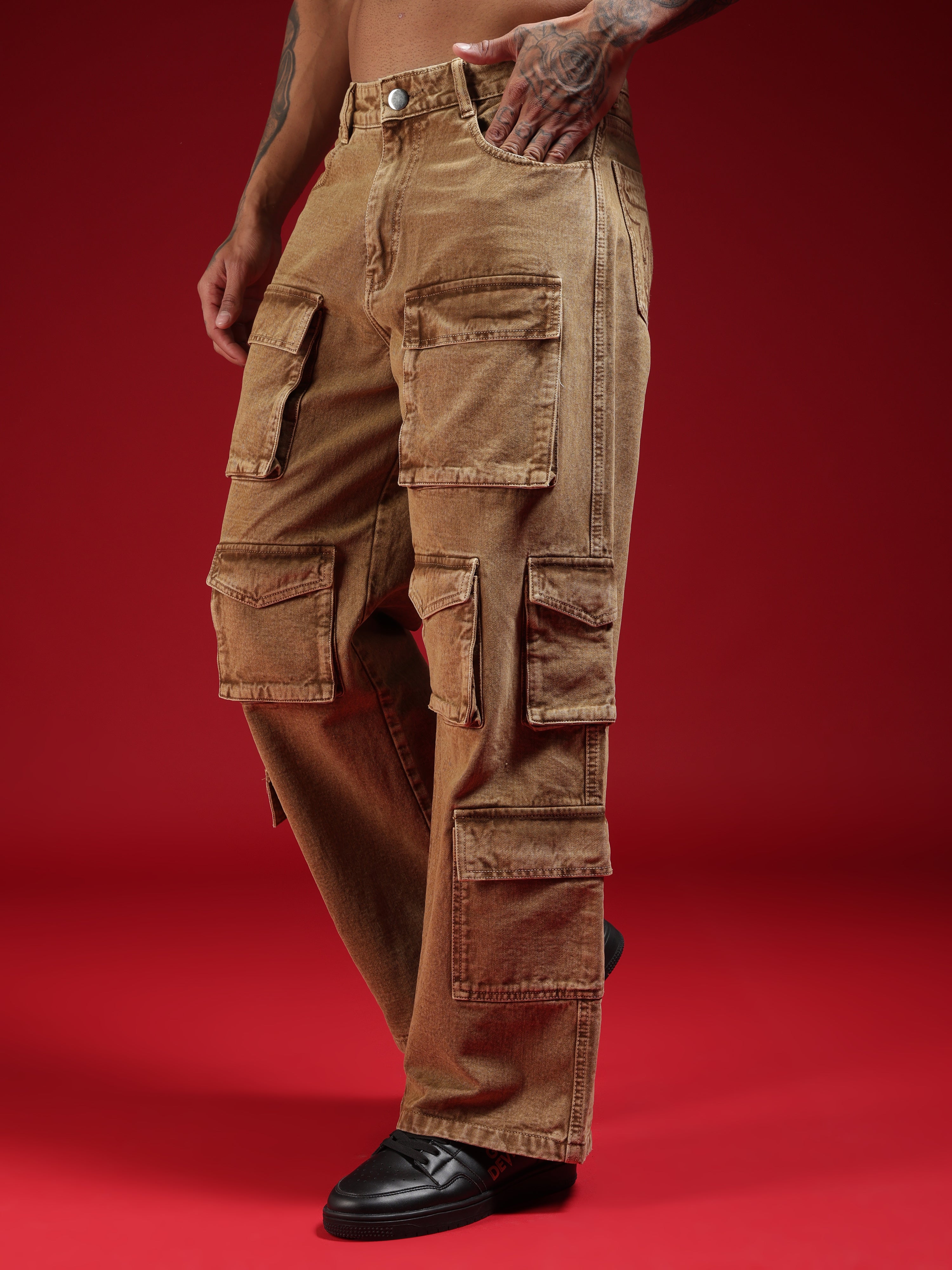 Go Devil Mens Multi-Pocket Stylish Cargo Denim Jeans