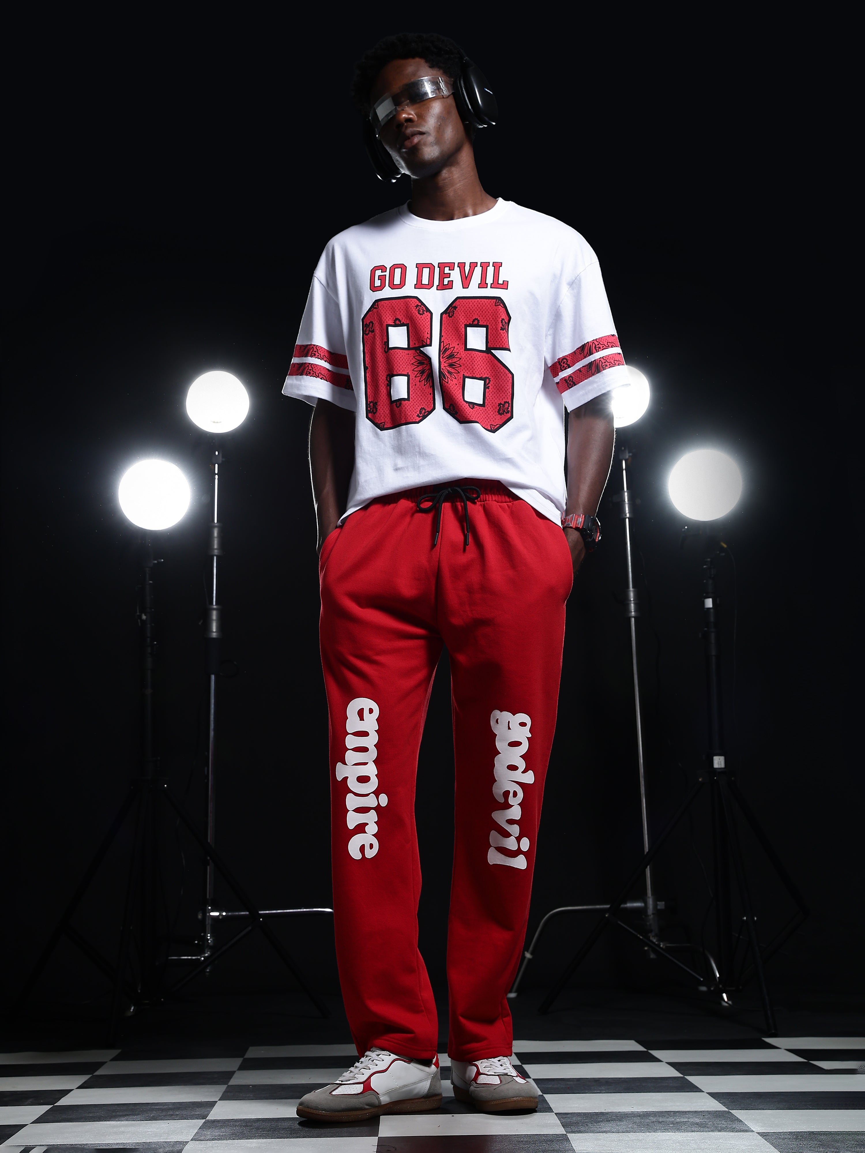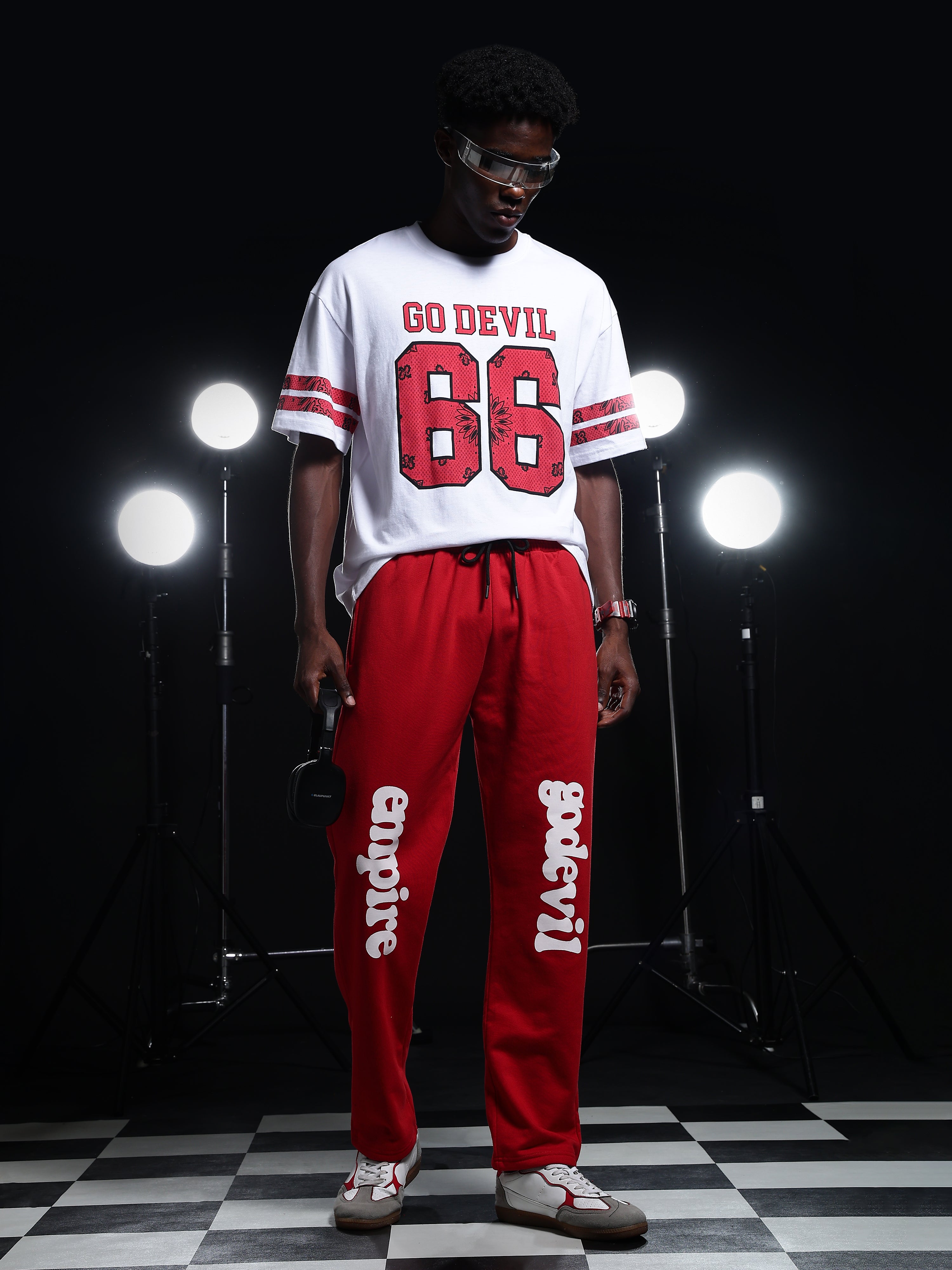 Go Devil Mens Red Casual Graphic Printed Joggers