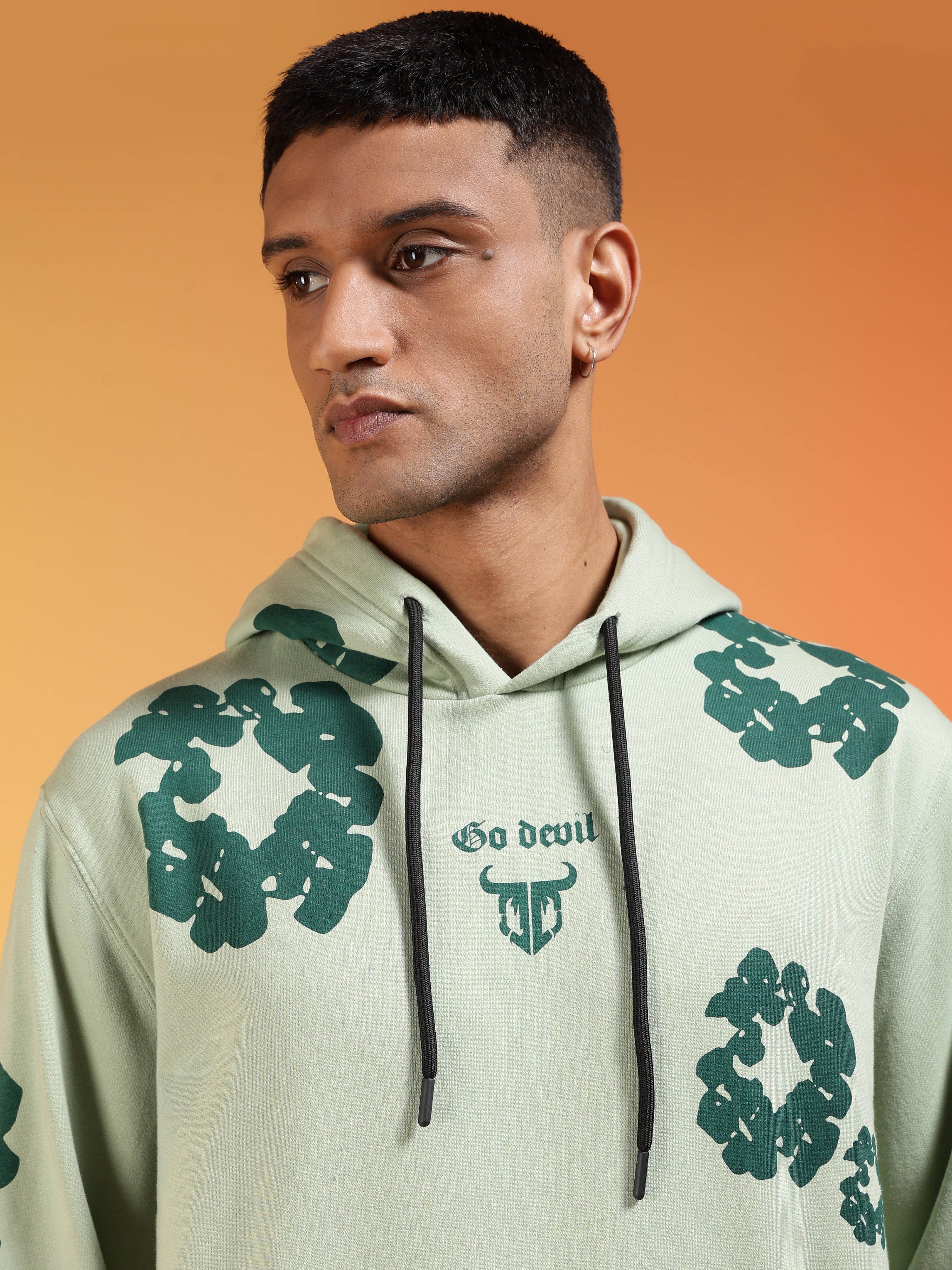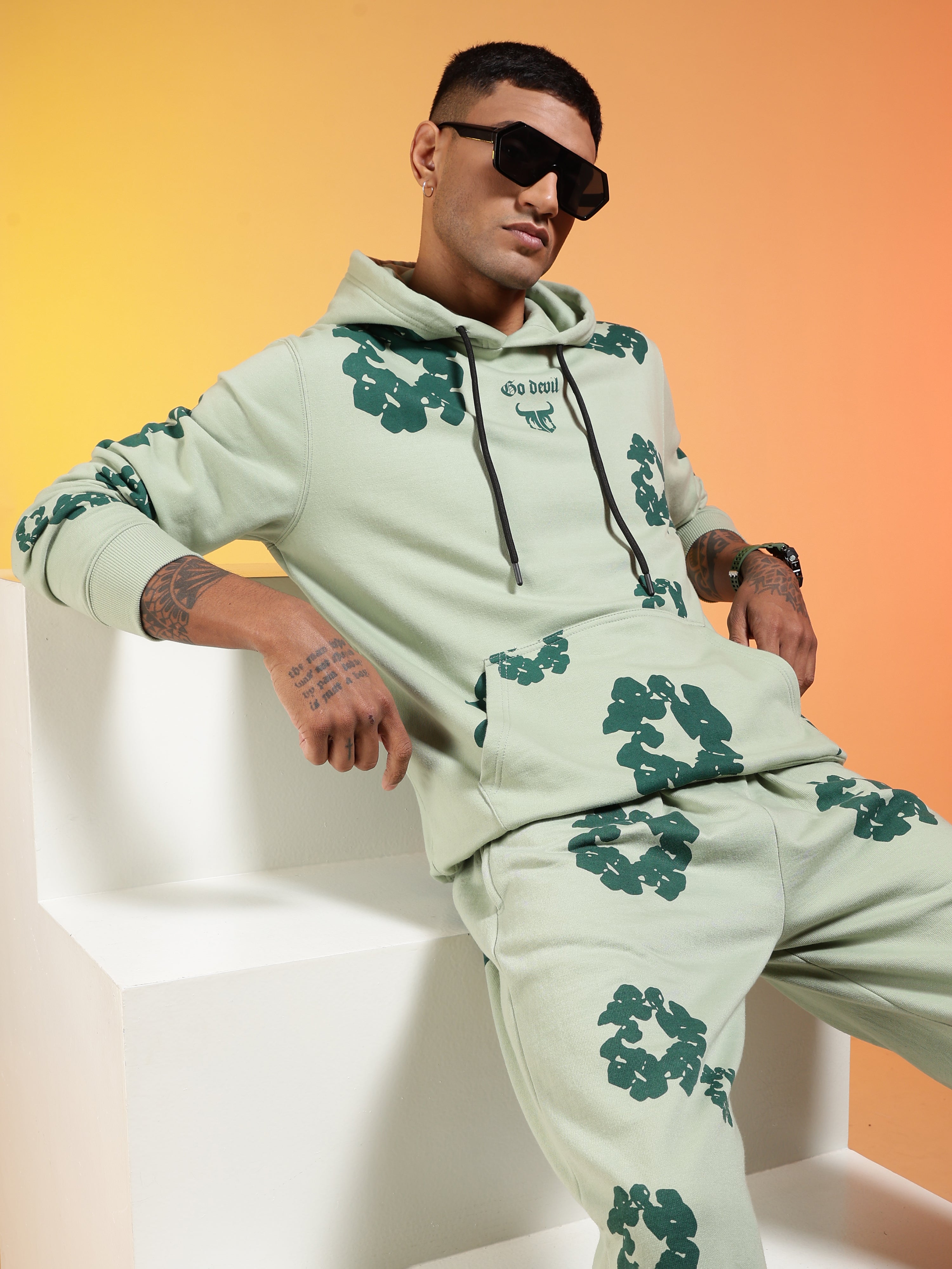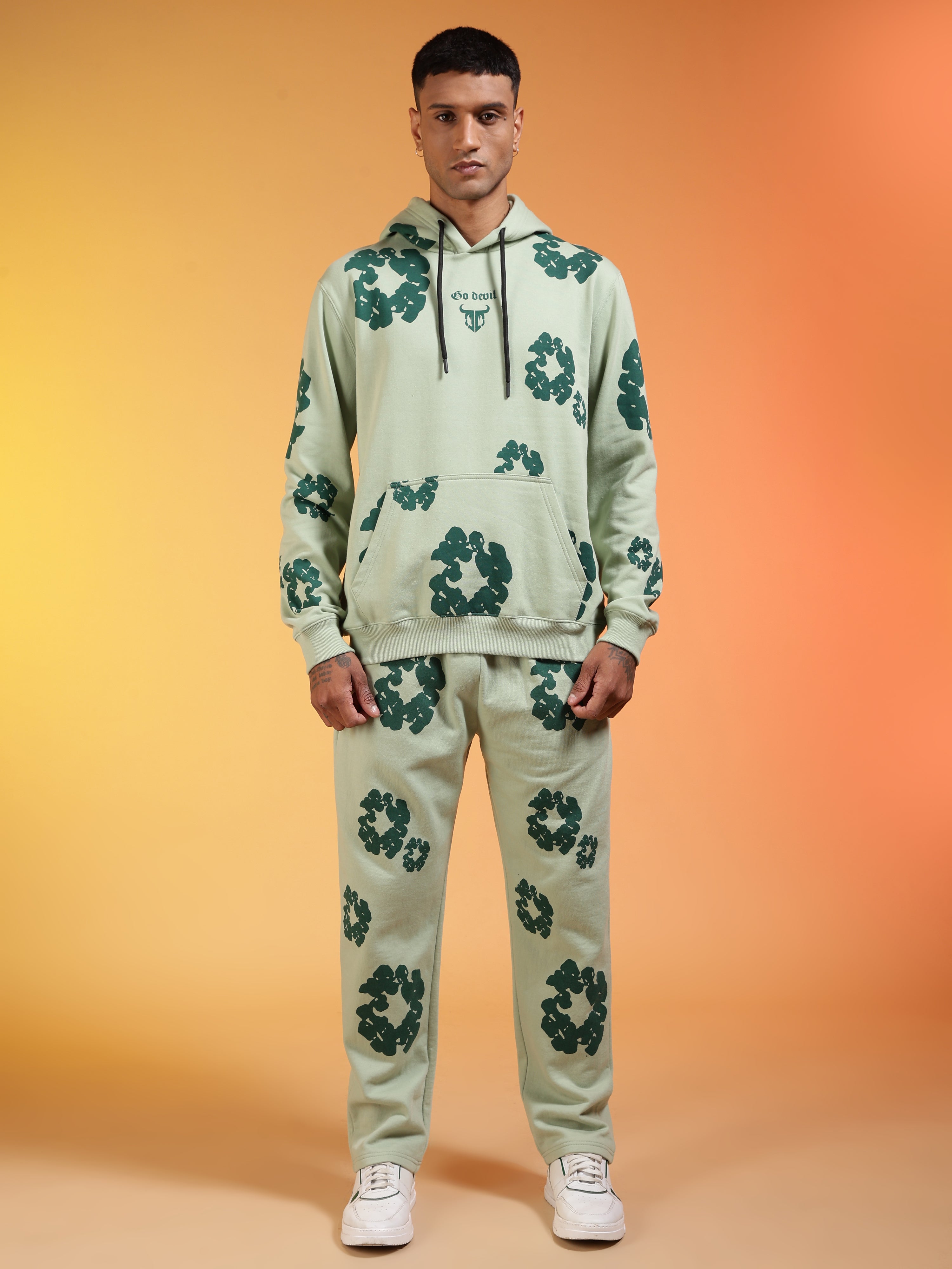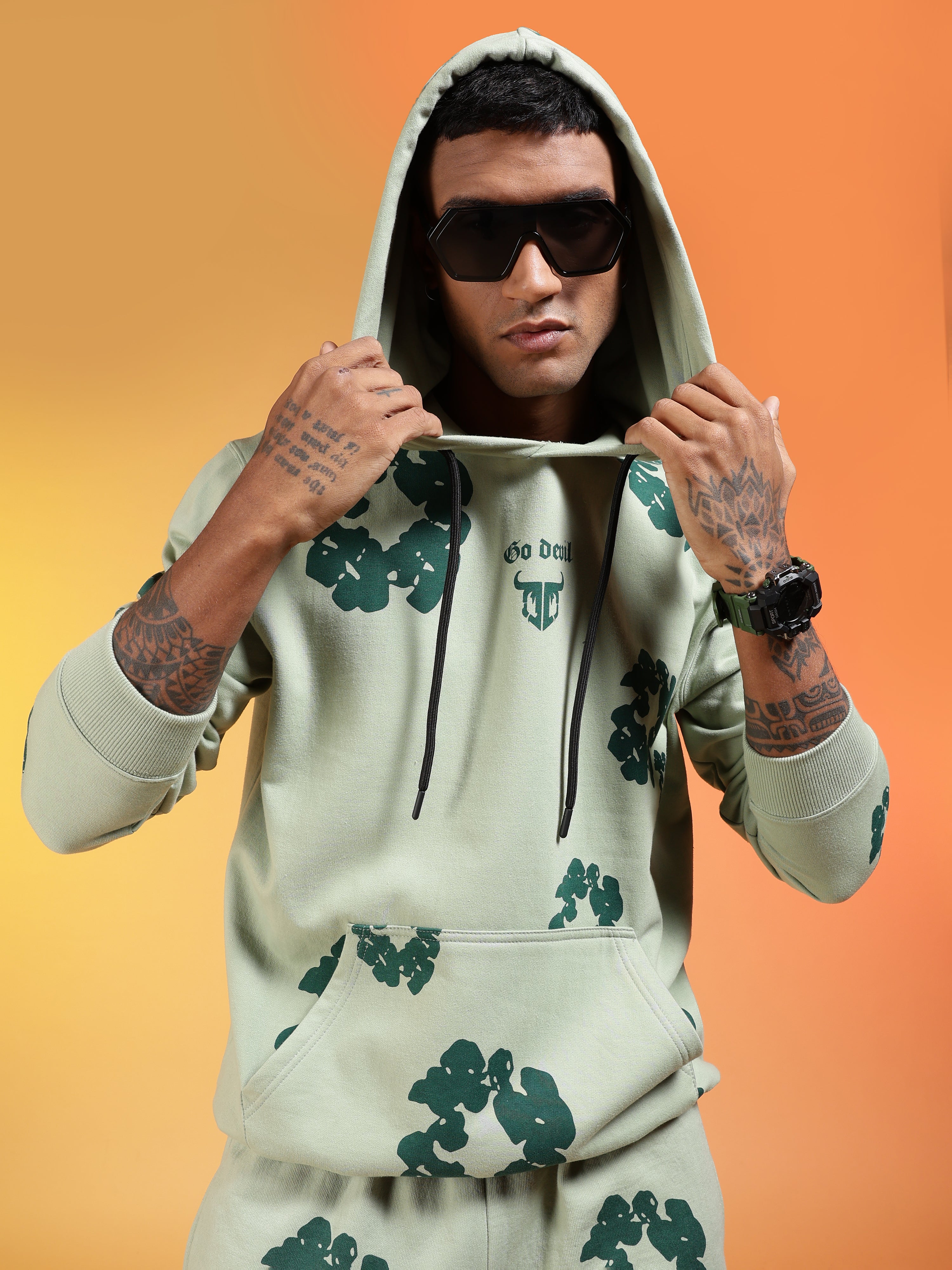 Go Devil Men’s Sage Green Floral Camo Hooded Co-ord Set
