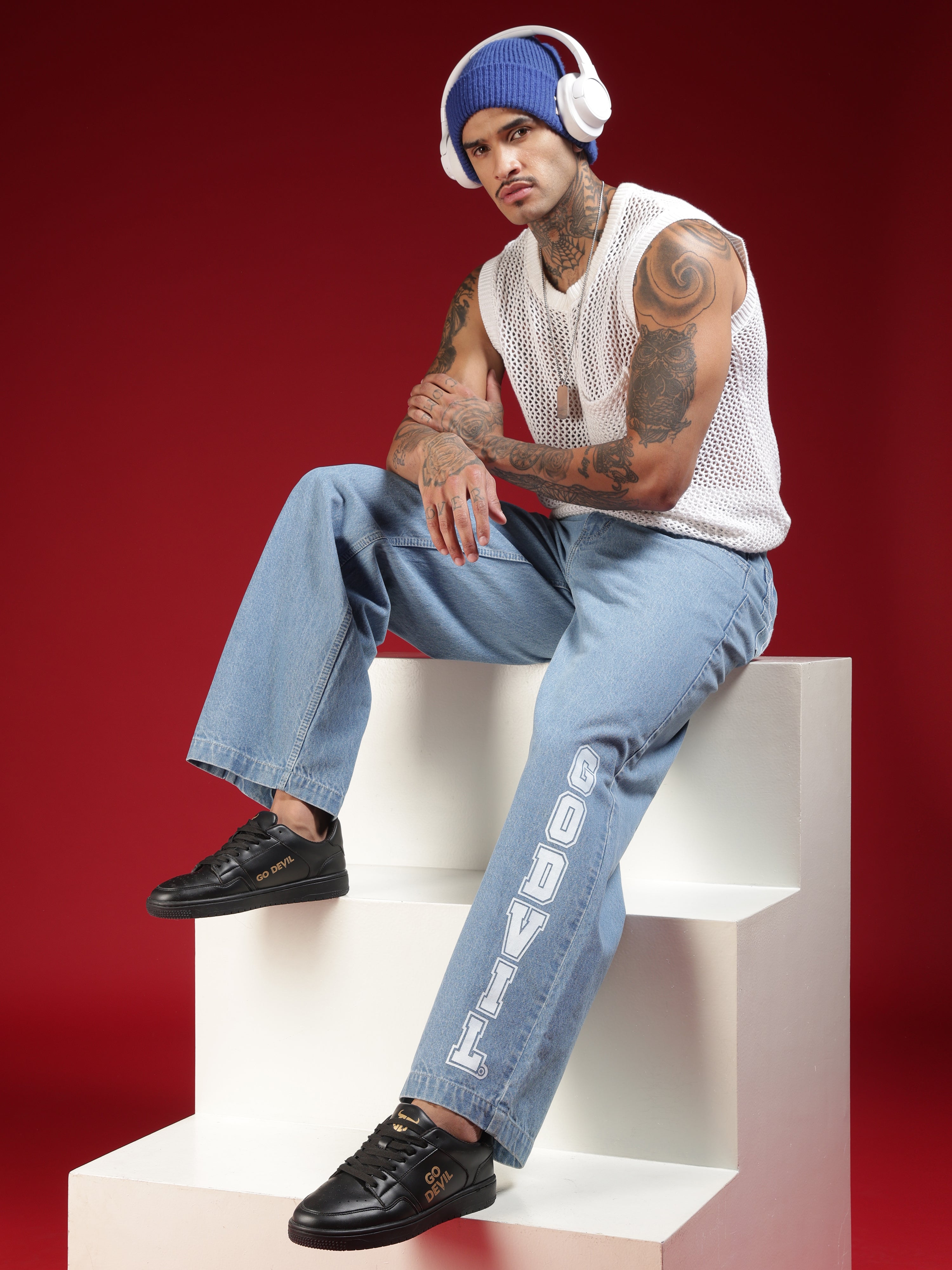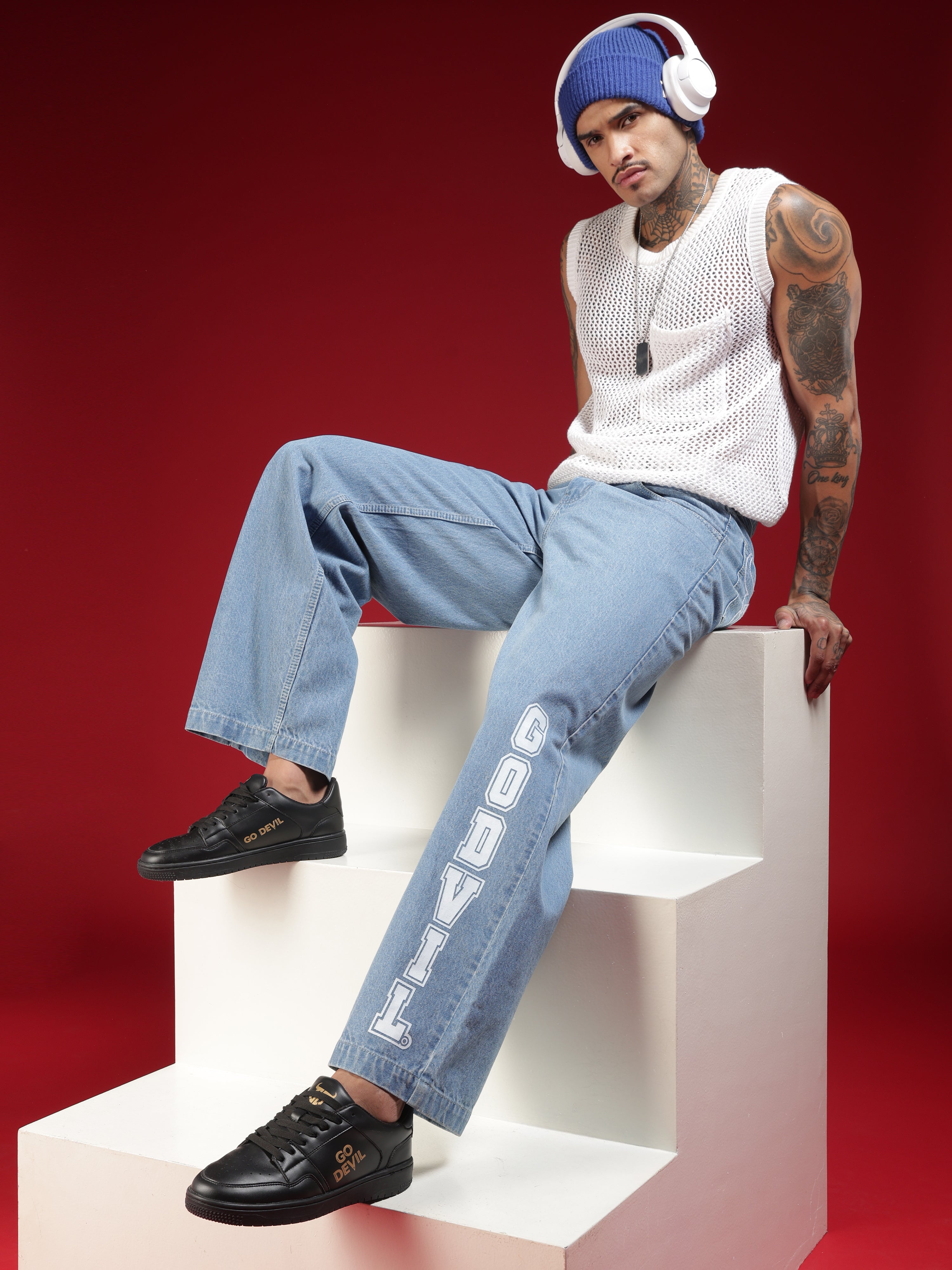 Go Devil Mens Wide Fit Light Blue Jeans