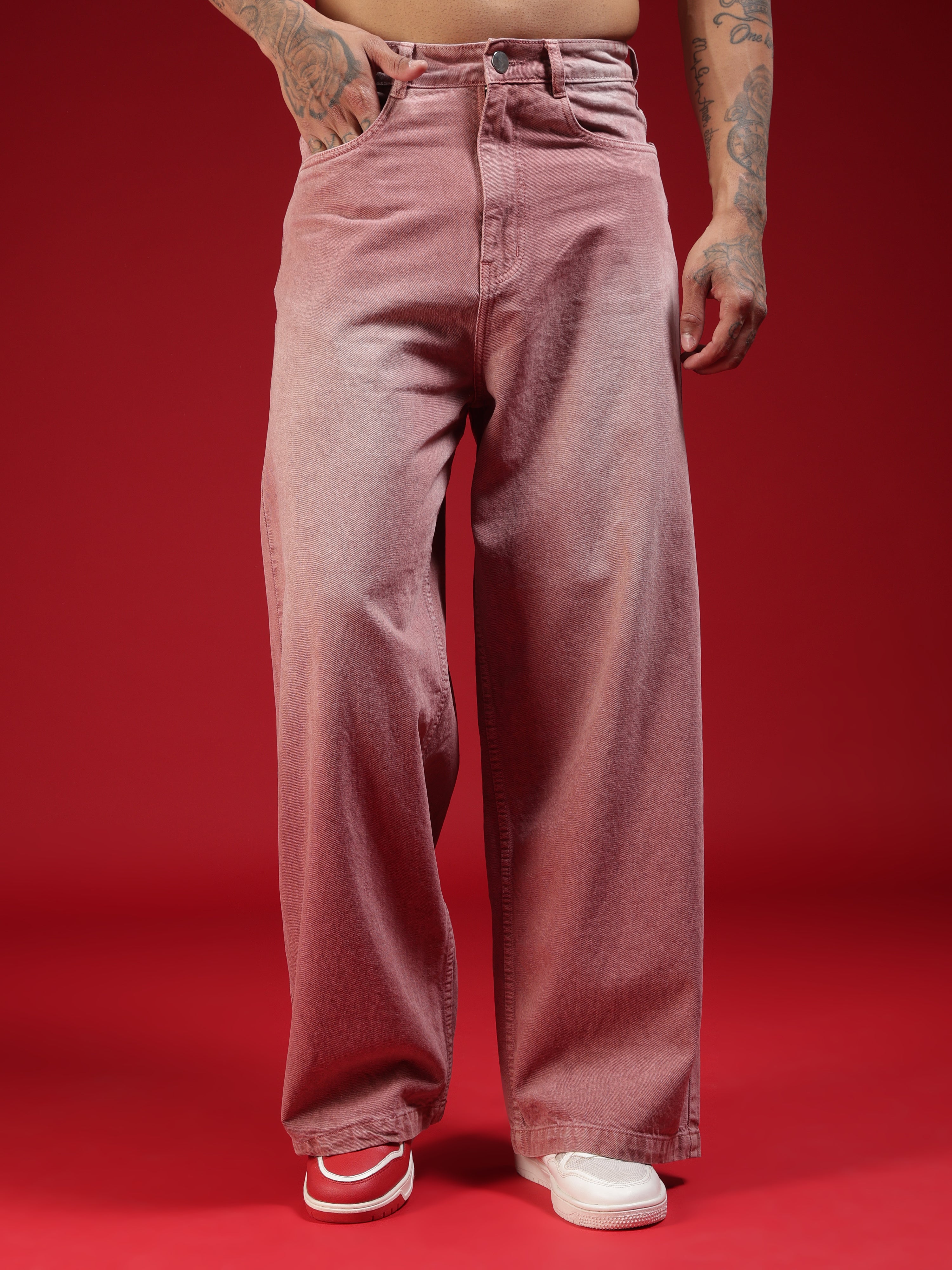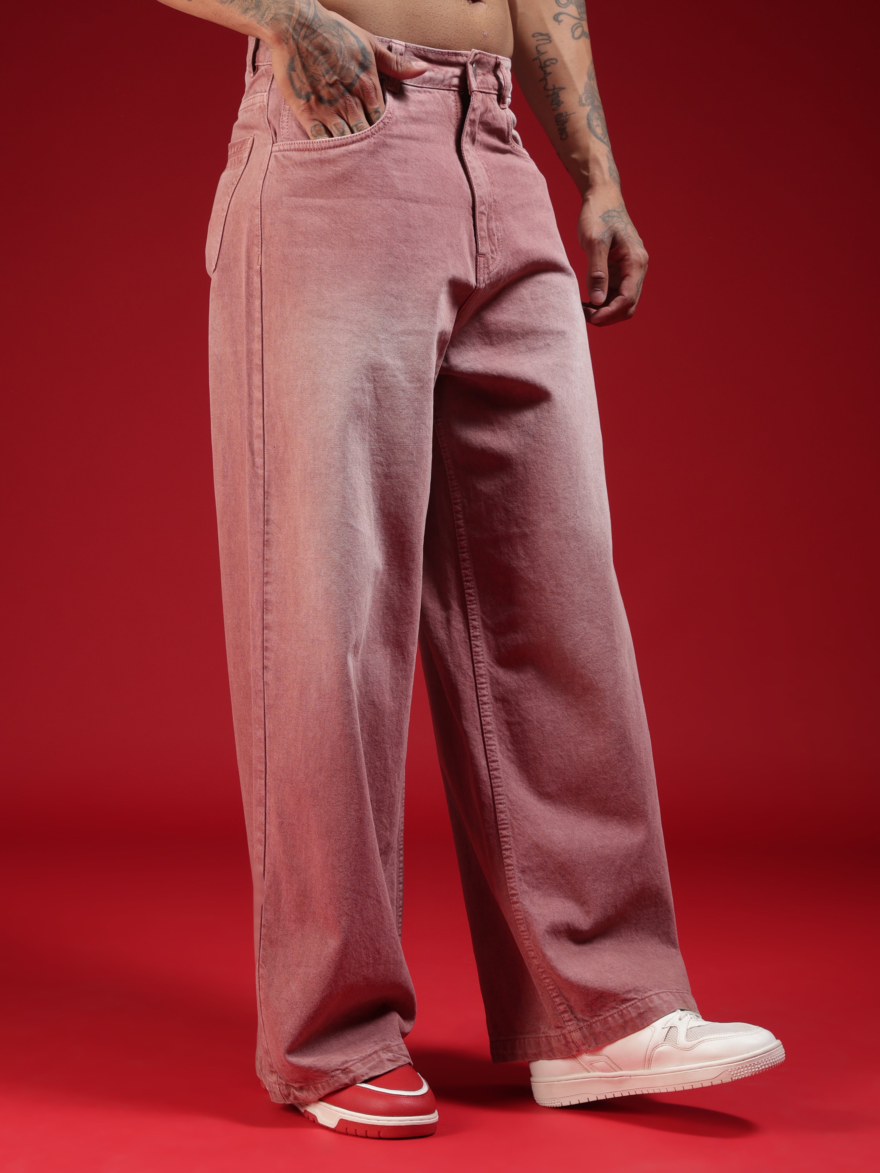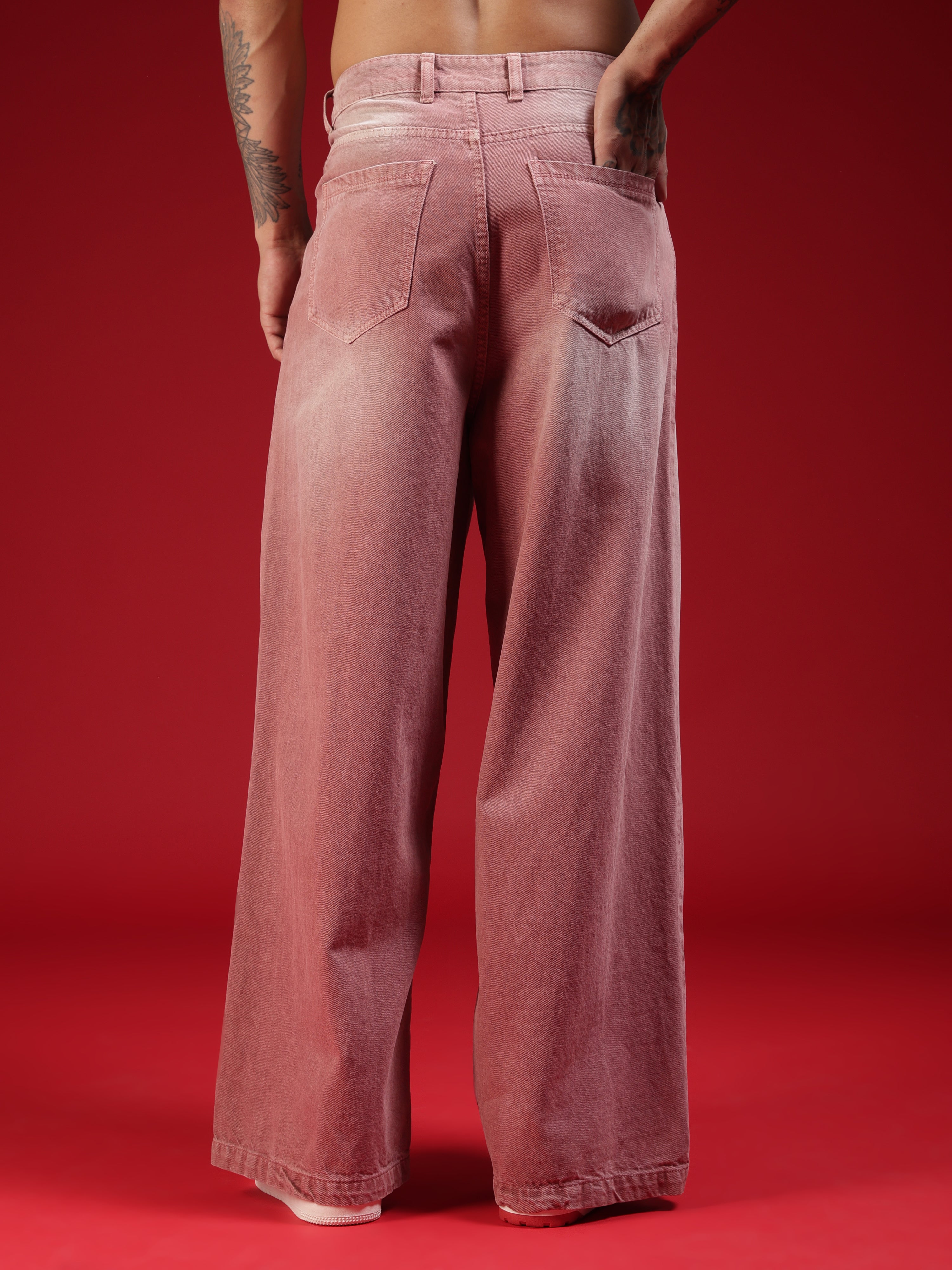 Go Devil Mens Wide Fit Soft Pink Jeans