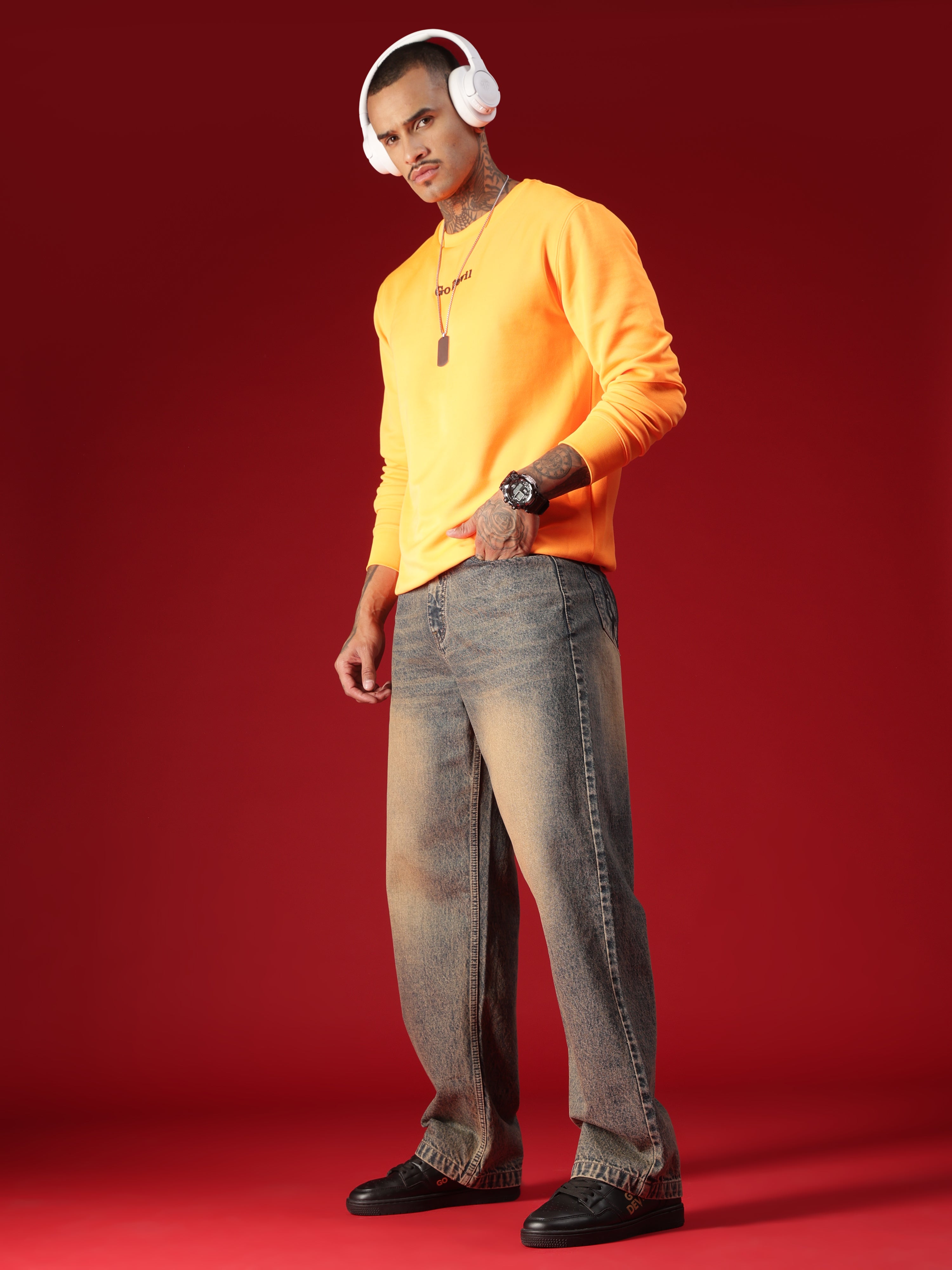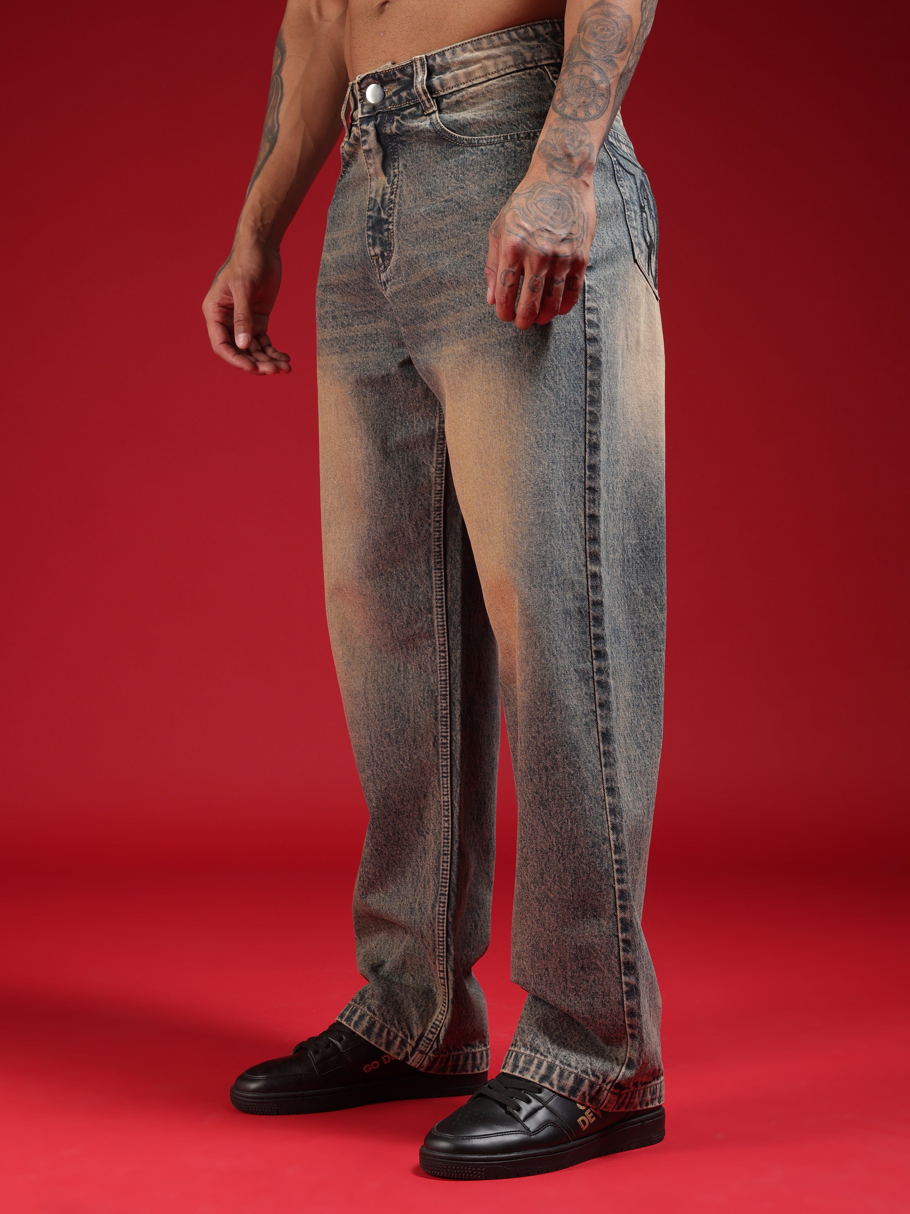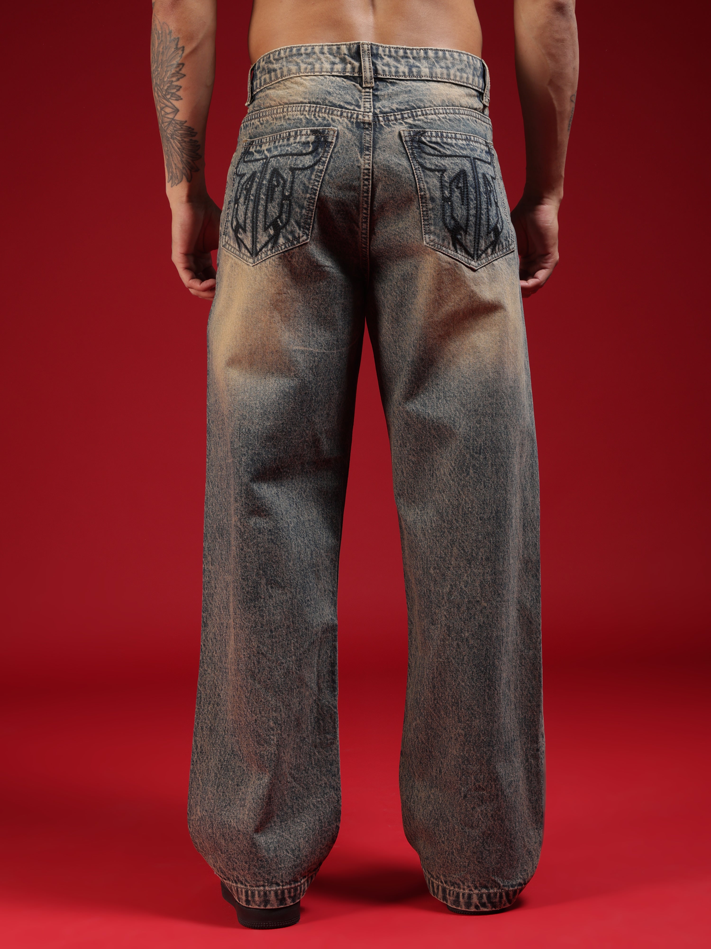 Go Devil Men's Washed Denim Baggy Jeans