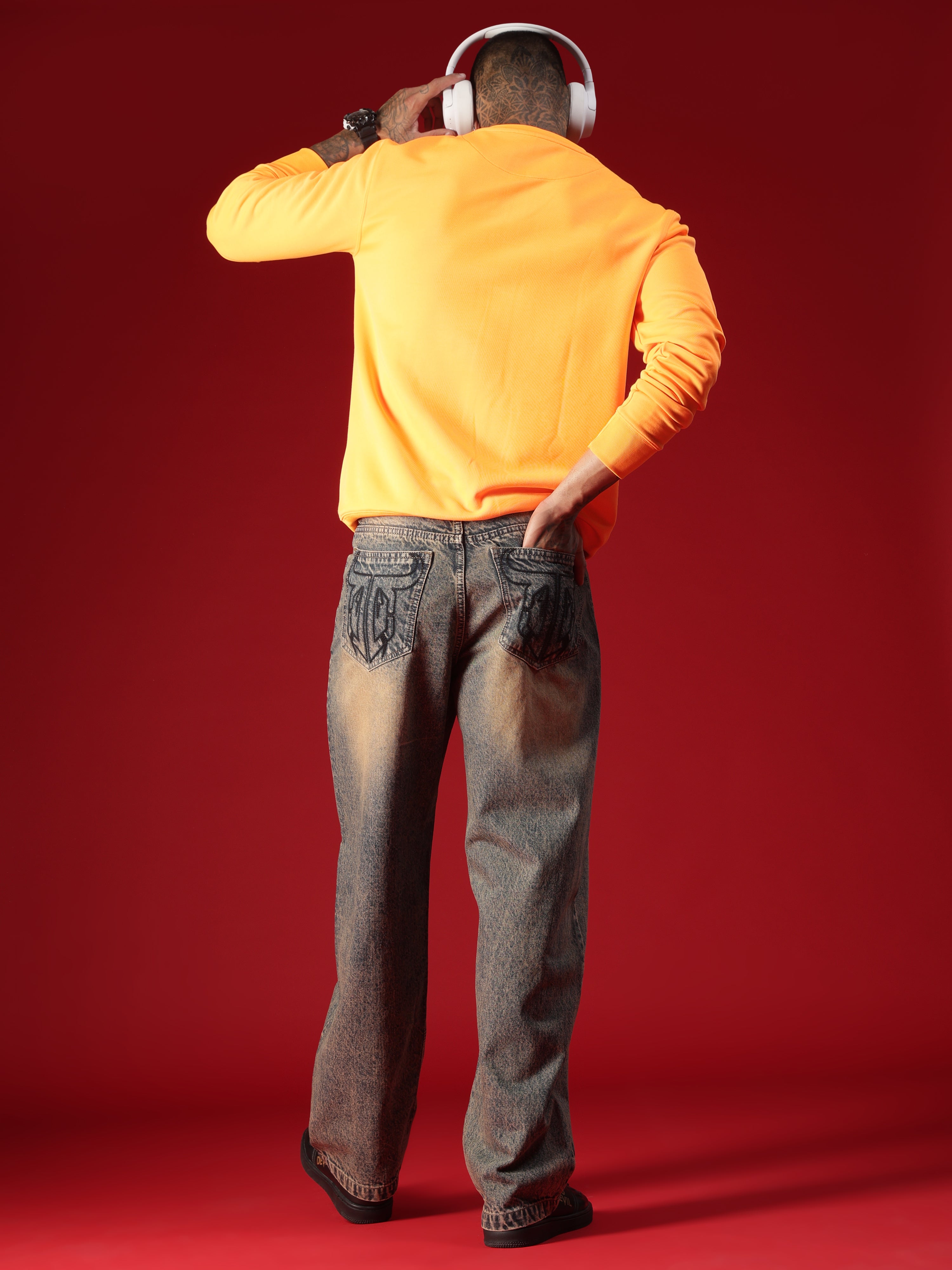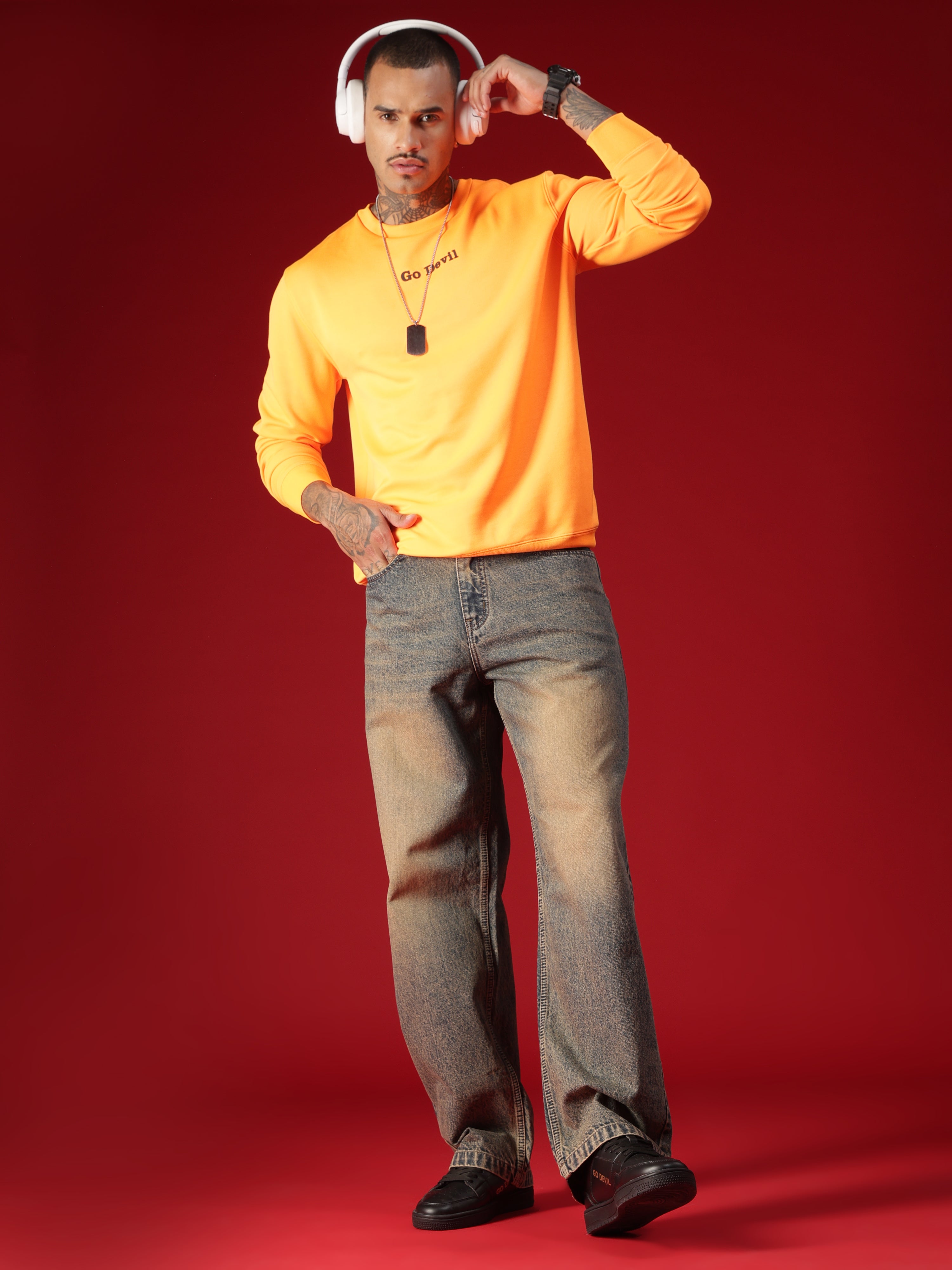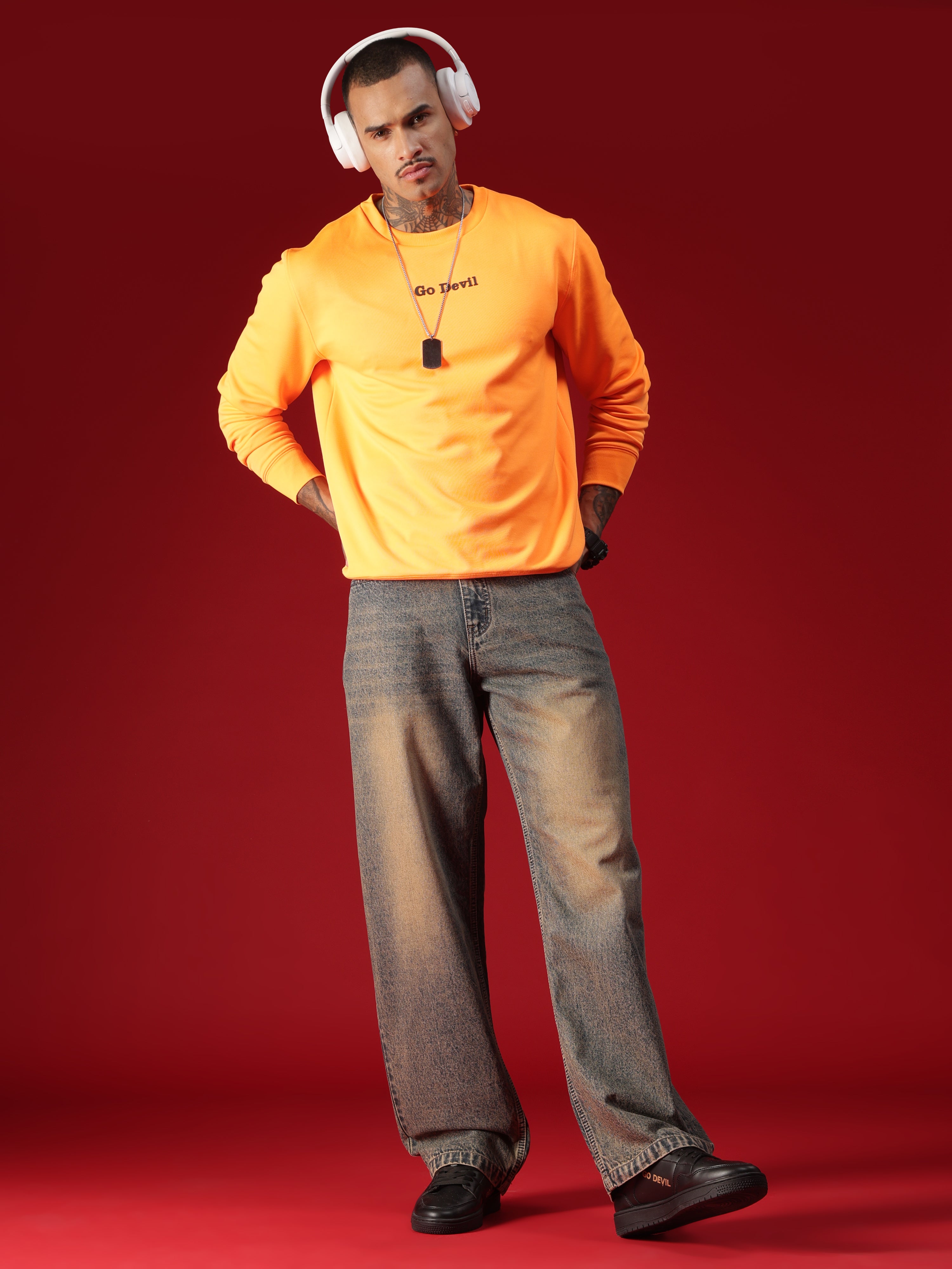 Go Devil Men's Washed Denim Baggy Jeans
