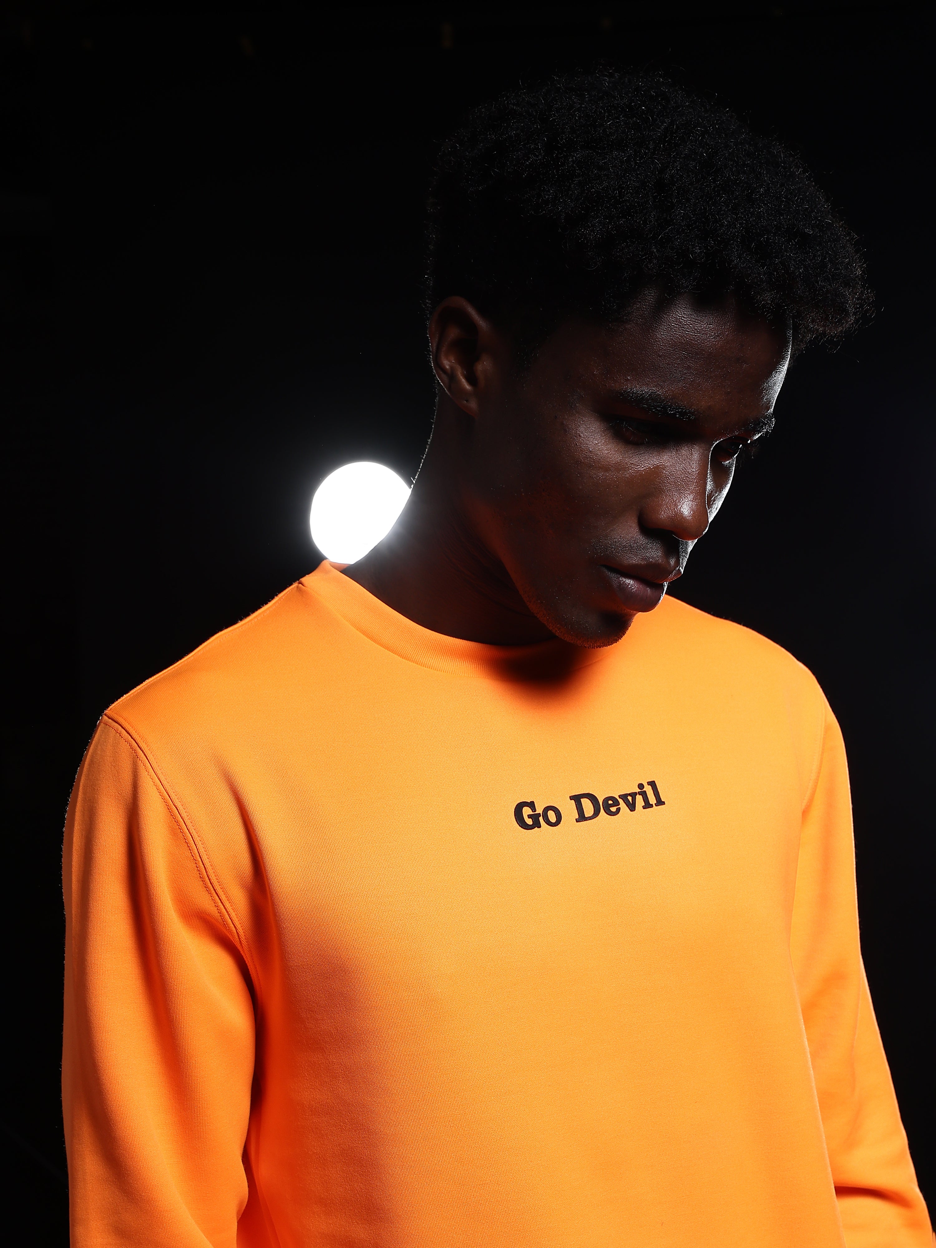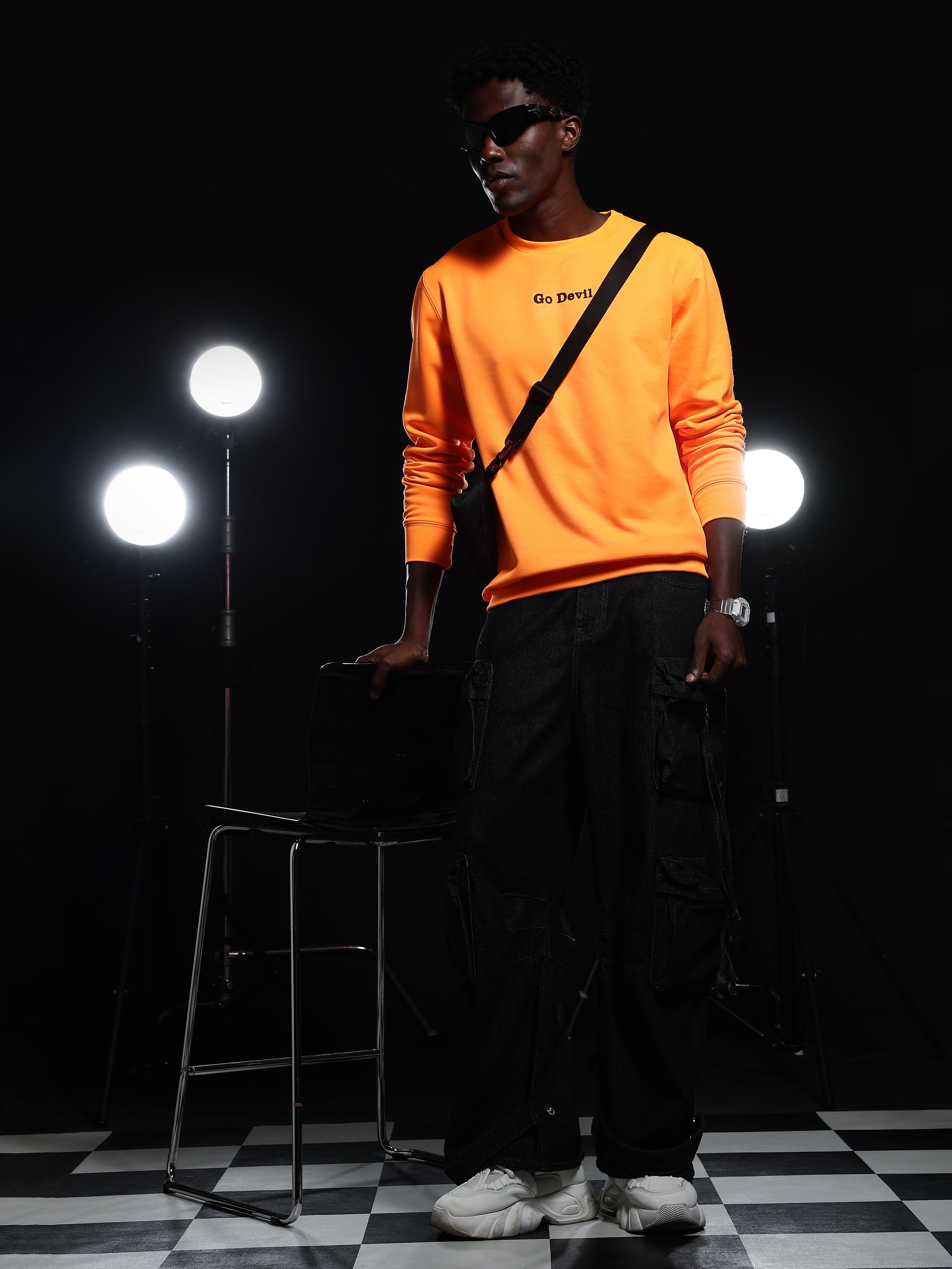 Go Devil Printed Solid Orange Sweatshirt For Men