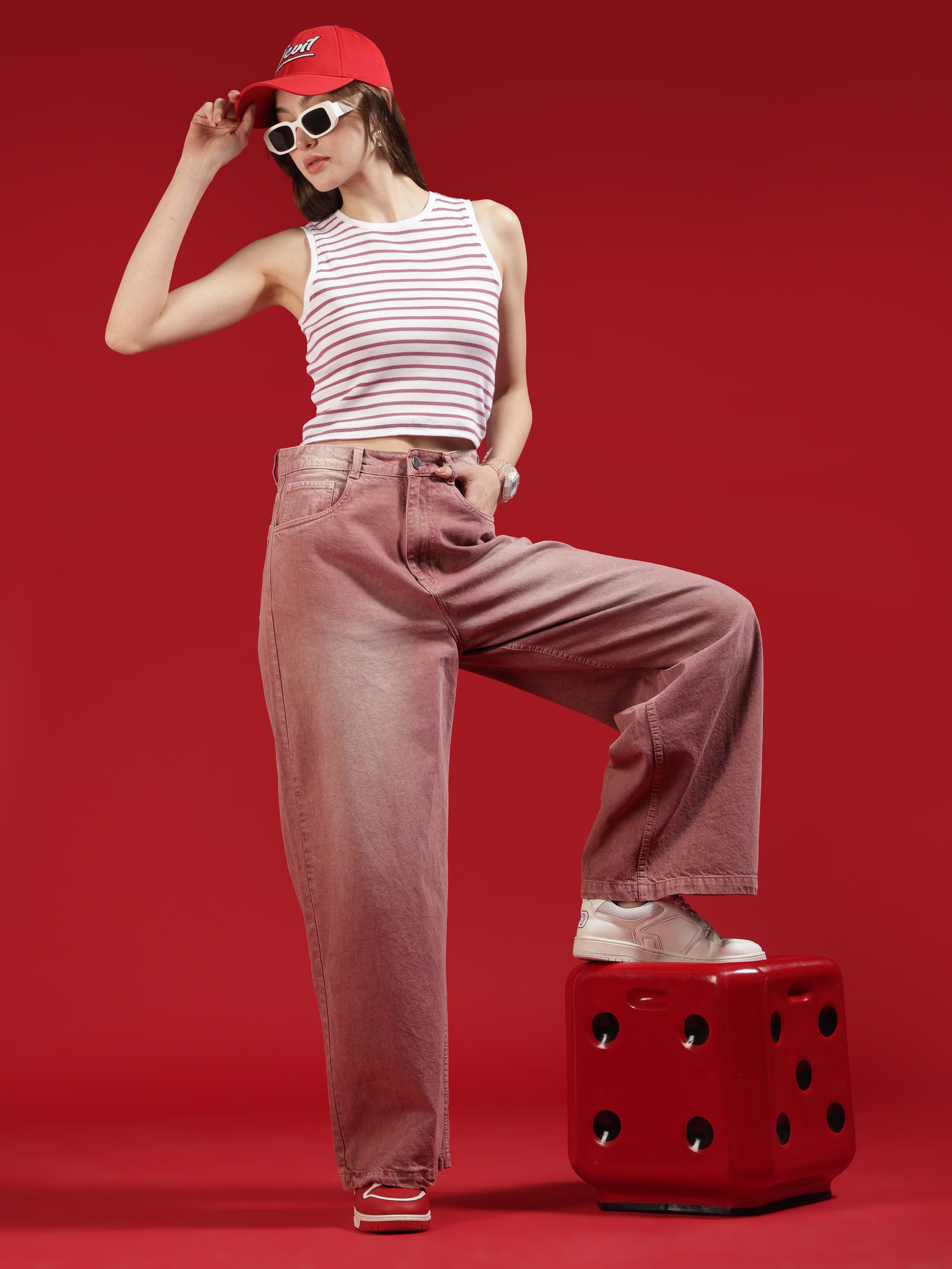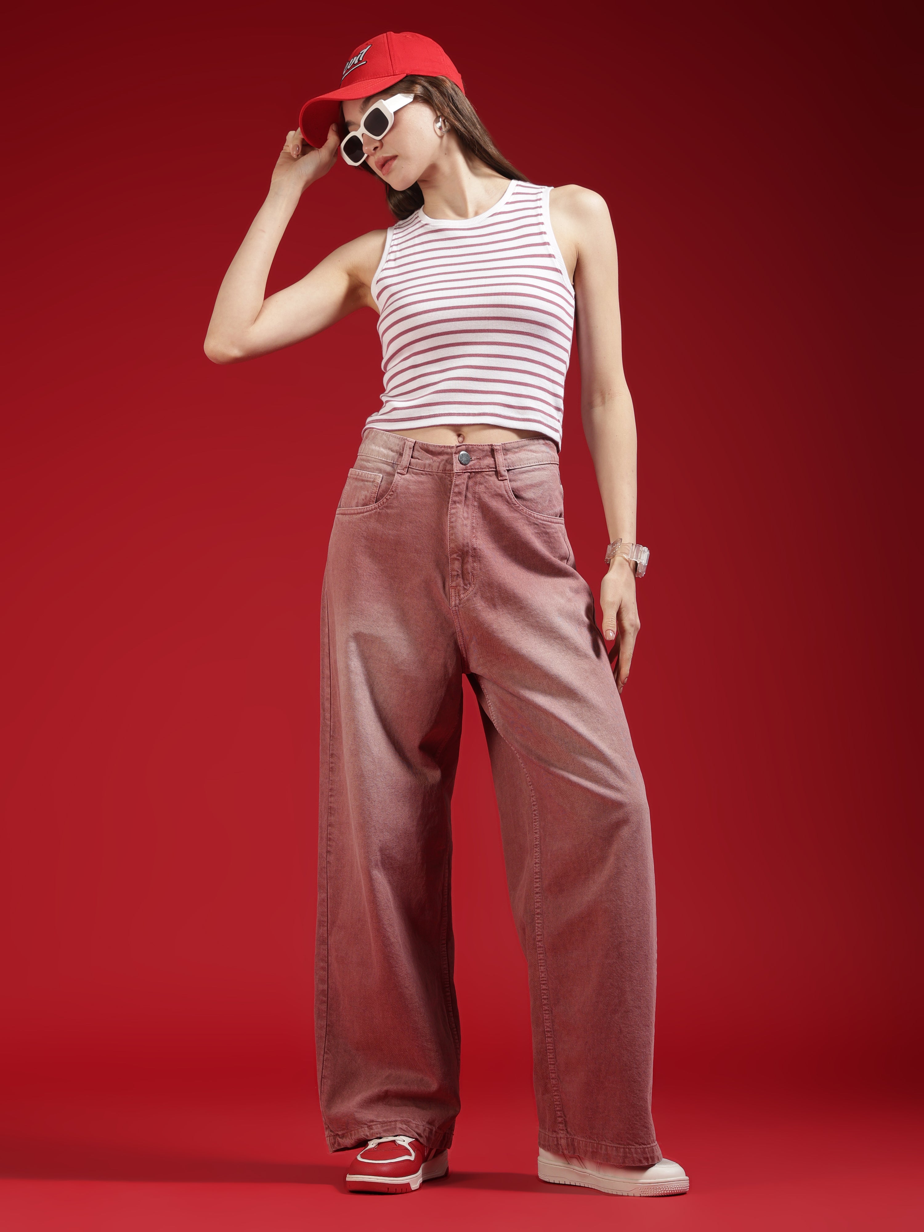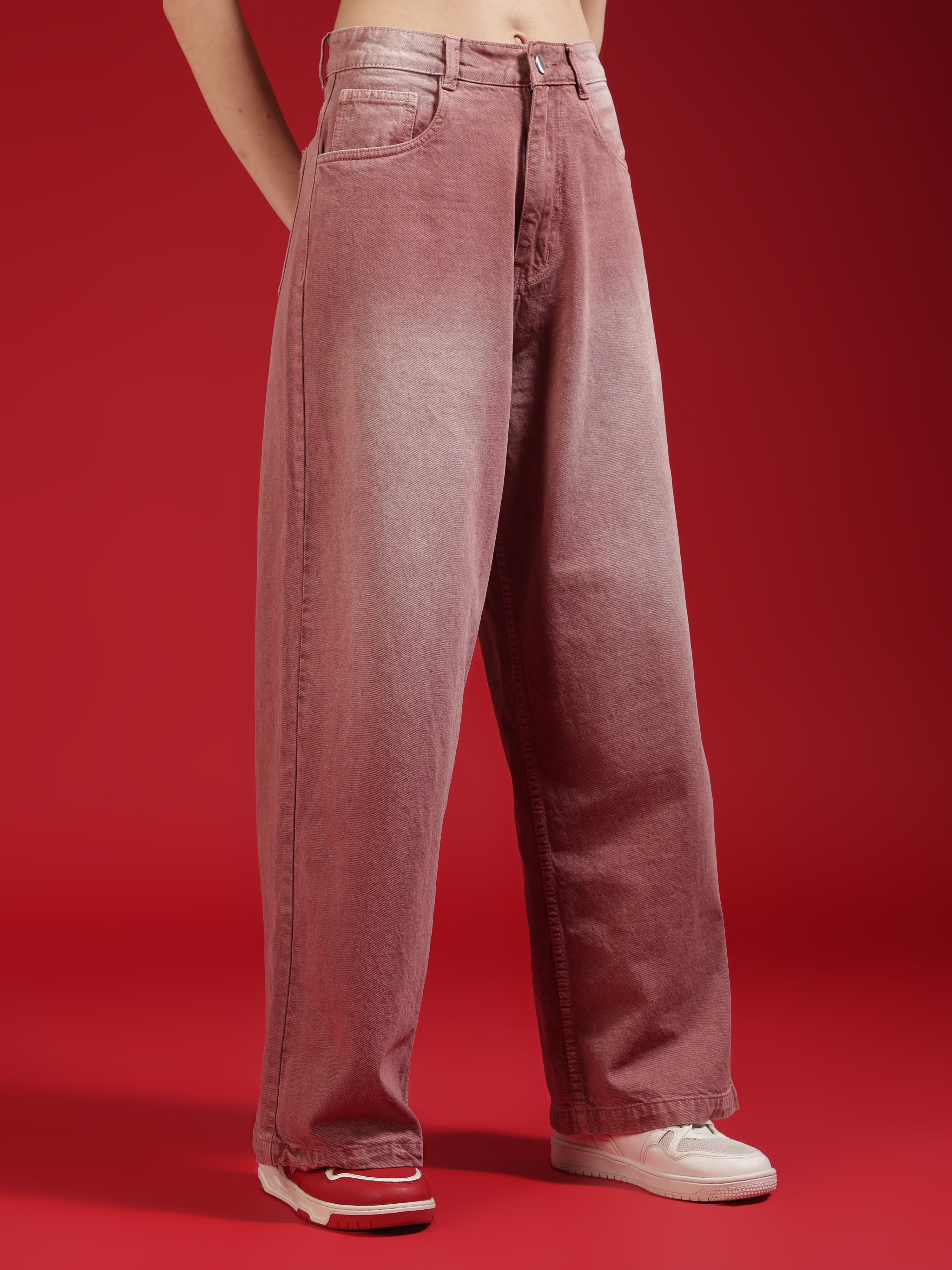 Go Devil Women Dusty Pink Wide Leg Jeans