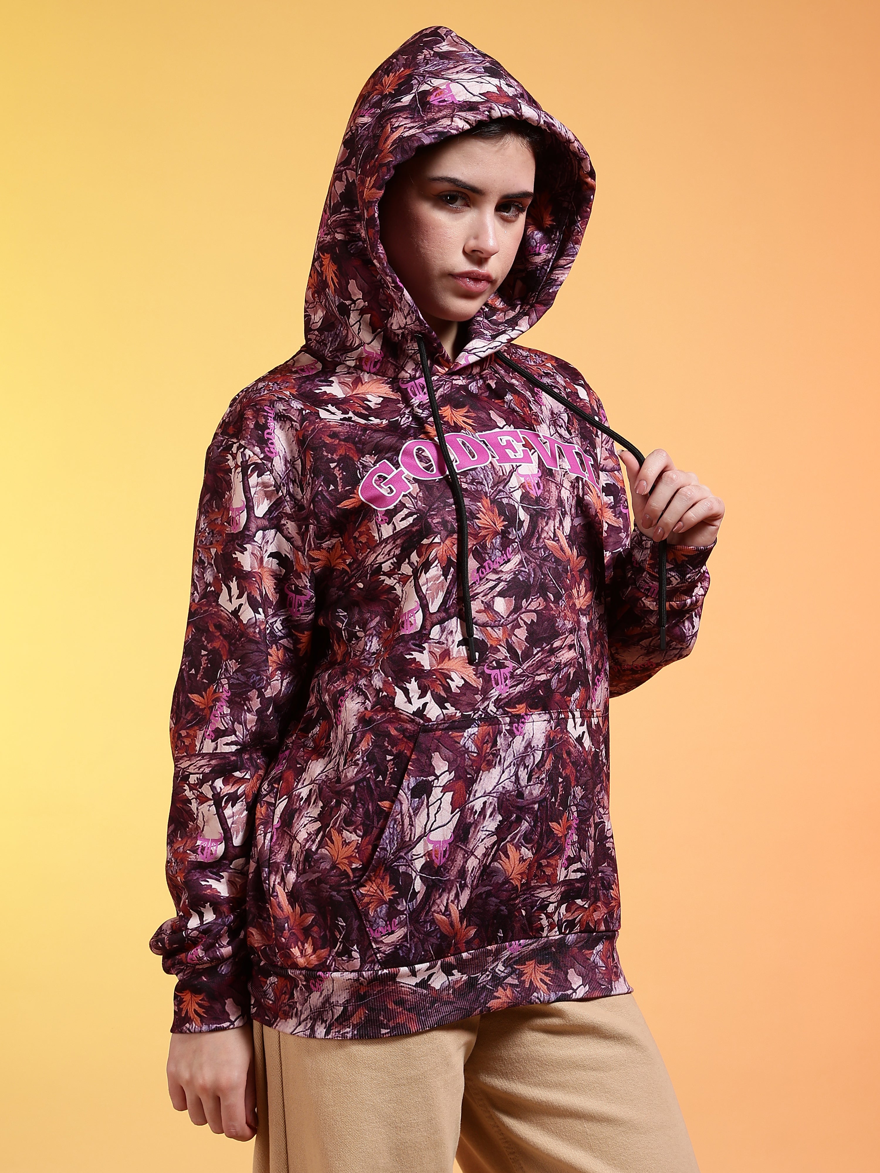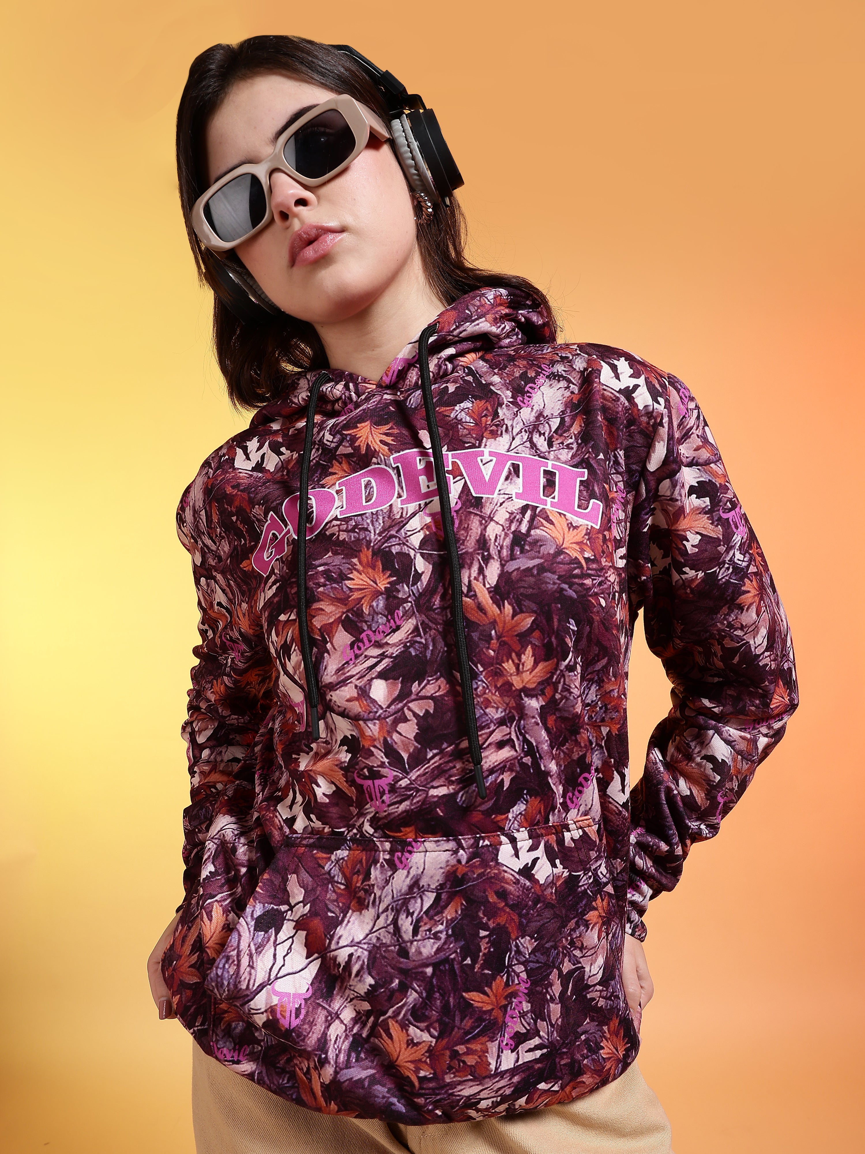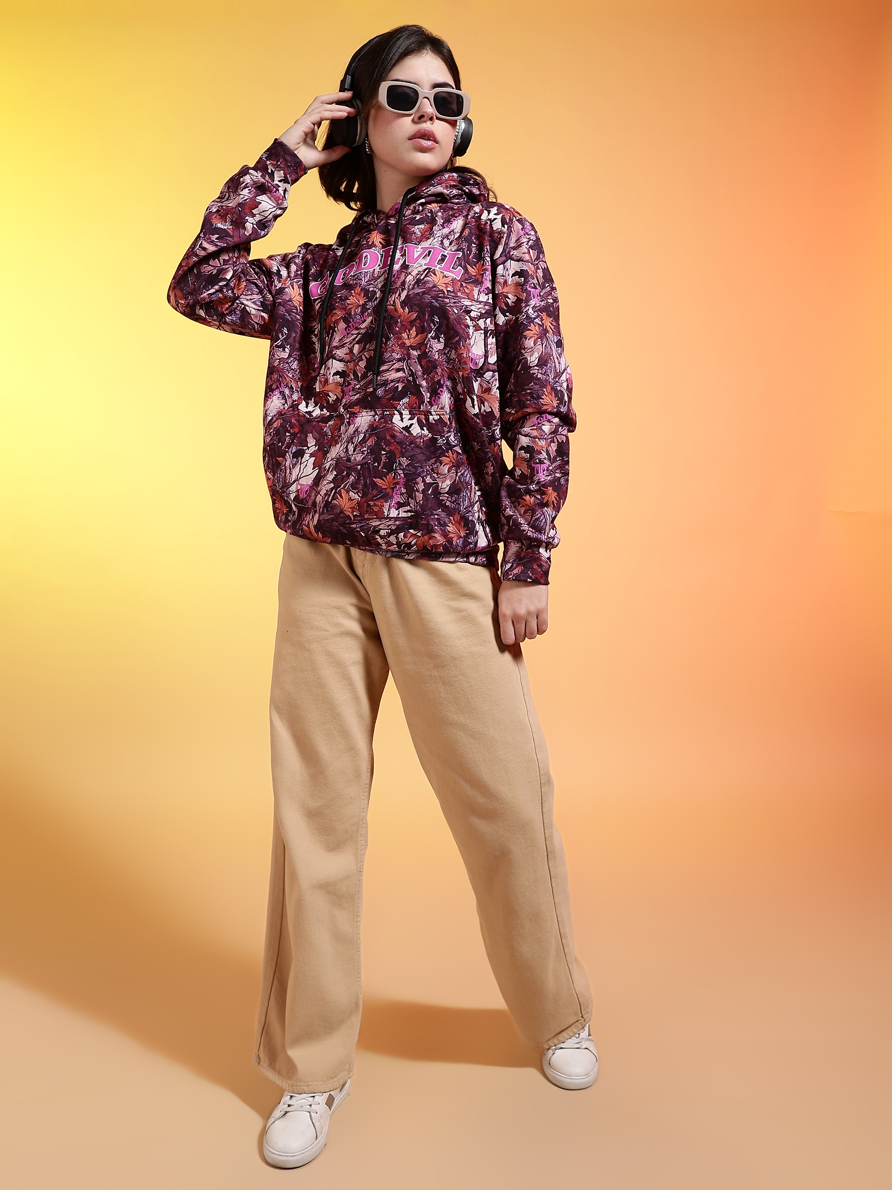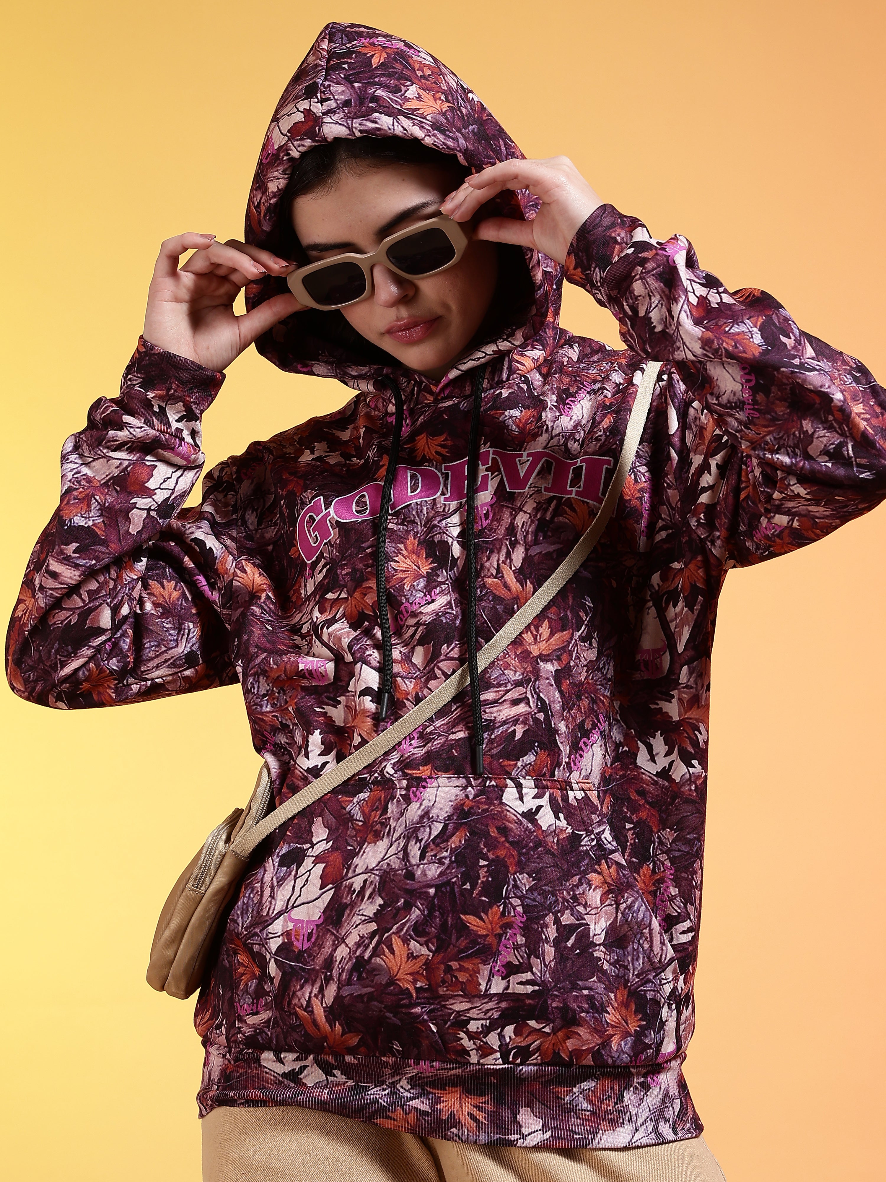 Go Devil Womens Autumn Leaf Print Hoodie
