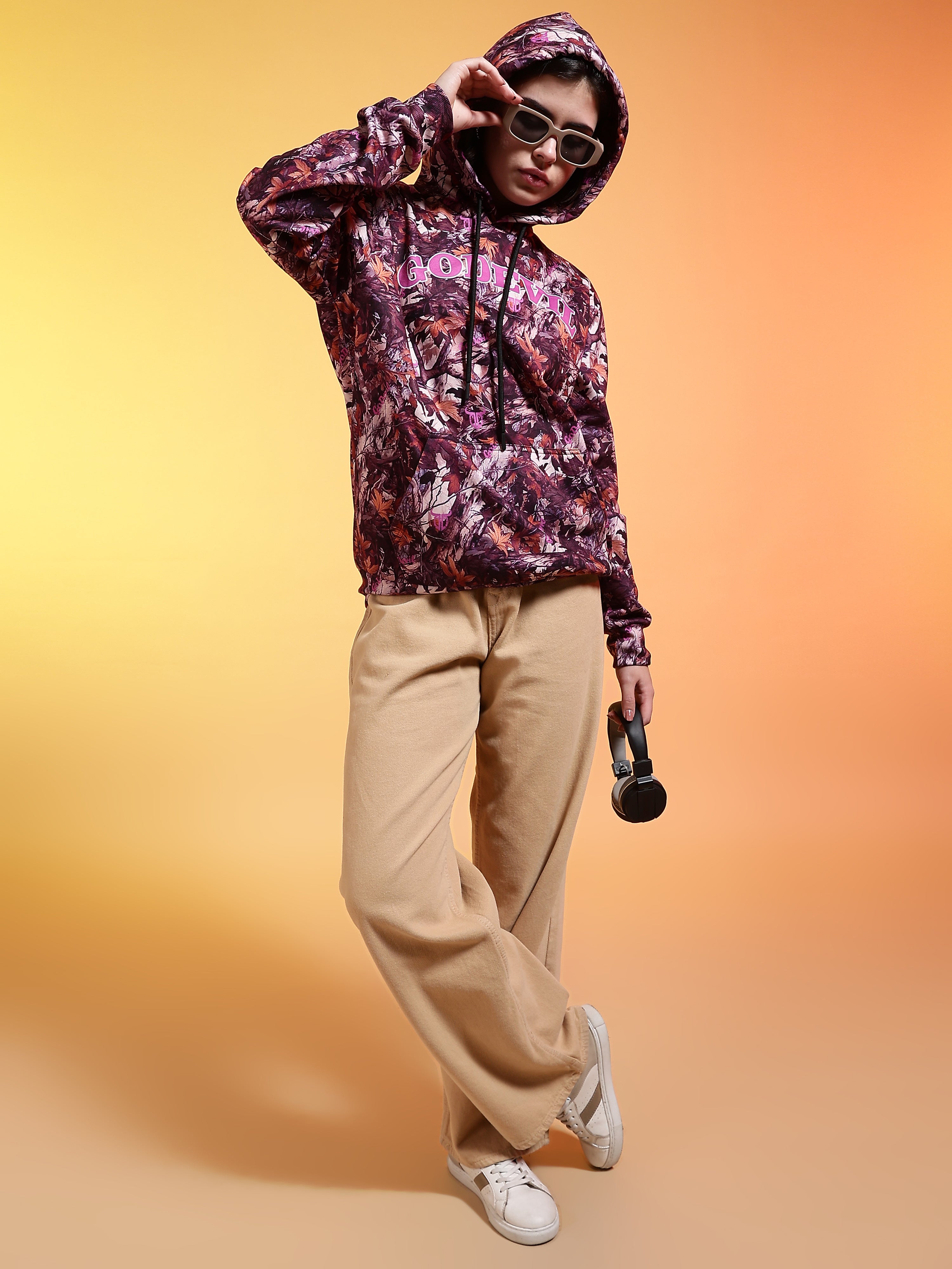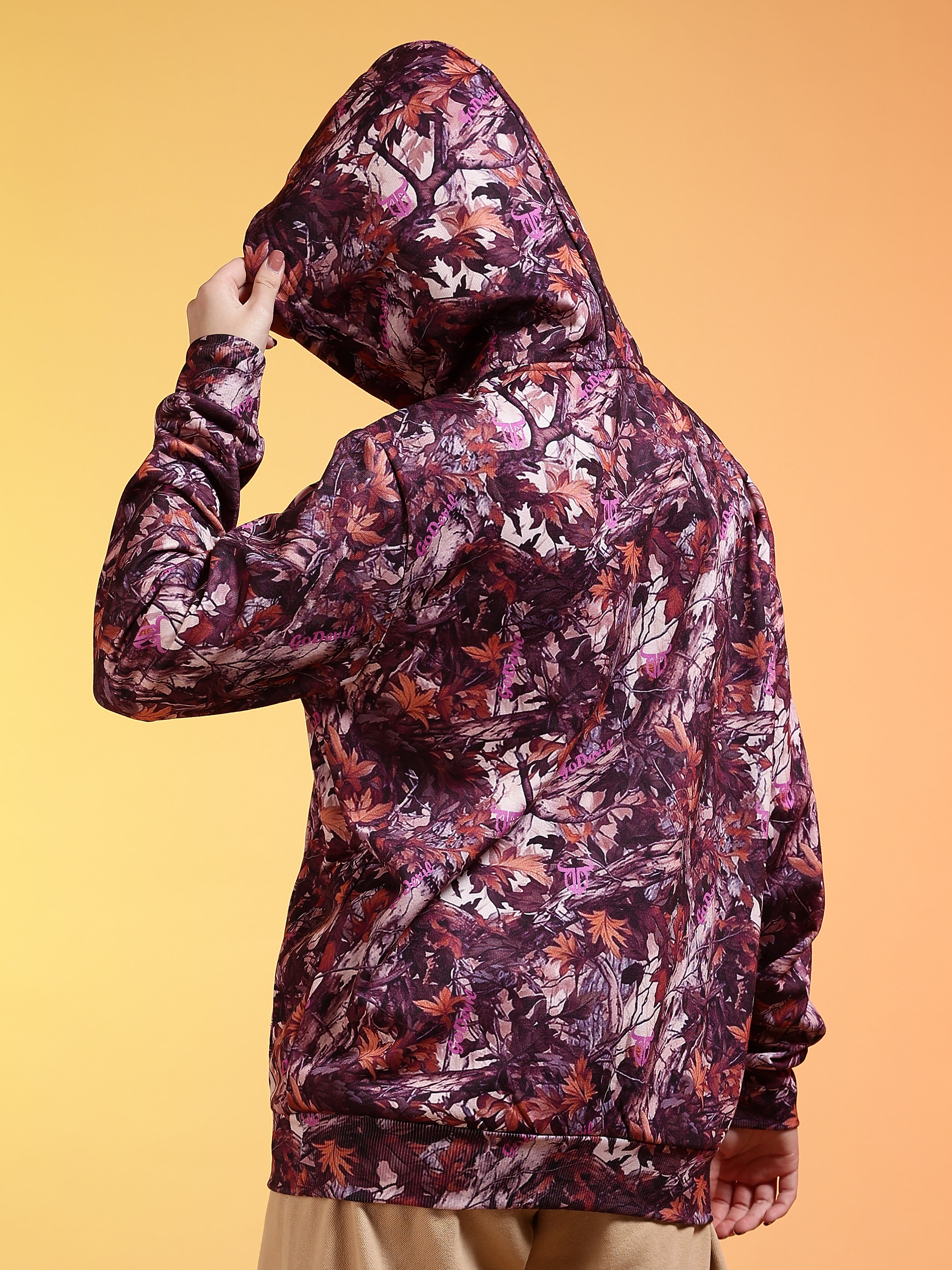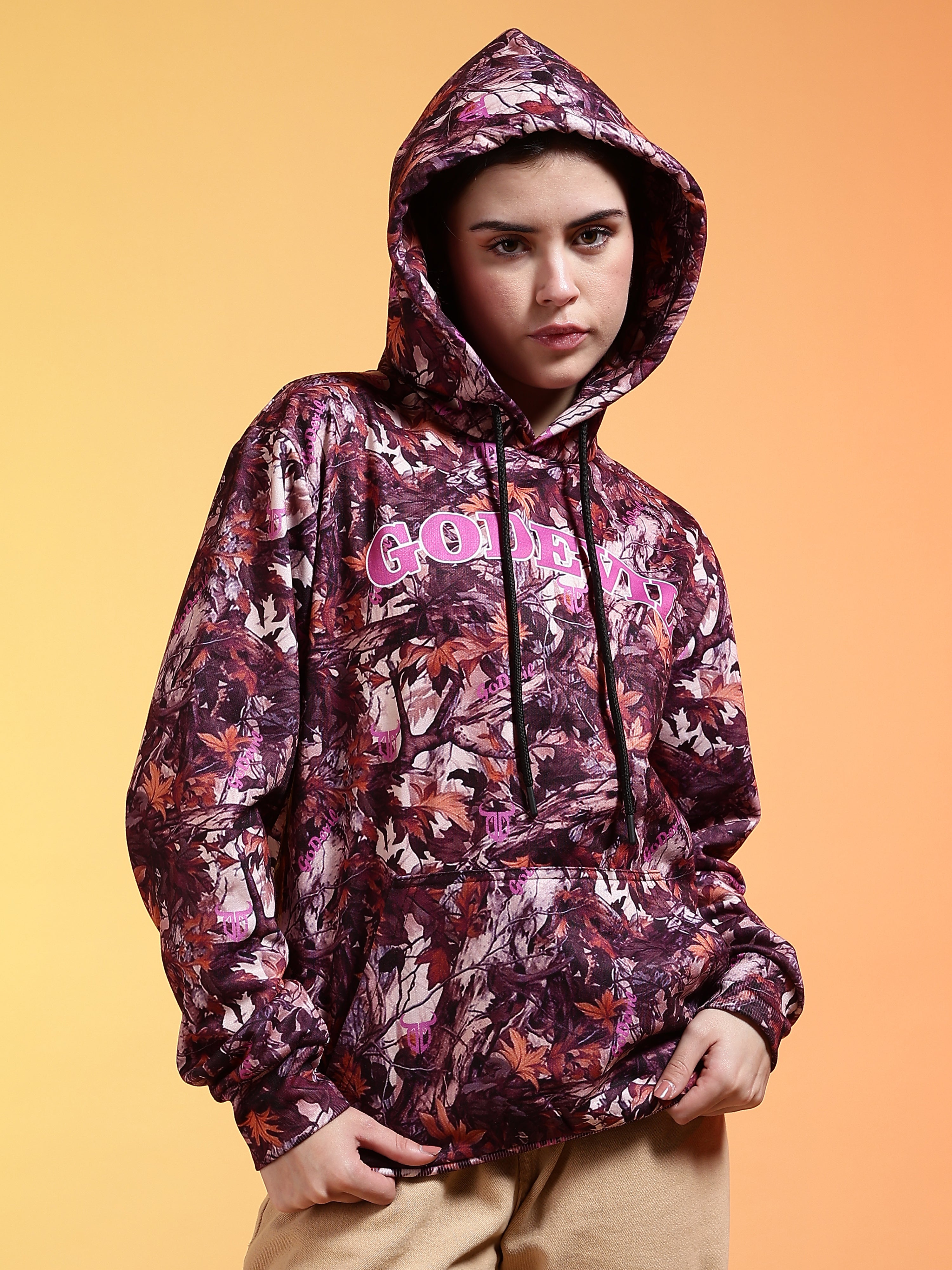 Go Devil Womens Autumn Leaf Print Hoodie