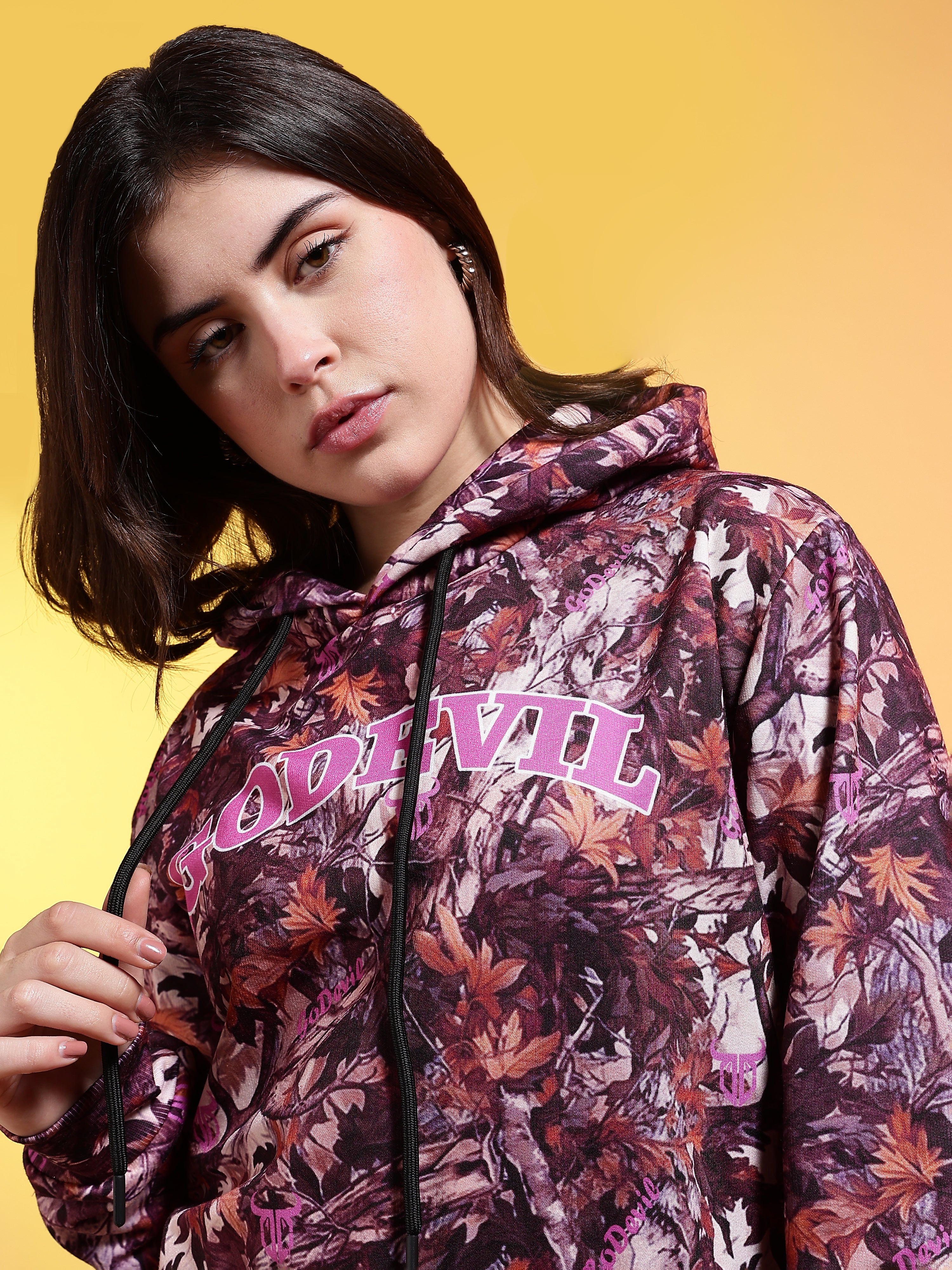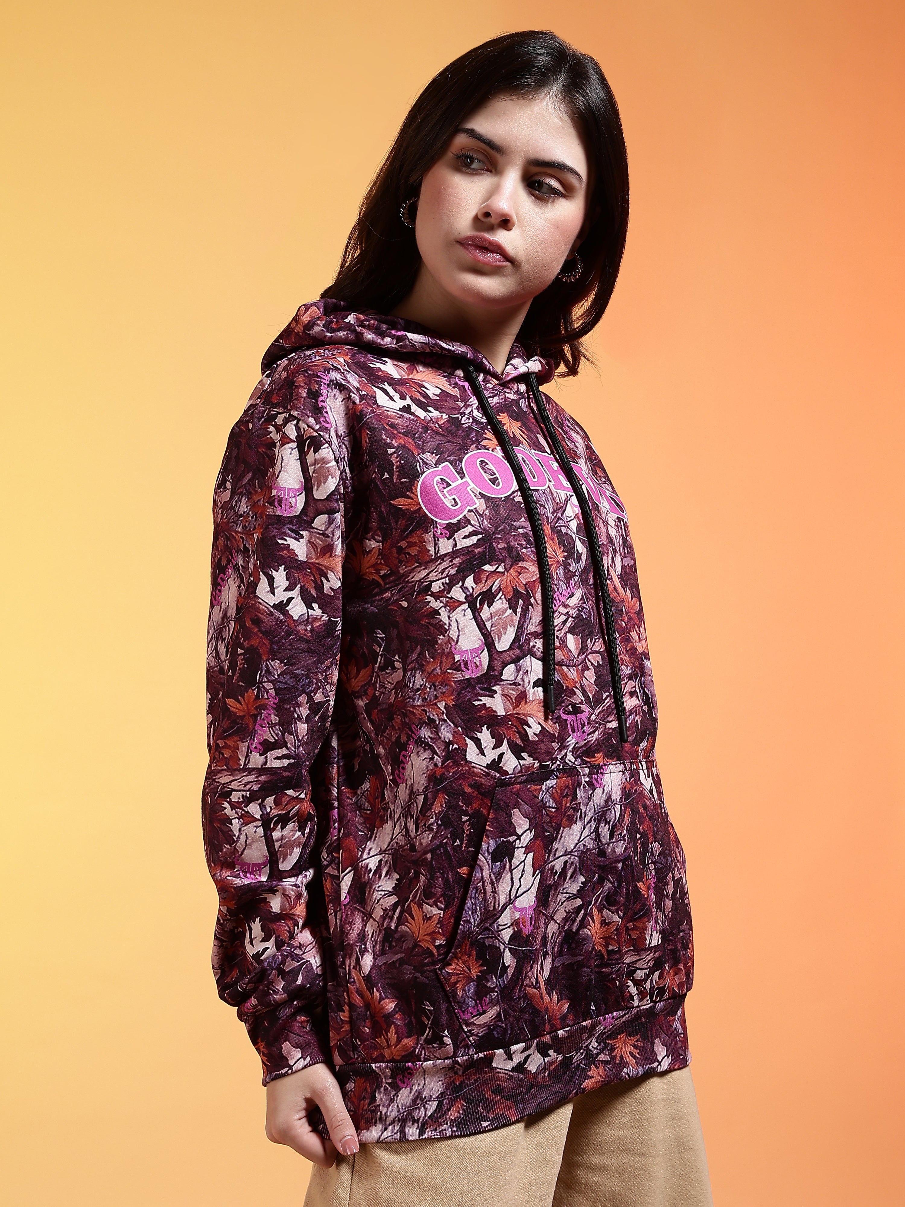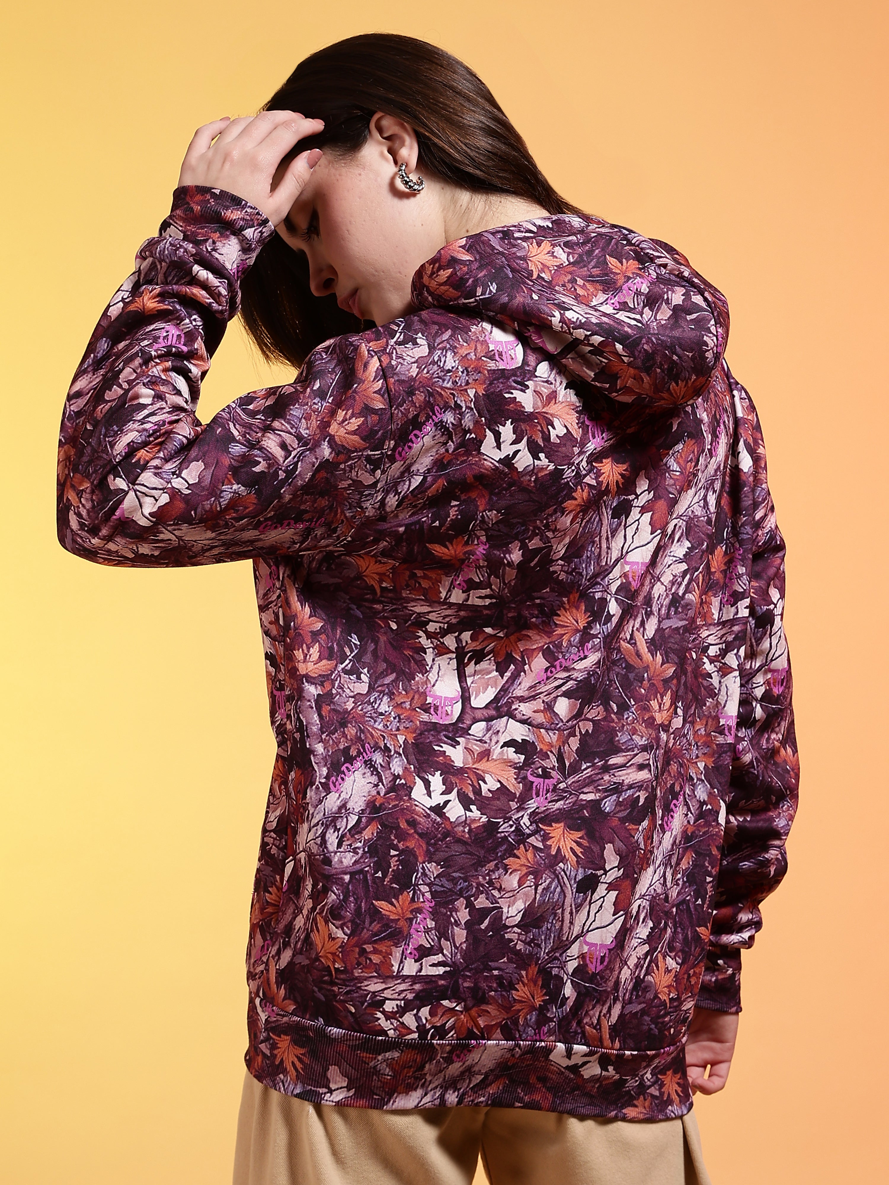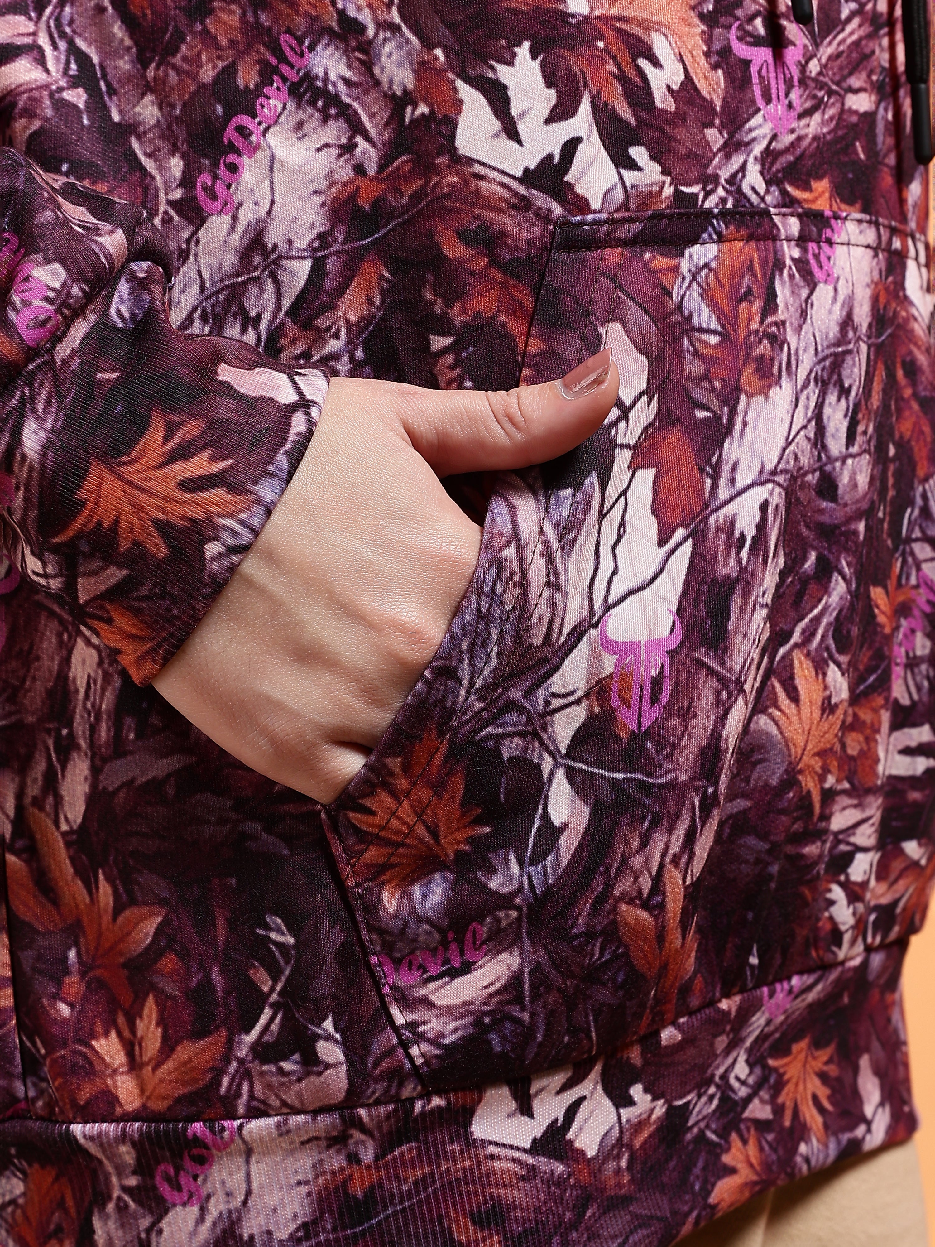 Go Devil Womens Autumn Leaf Print Hoodie