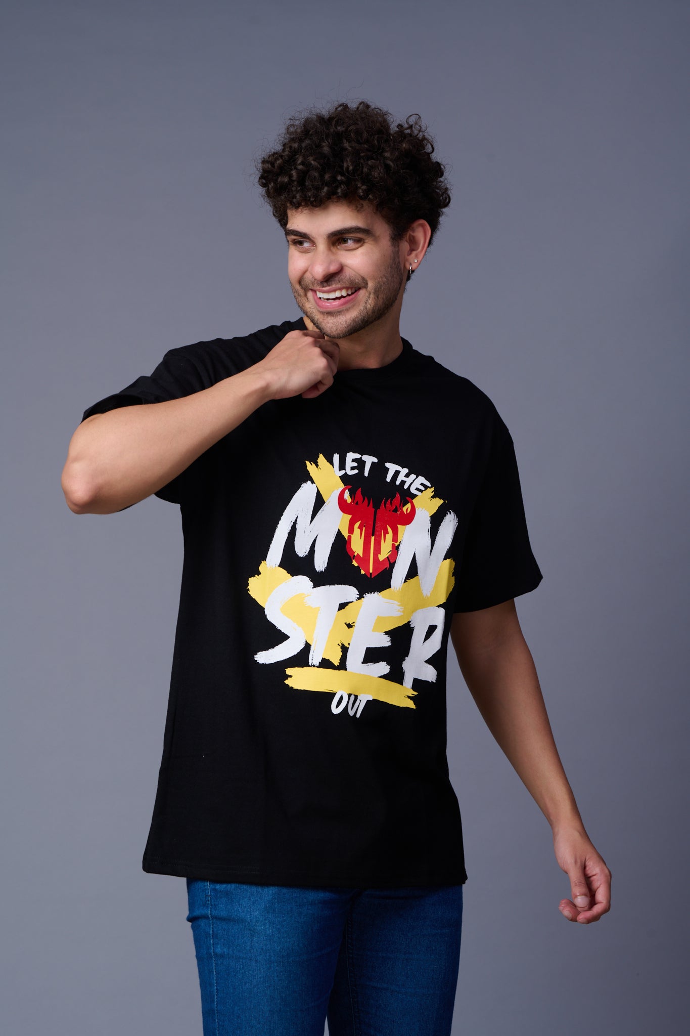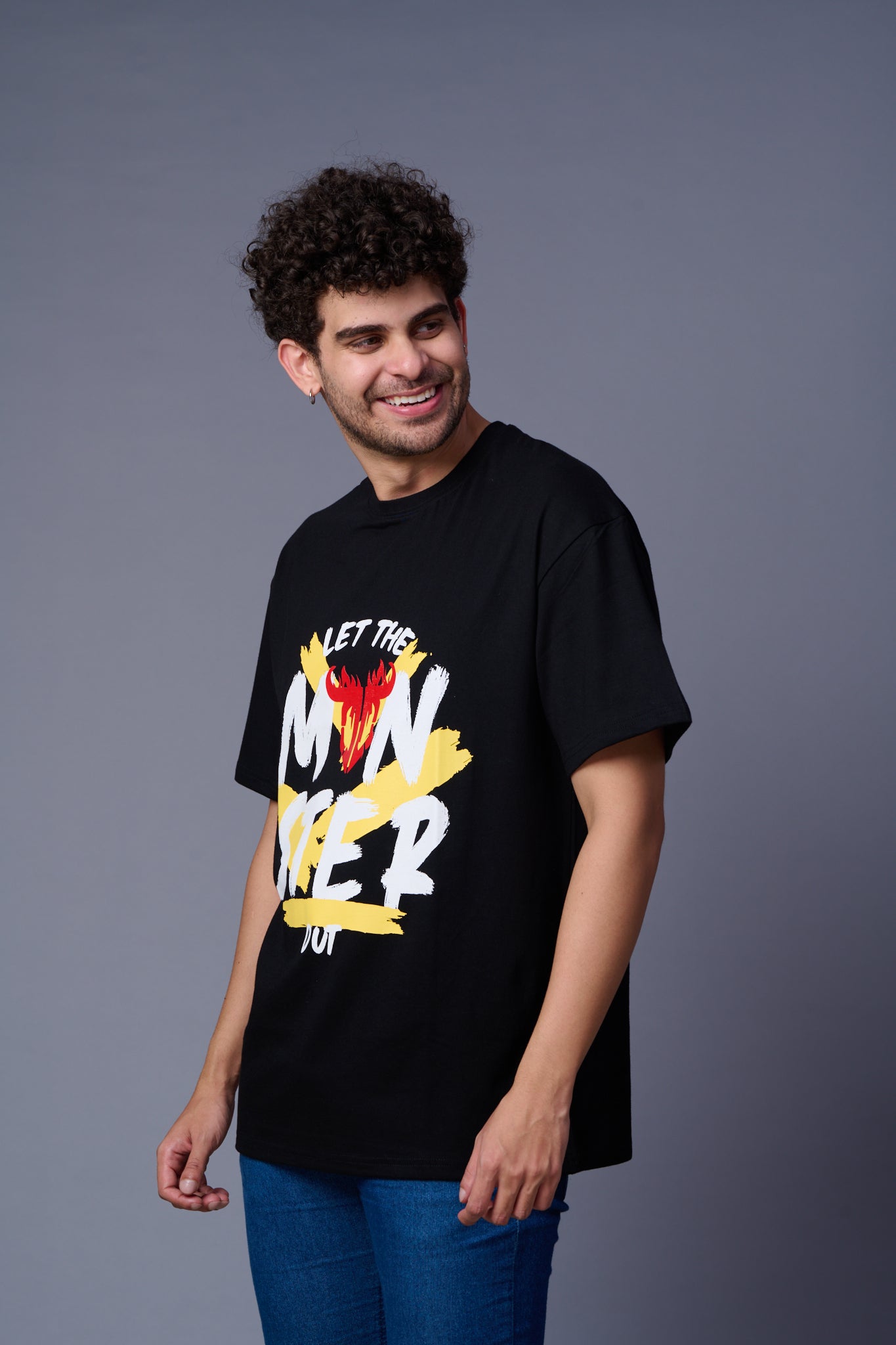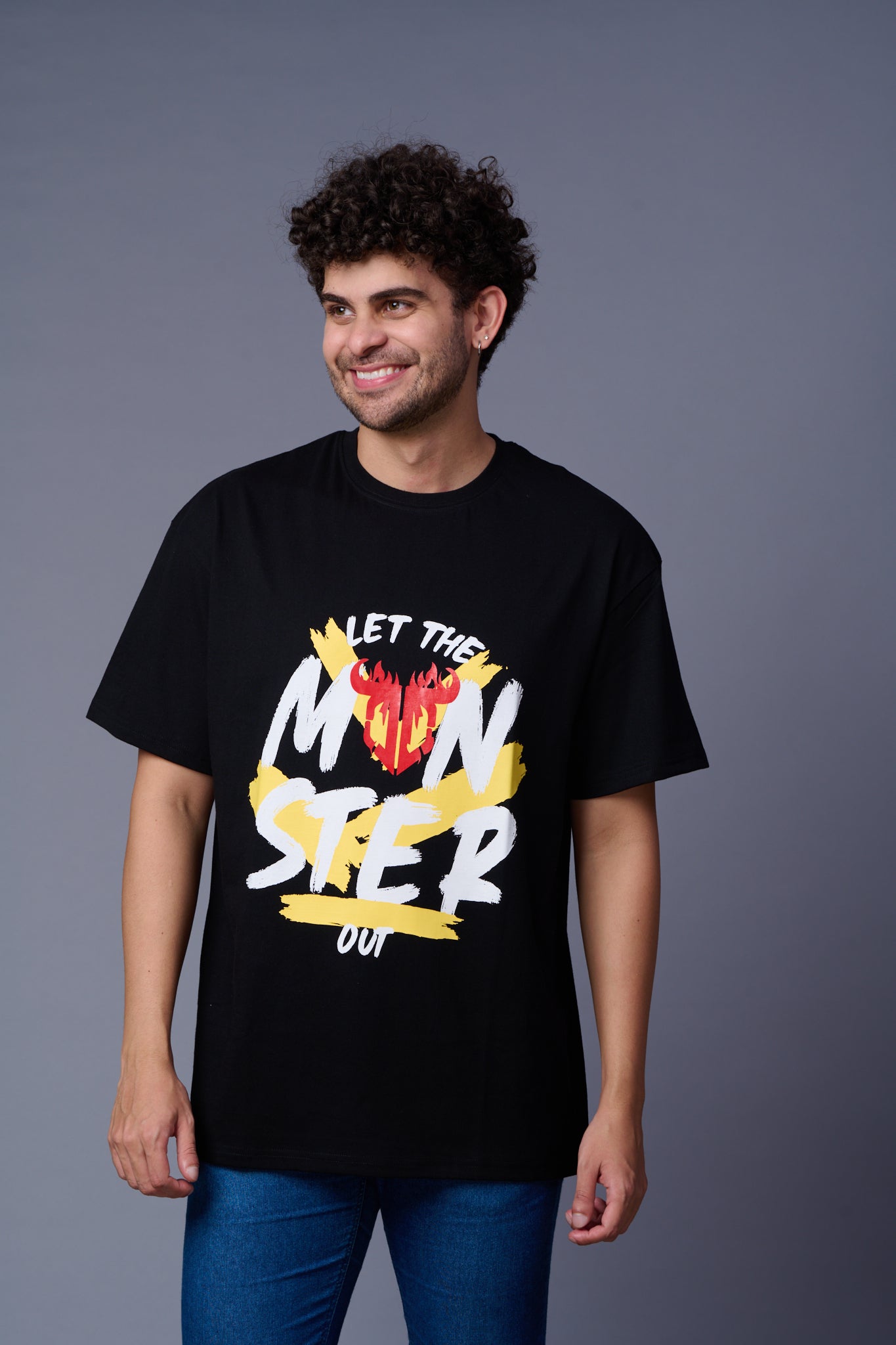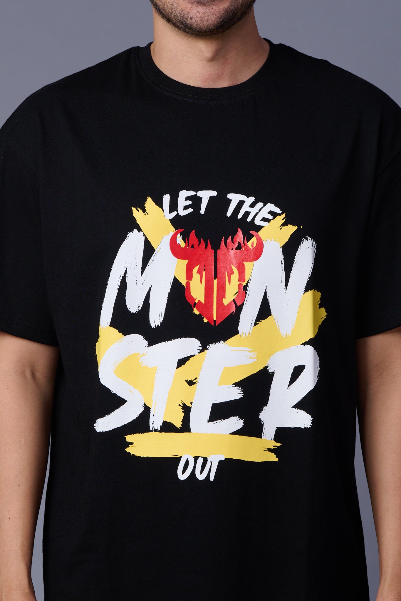 Let the Monster Out Printed Black Oversized T-Shirt for Men