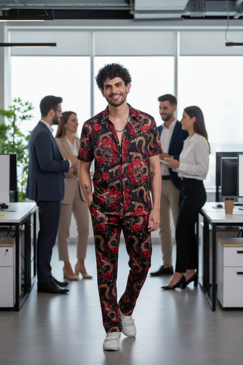 Rose with Snake Printed Shirt With Pant Co-Ord Set For Men