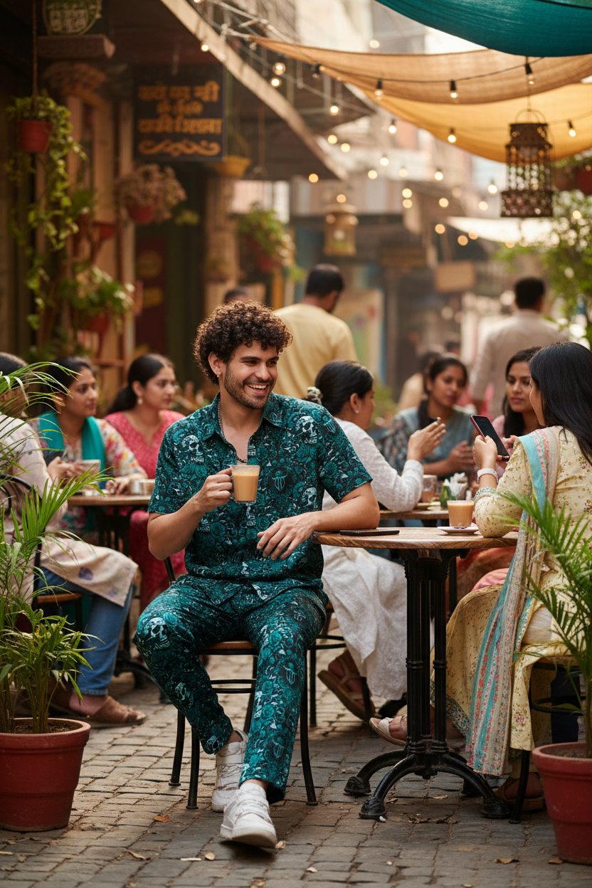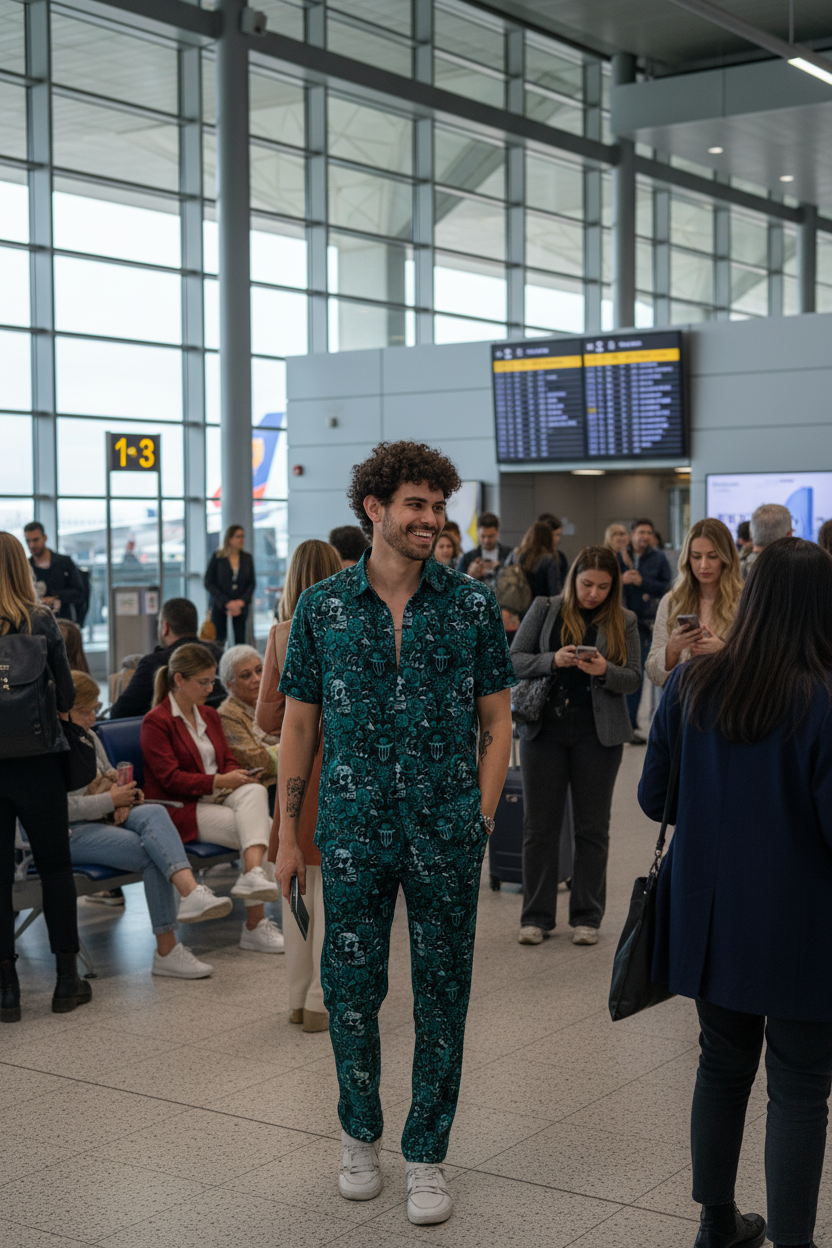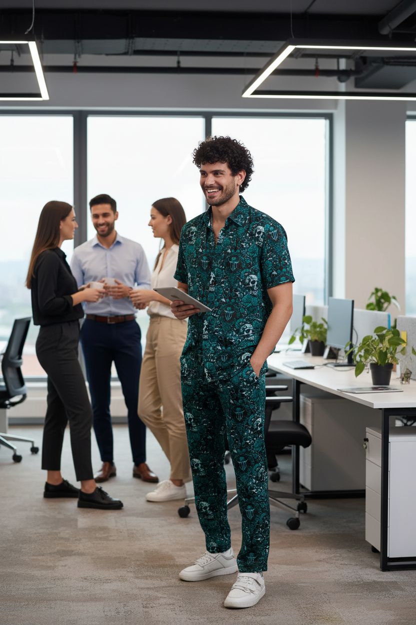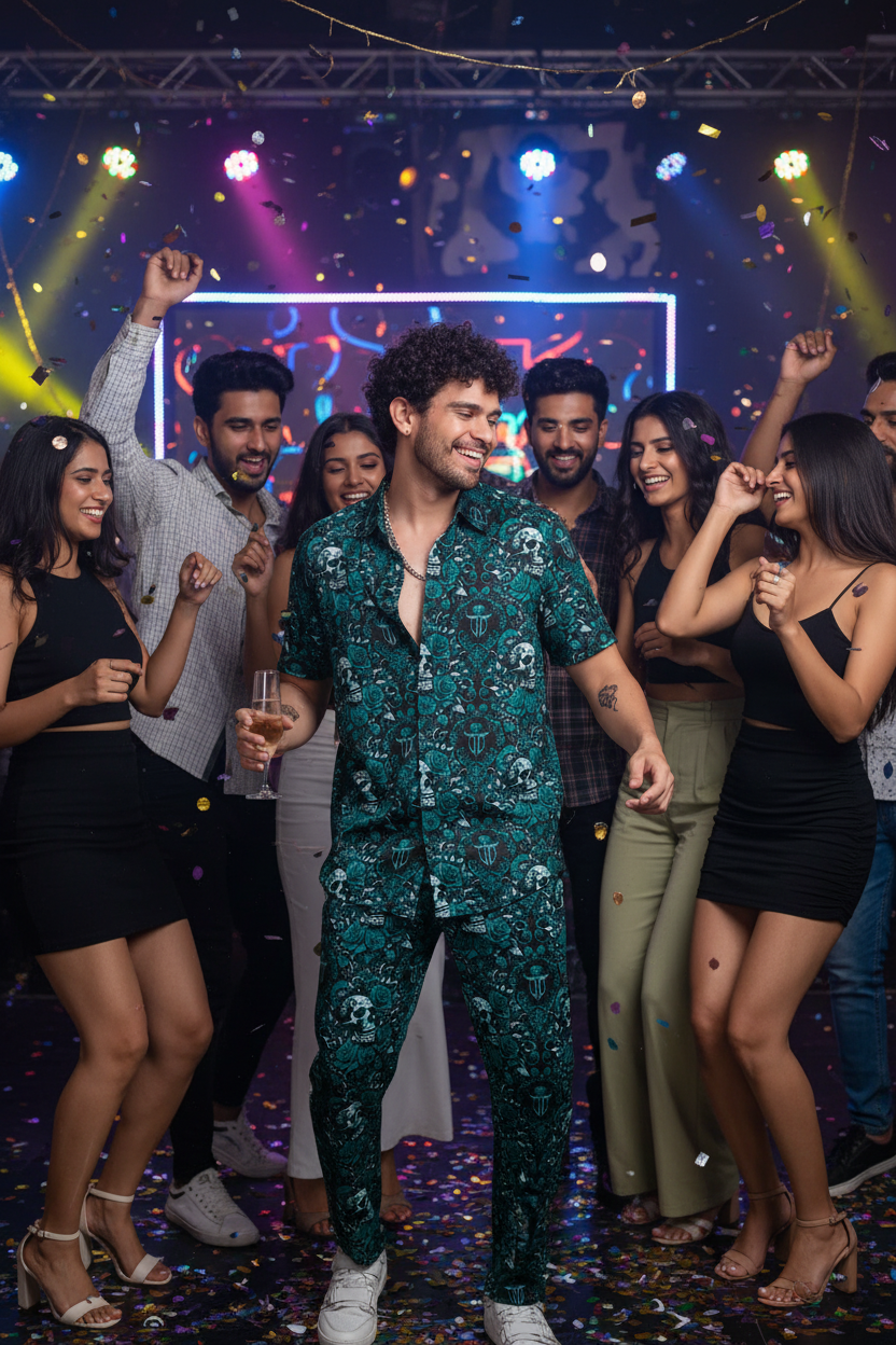 Skull and Rose Printed Green Shirt With Pant Co-Ord Set For Men