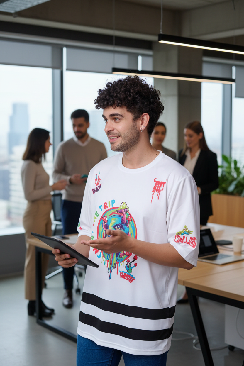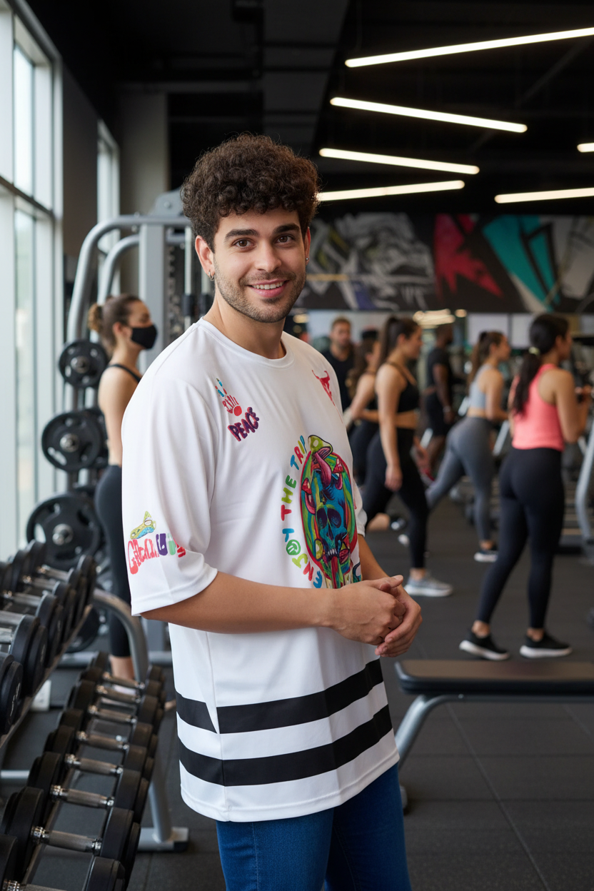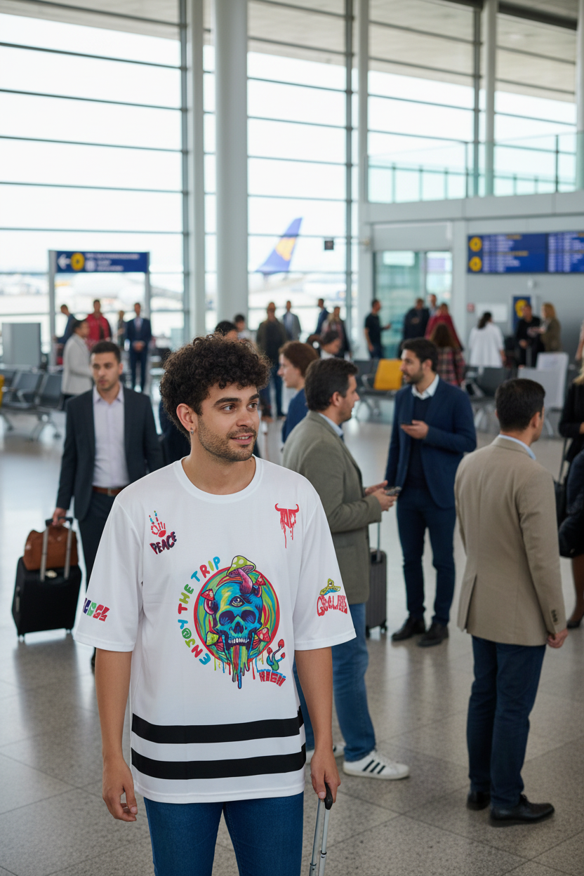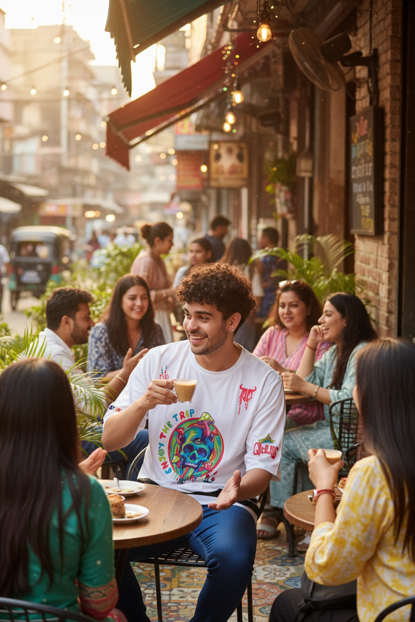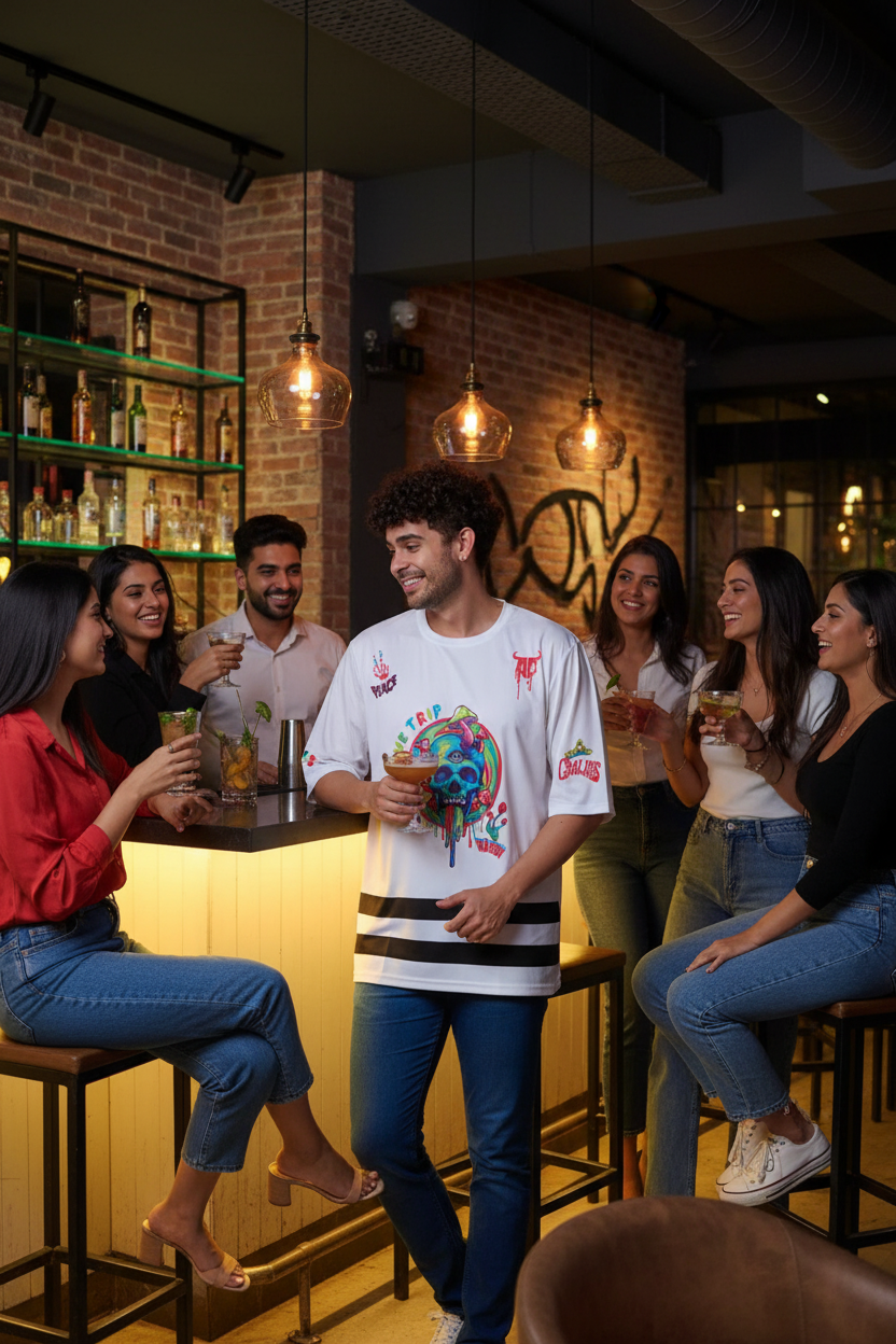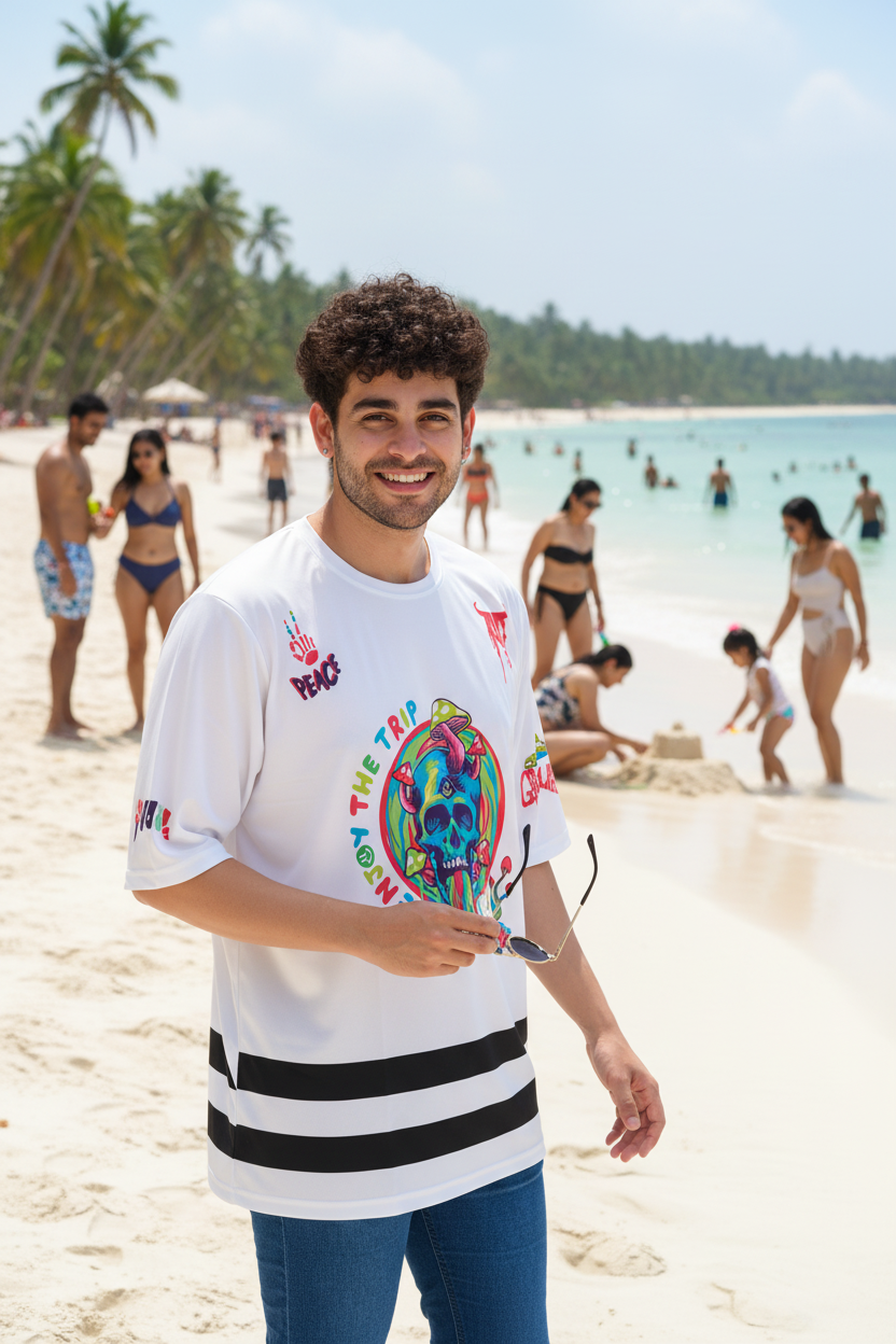 Skull With Enjoy The Trip Printed White Oversized Jersey T-Shirt for Men